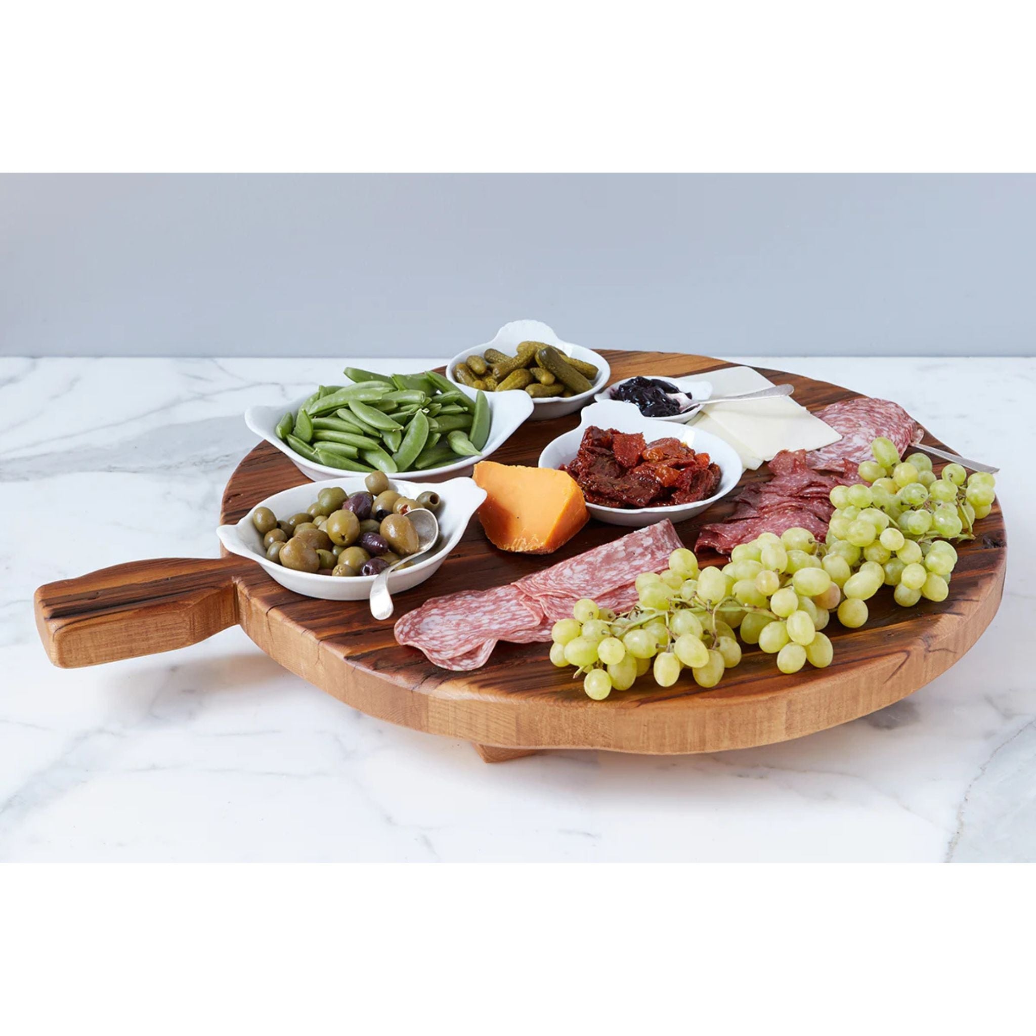 Perfect for serving charcuterie, pastries, or small bites, this board transforms your countertop or dining table into a warm and inviting display. While it is not intended for cutting or chopping, it shines as a serving platter for gatherings of all sizes. Pair it with a dome or cloche for added elegance, or simply let its rustic beauty stand alone. With proper care, the Classic Oversized Round Footed Board will remain a timeless centerpiece for countless occasions.