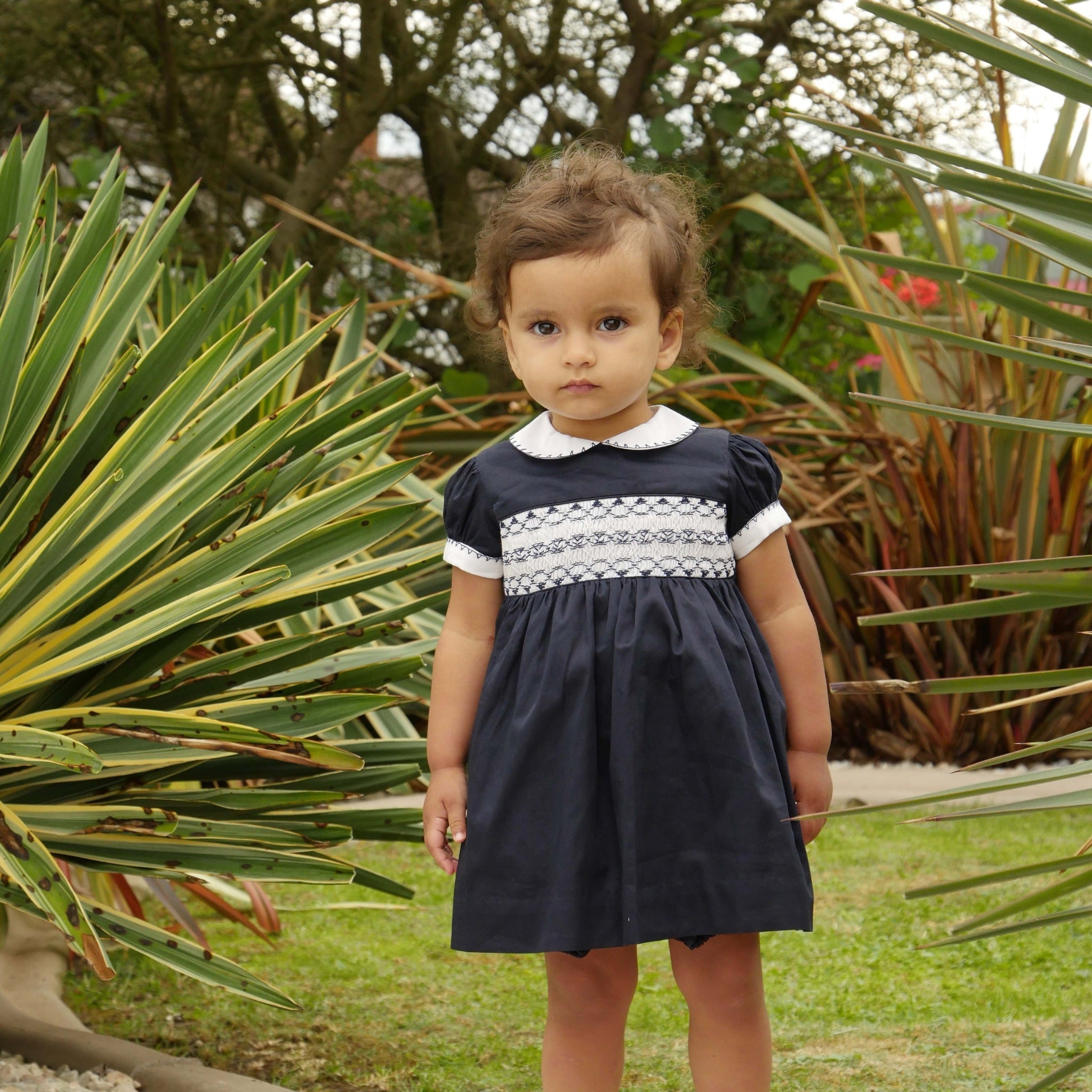 The Classic Smocked Dress & Bloomers set features timeless style with delicate smocking, soft fabric, and a gently gathered skirt for easy movement. Paired with matching bloomers for comfort and coverage, it’s perfect for special occasions, family photos, or everyday wear with charming, traditional elegance.