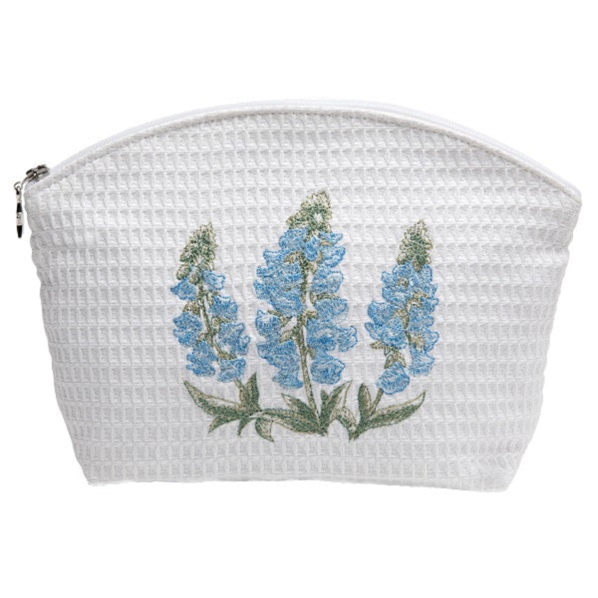 Organize your essentials in style with this charming medium cosmetic bag, featuring delicate Blue Foxgloves embroidery. Crafted from soft, durable fabric with a smooth lining, it’s perfect for travel or everyday use - bringing a touch of floral elegance to your routine.