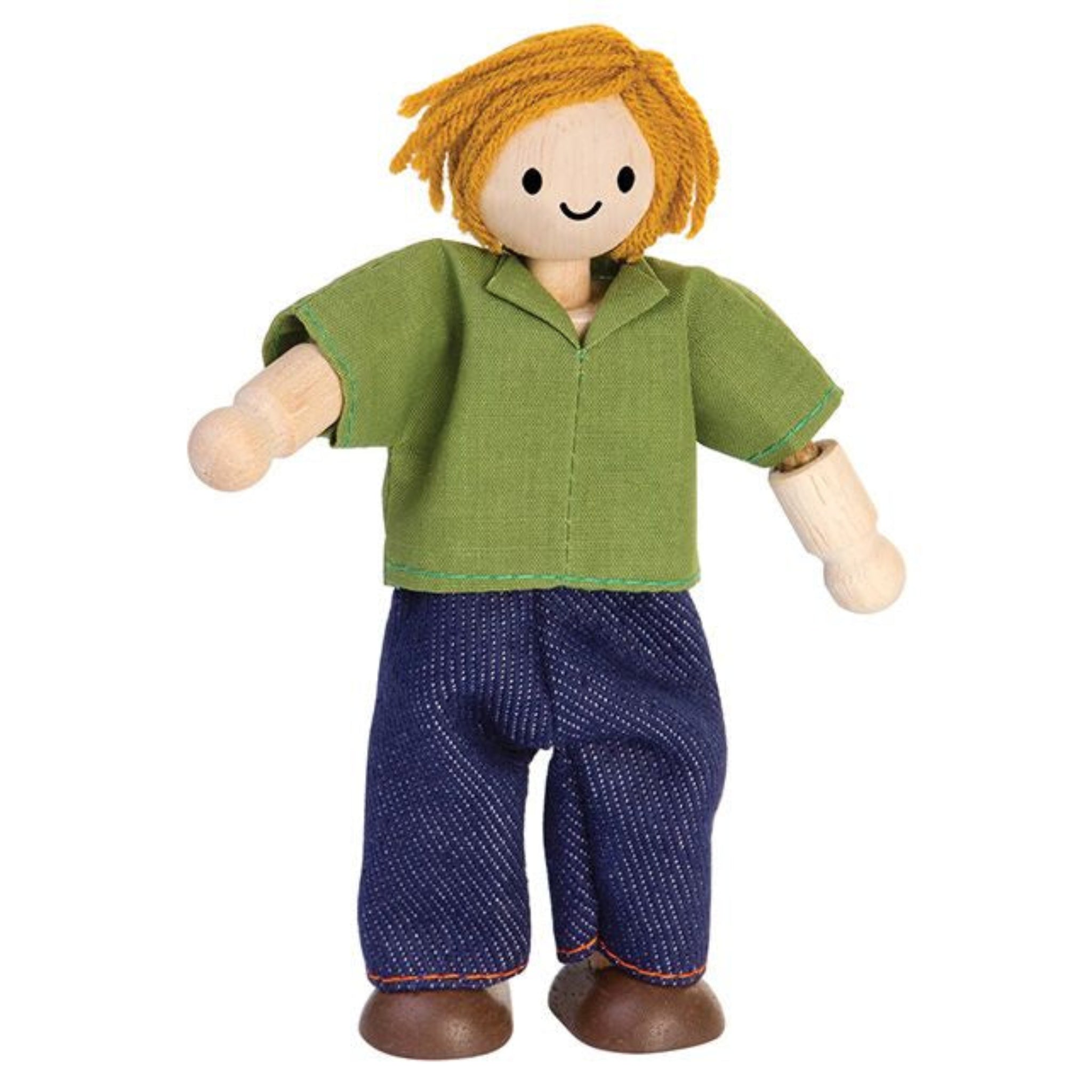 All doll heads and bodies are made of solid wood. Arms and legs are wire that can be easily shaped. Compatible with PlanToys® dollhouses.