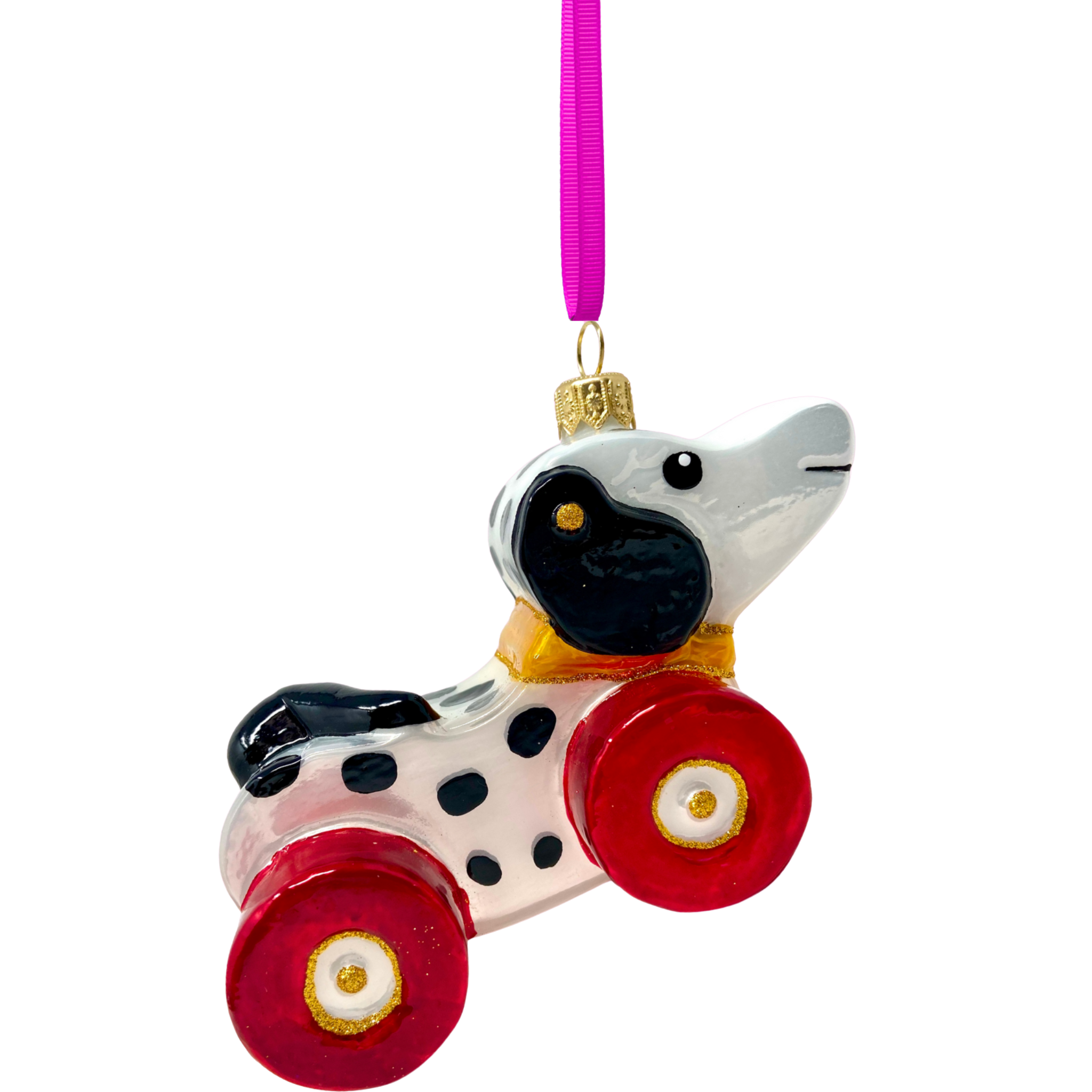 Dalmatian Dog Pull Toy Glass Christmas Ornament