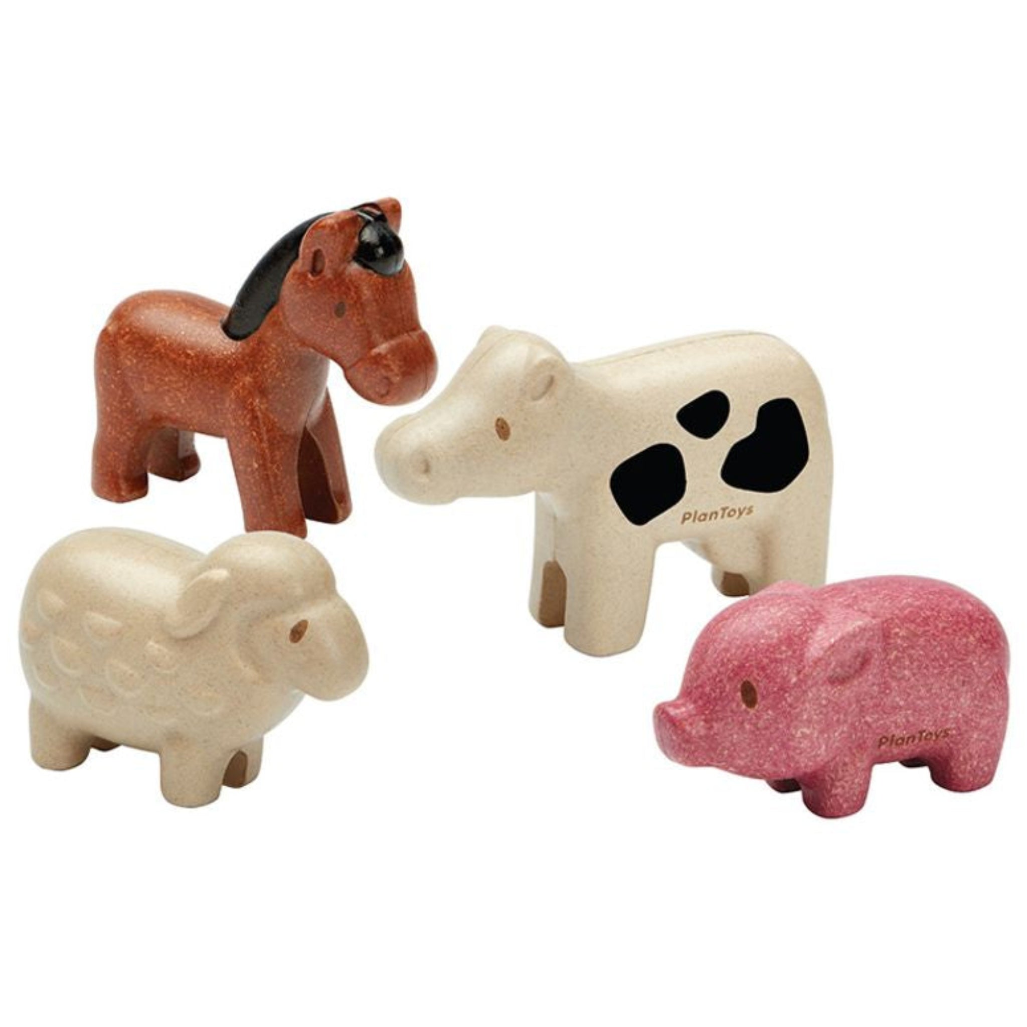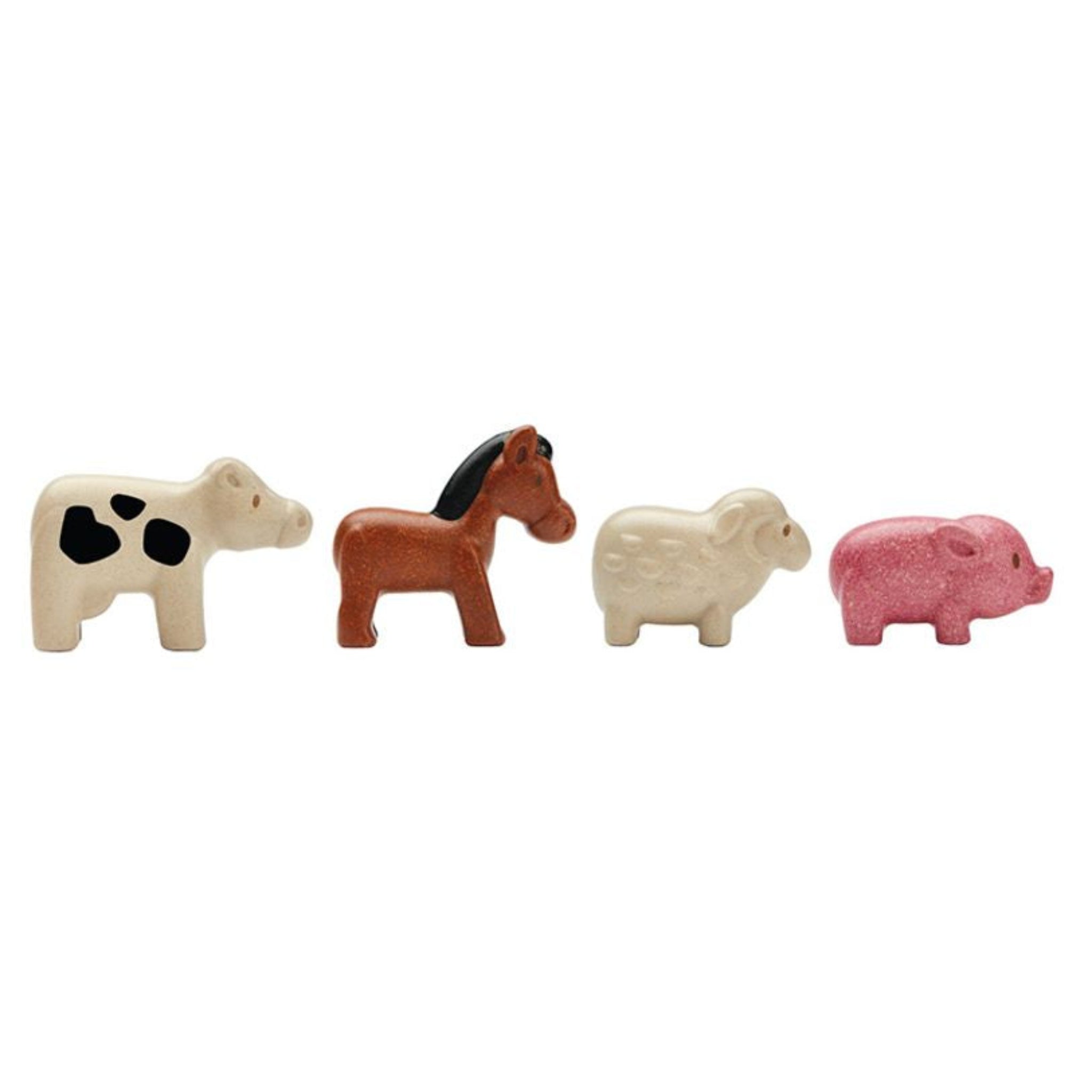 Create a countryside scene at home with these cute wooden animals! This set comes with a pig, sheep, cow and horse.