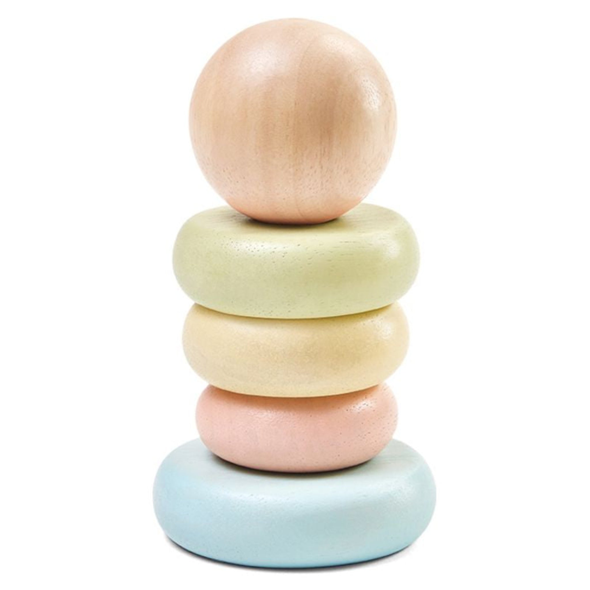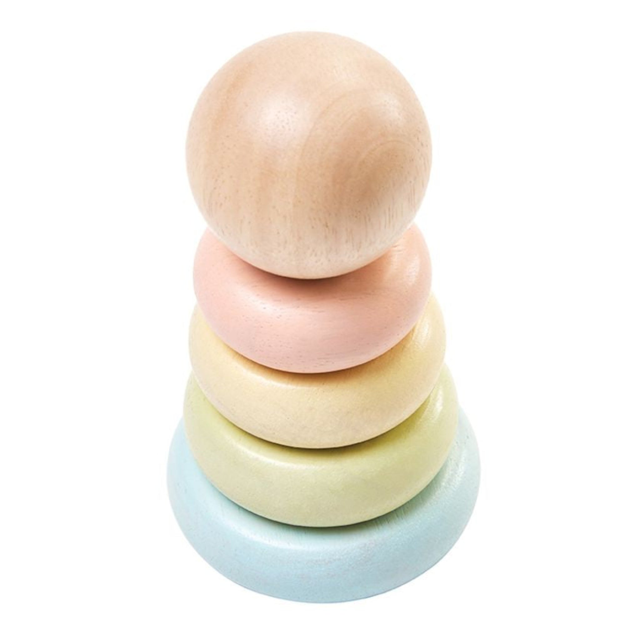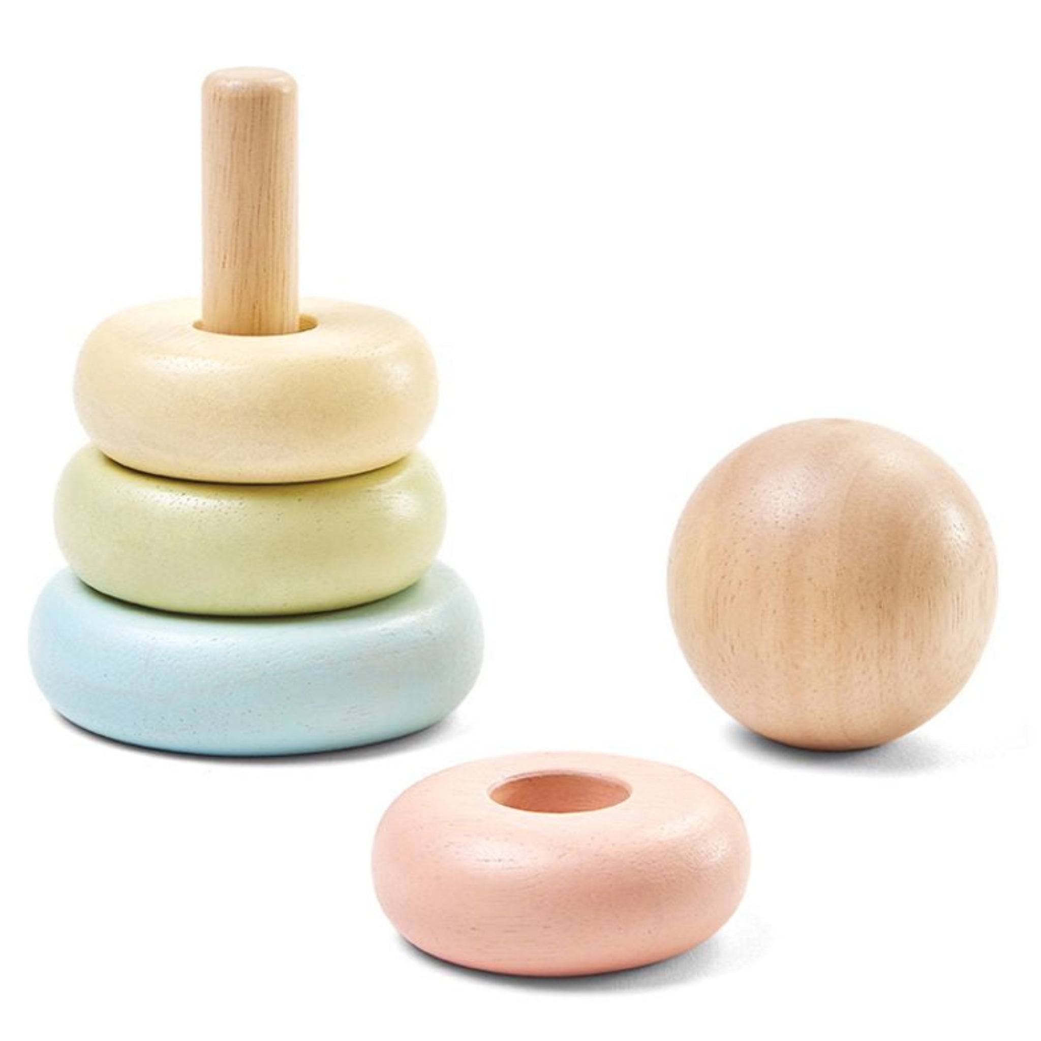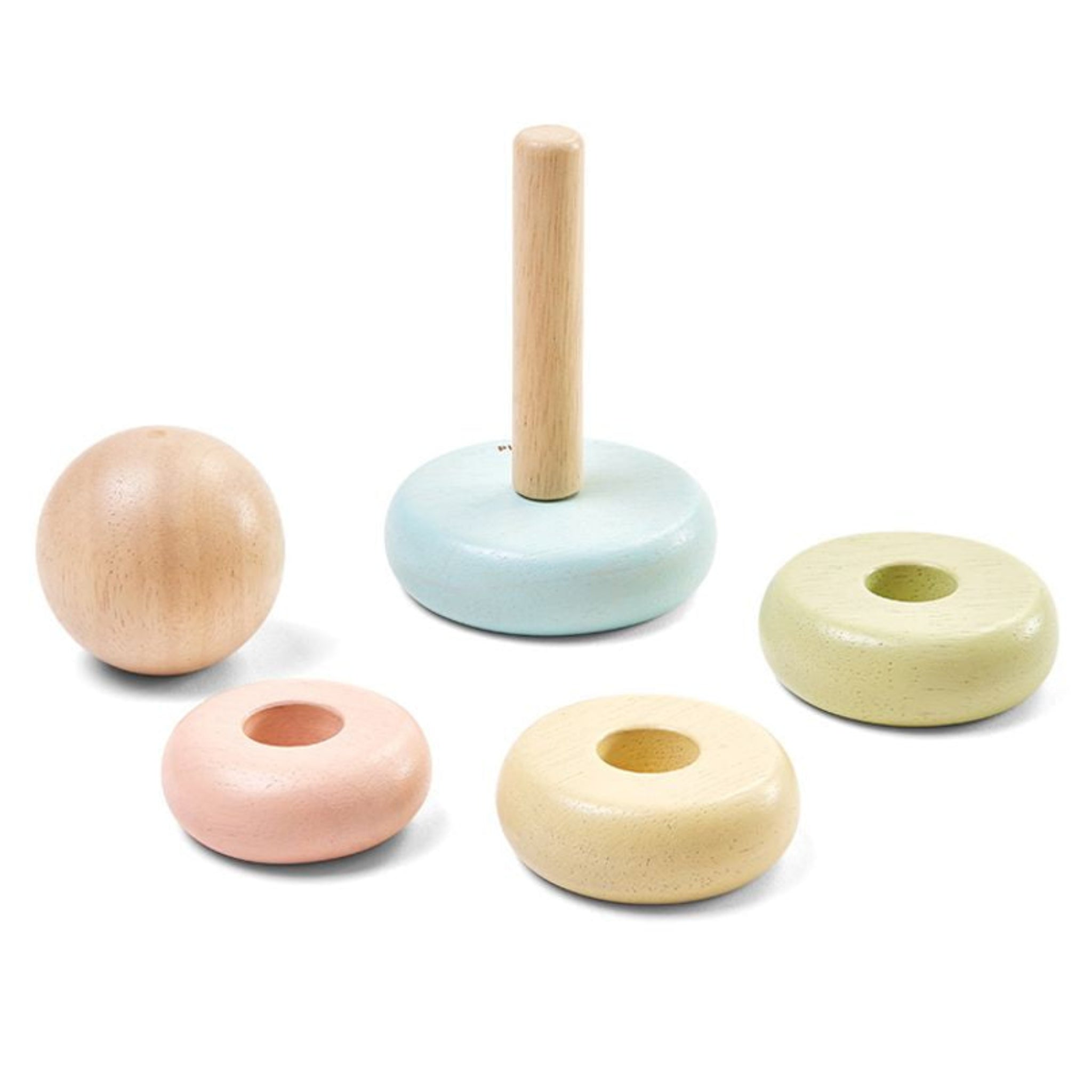 Start learning about size and order with this stacking ring. For safety precaution, the center rod is foldable.