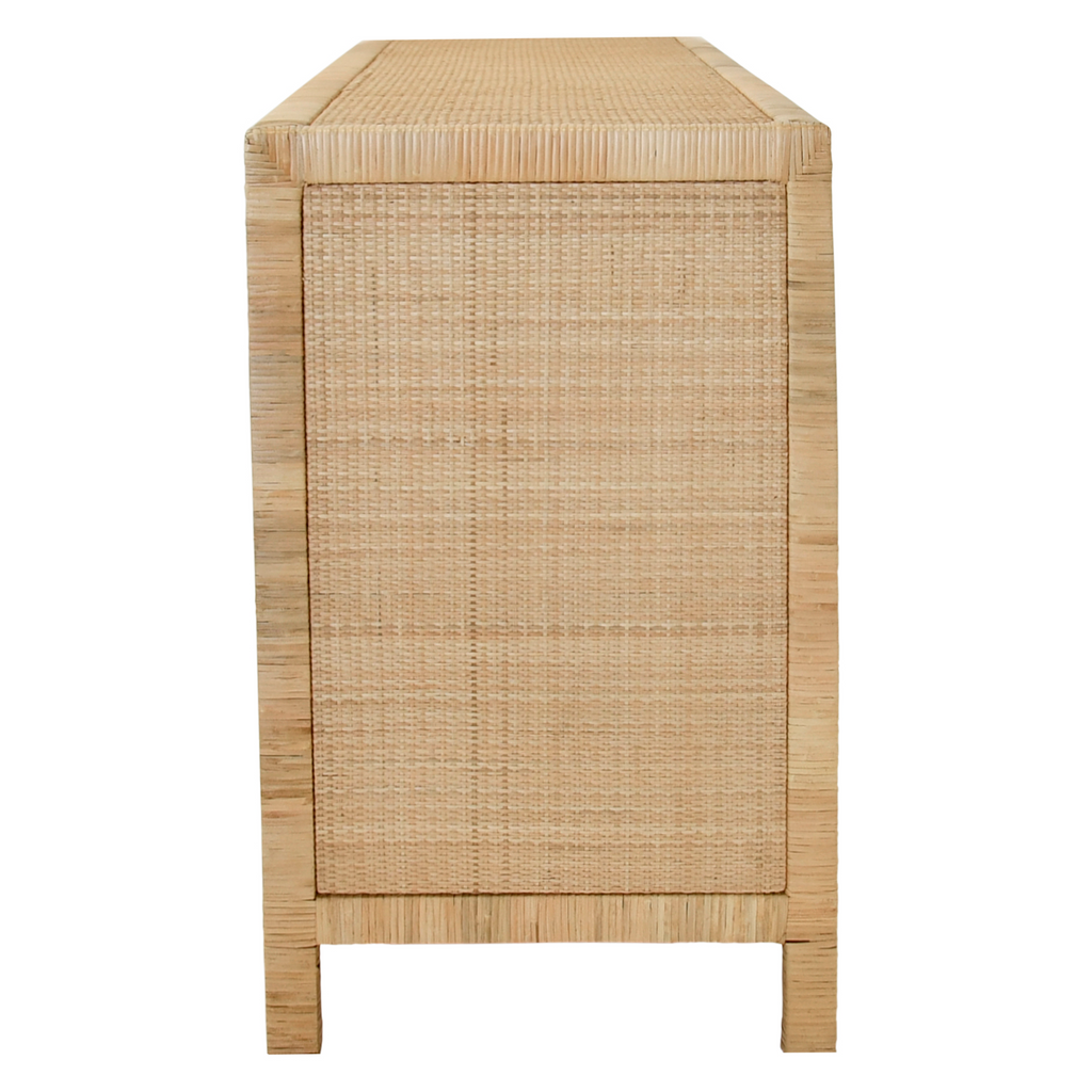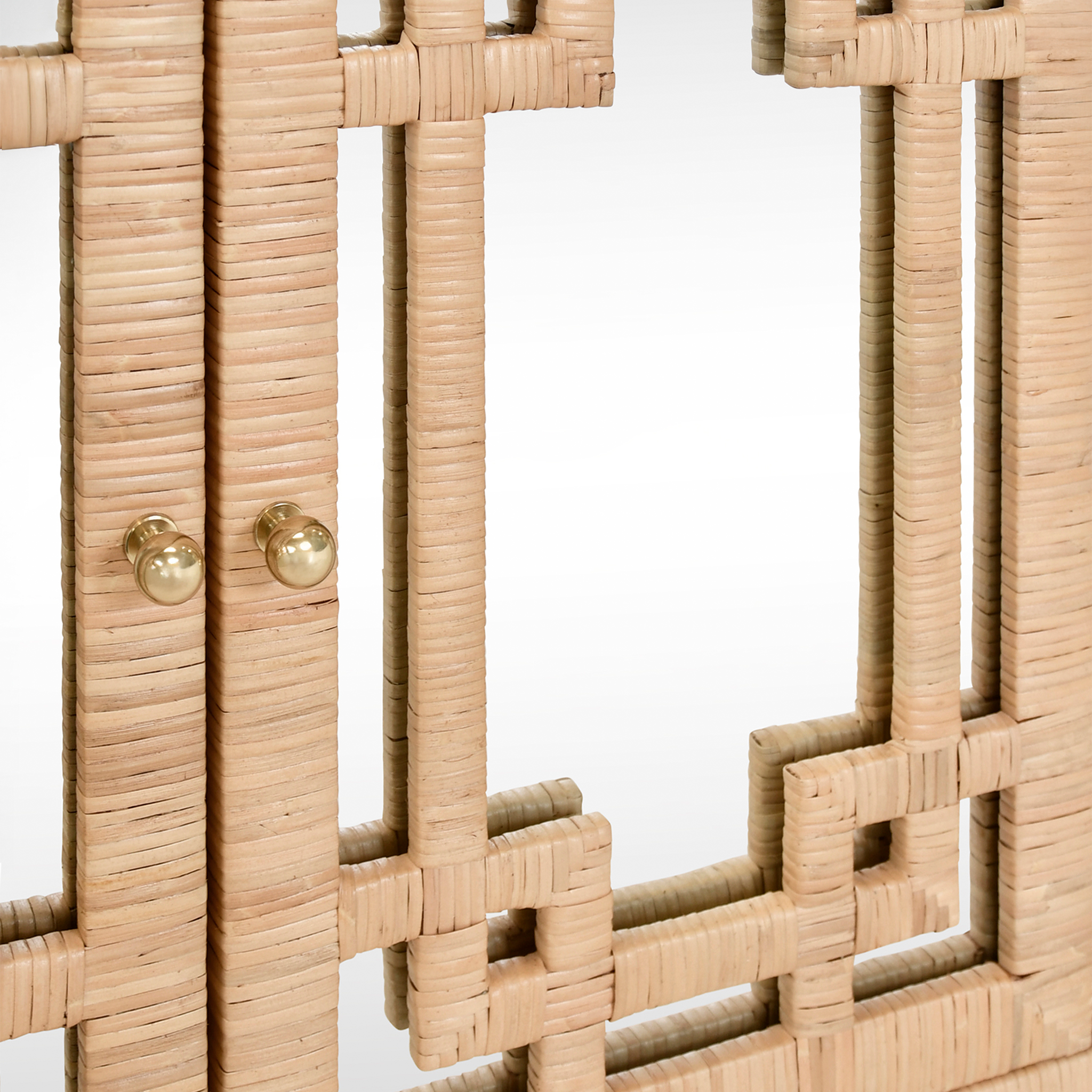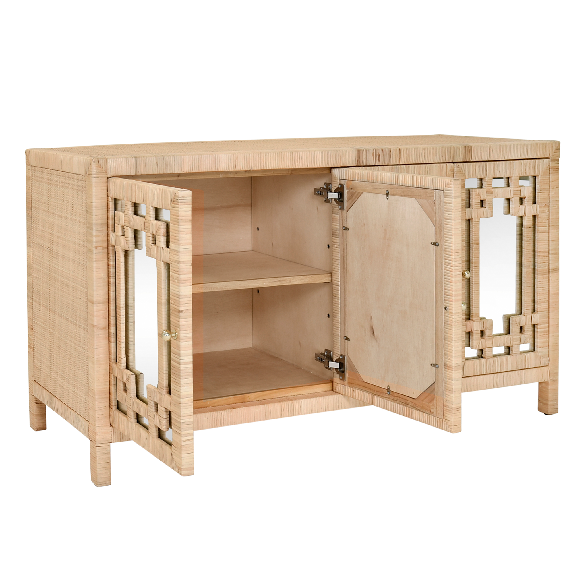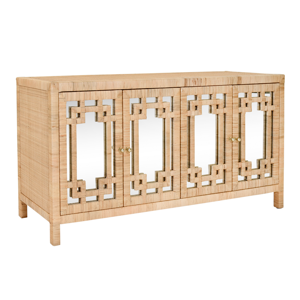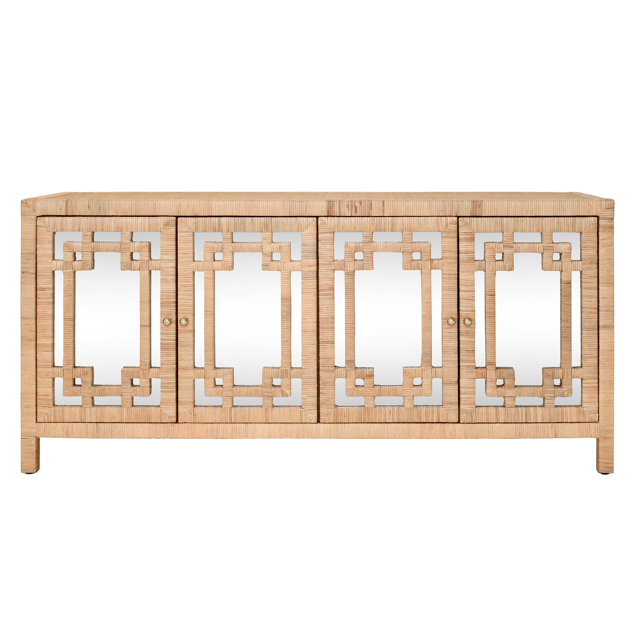 Our Four Door Buffet With Mirror Front Doors is a striking and elegant storage piece that effortlessly blends opulence with natural textures.