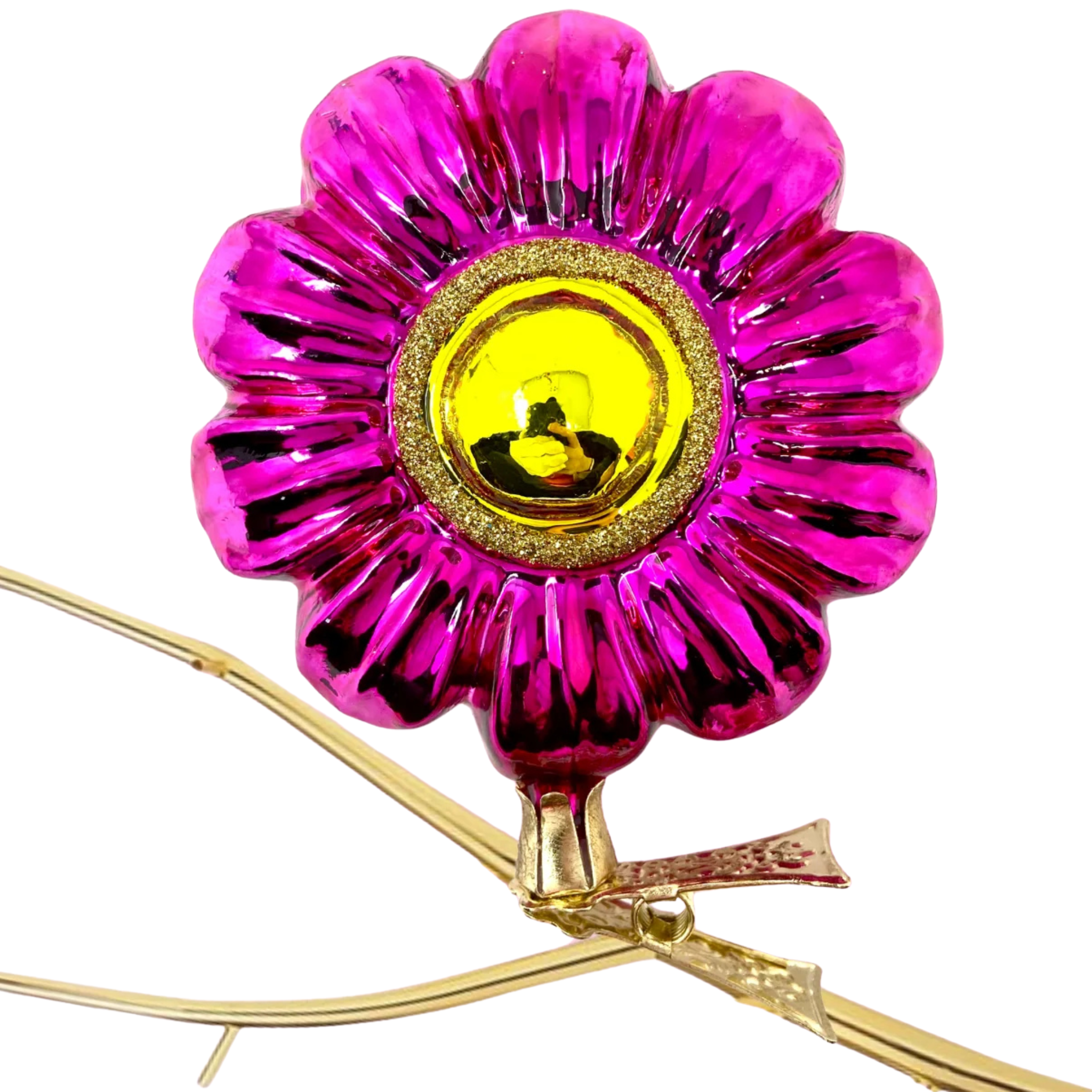 Bring bold color and boho flair to your holiday decor with this fuchsia bloom clip-on glass ornament. Featuring a vibrant, hand-painted bloom with intricate detailing, this ornament captures the free-spirited charm of bohemian style. The convenient clip-on design allows for easy attachment to branches, garlands, or wreaths, adding a pop of color and a touch of playful elegance to any festive display.