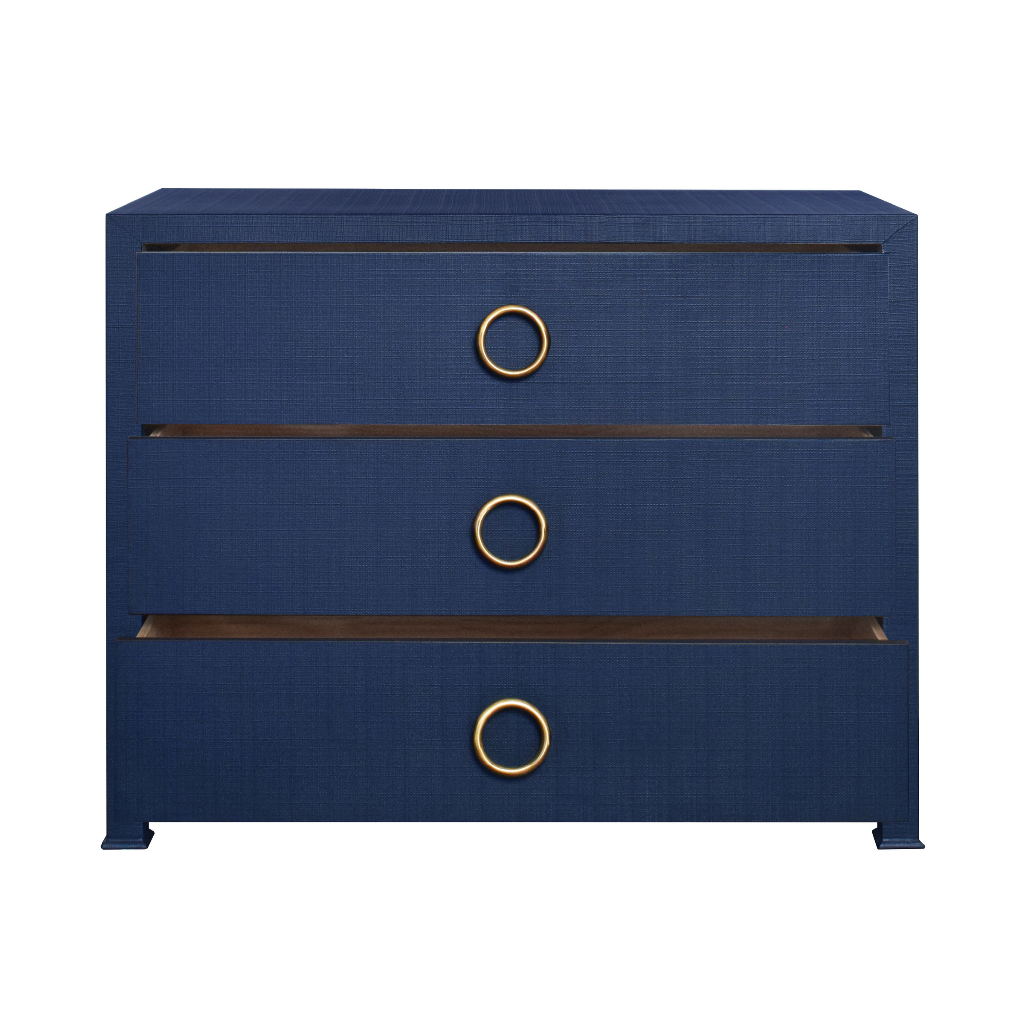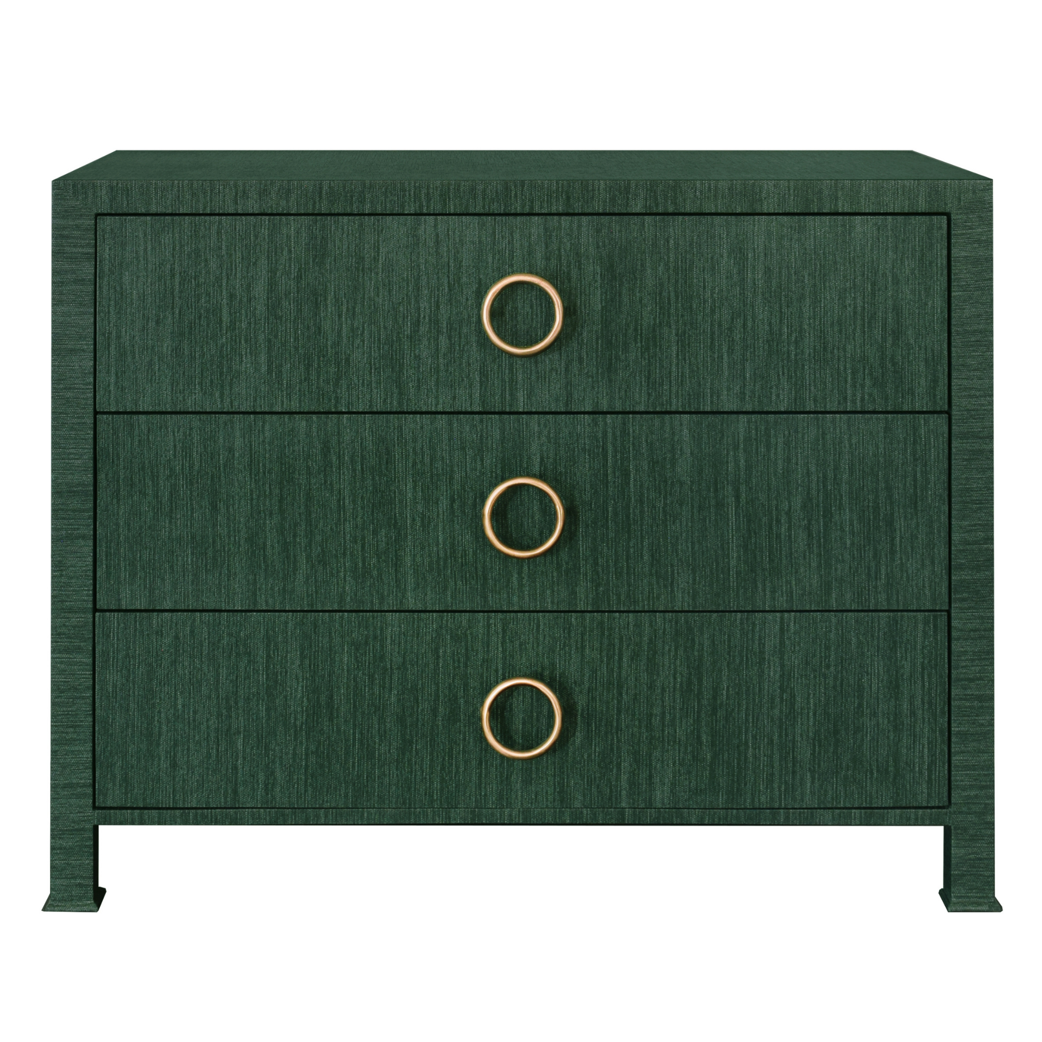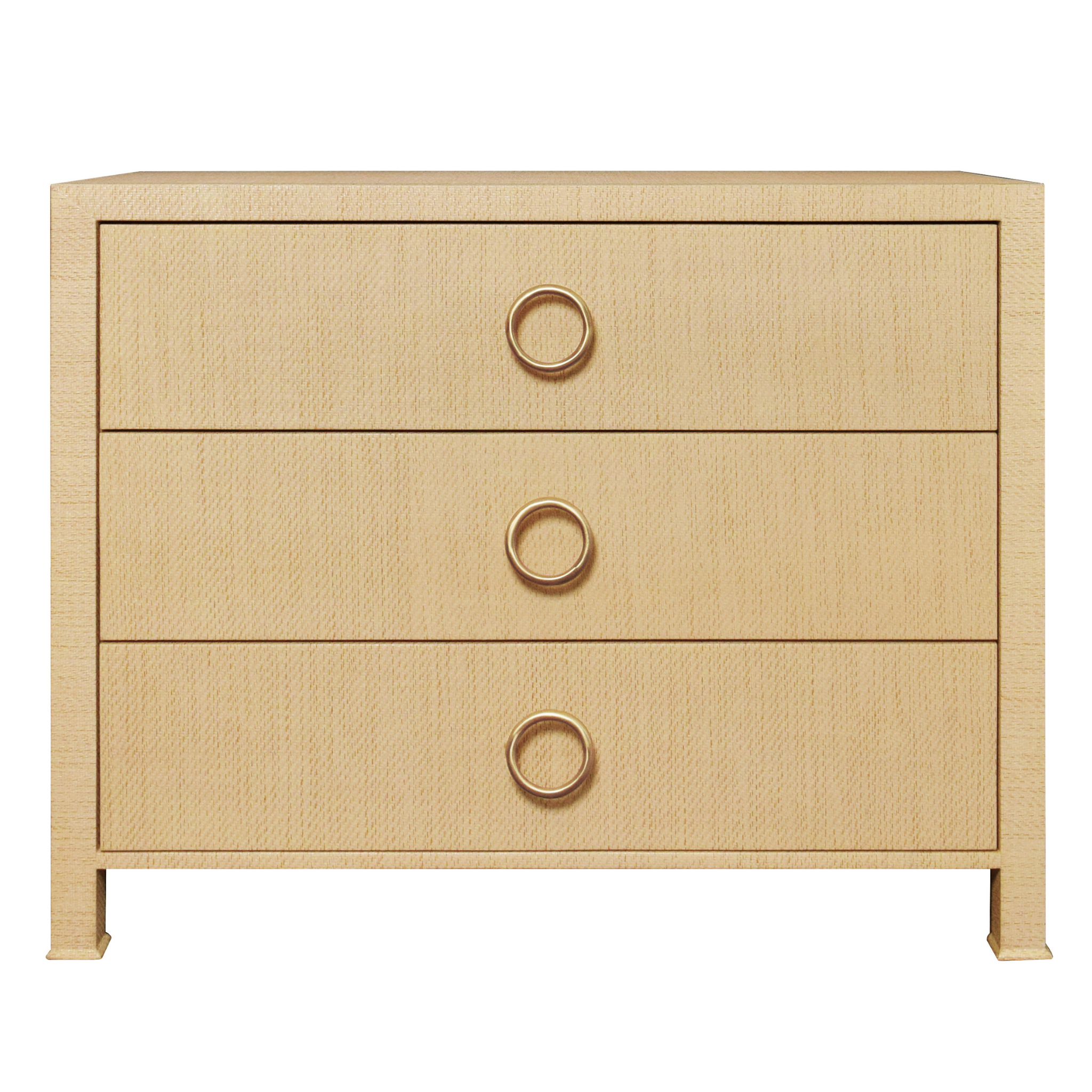 Indulge in luxury with the Getty Dresser, available in Natural, Navy, or Green Grasscloth. With three spacious drawers, organize your belongings with ease while adding a touch of sophistication to your bedroom. Elevate your space with this elegant and exclusive piece.