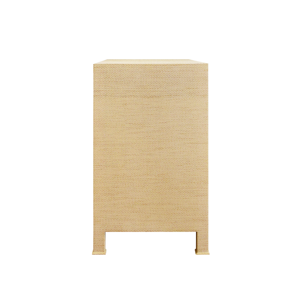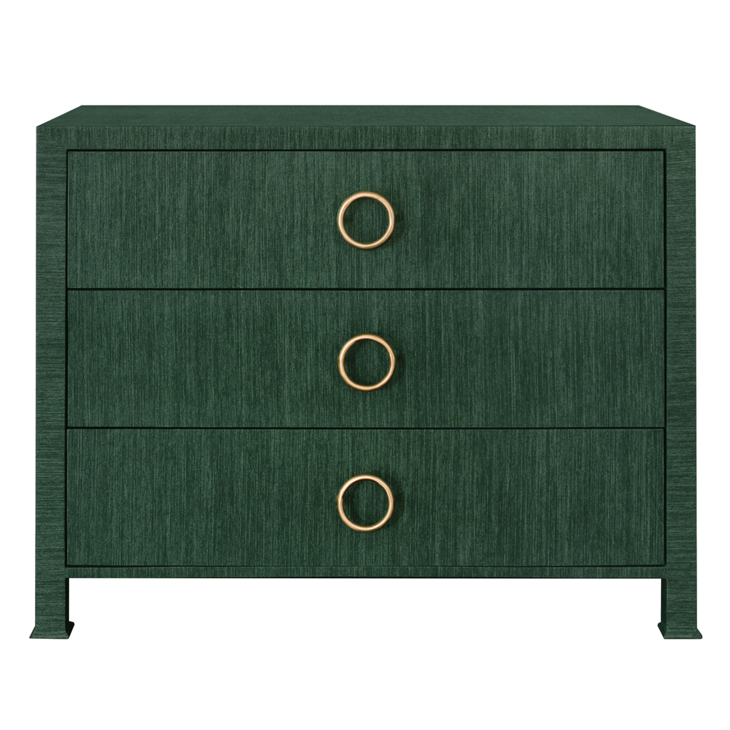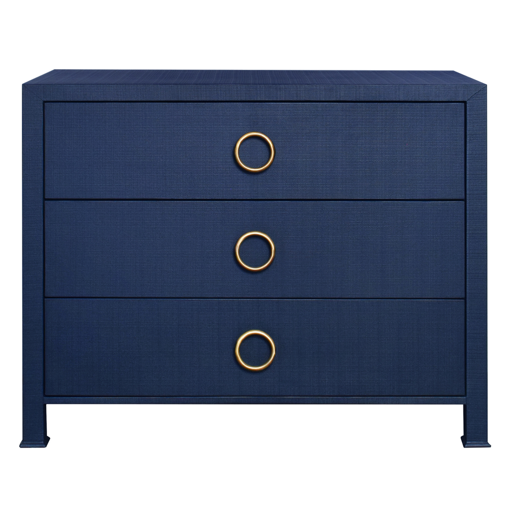 Indulge in luxury with the Getty Dresser, available in Natural, Navy, or Green Grasscloth. With three spacious drawers, organize your belongings with ease while adding a touch of sophistication to your bedroom. Elevate your space with this elegant and exclusive piece.