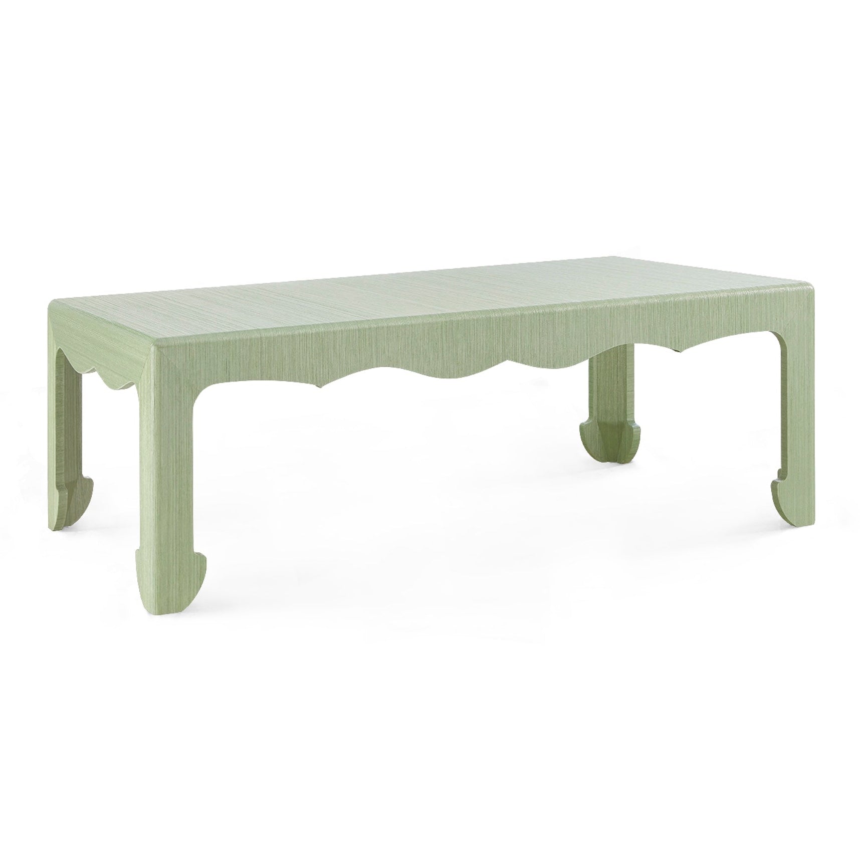 The Gianna Coffee Table brings soft, feminine charm with its grasscloth-wrapped silhouette, clear lacquer finish, and refined detailing. Available in Spring Green or Sand White, it adds a timeless, sophisticated touch to any living space.