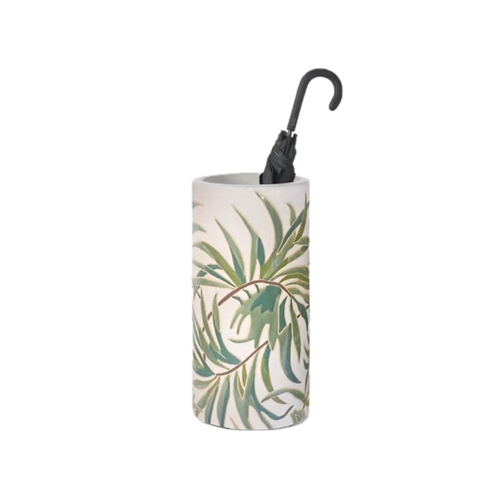 Invite the essence of the outdoors in with the Greenwood, a cylindrical, ceramic umbrella stand with a hand-applied pattern. Overlapping edges between the two colors gives each piece a unique touch.