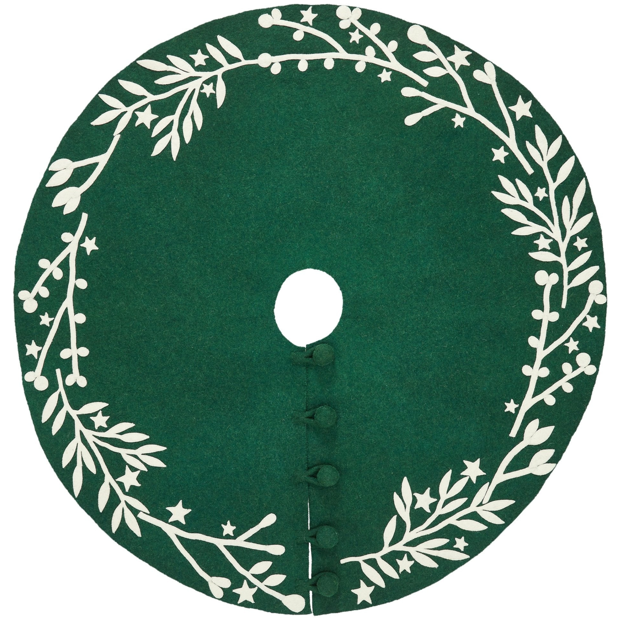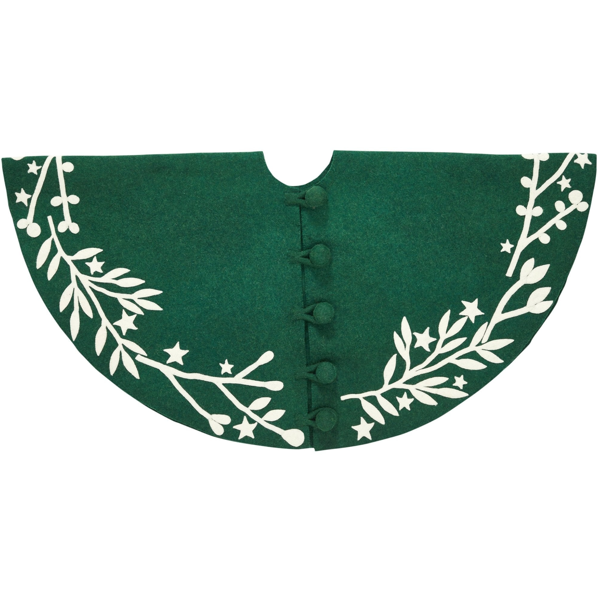 Handmade Felt Cream Branches and Stars Green Christmas Tree Skirt