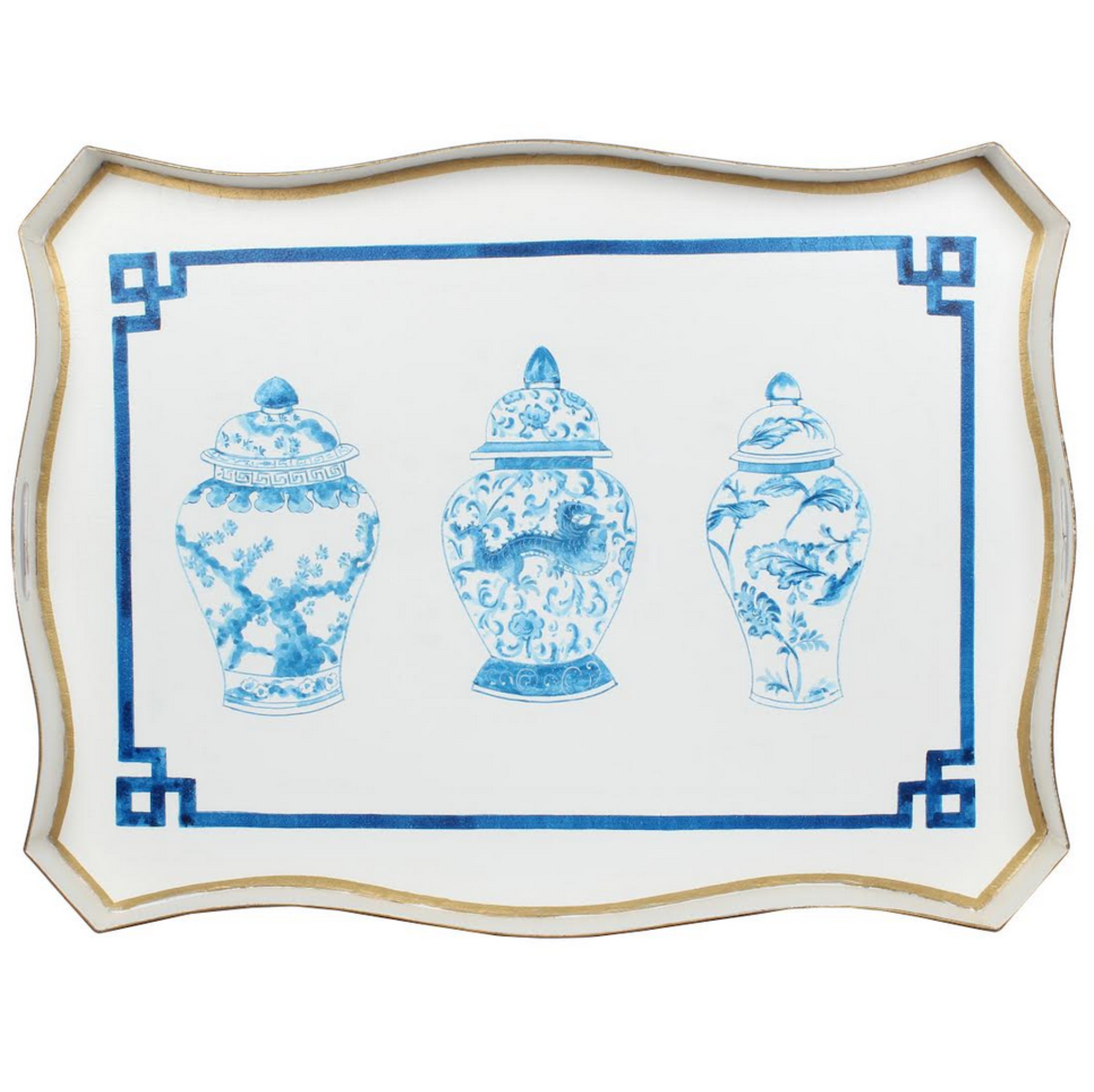 Ivory & Blue Ginger Jar Rectangular Tray Table