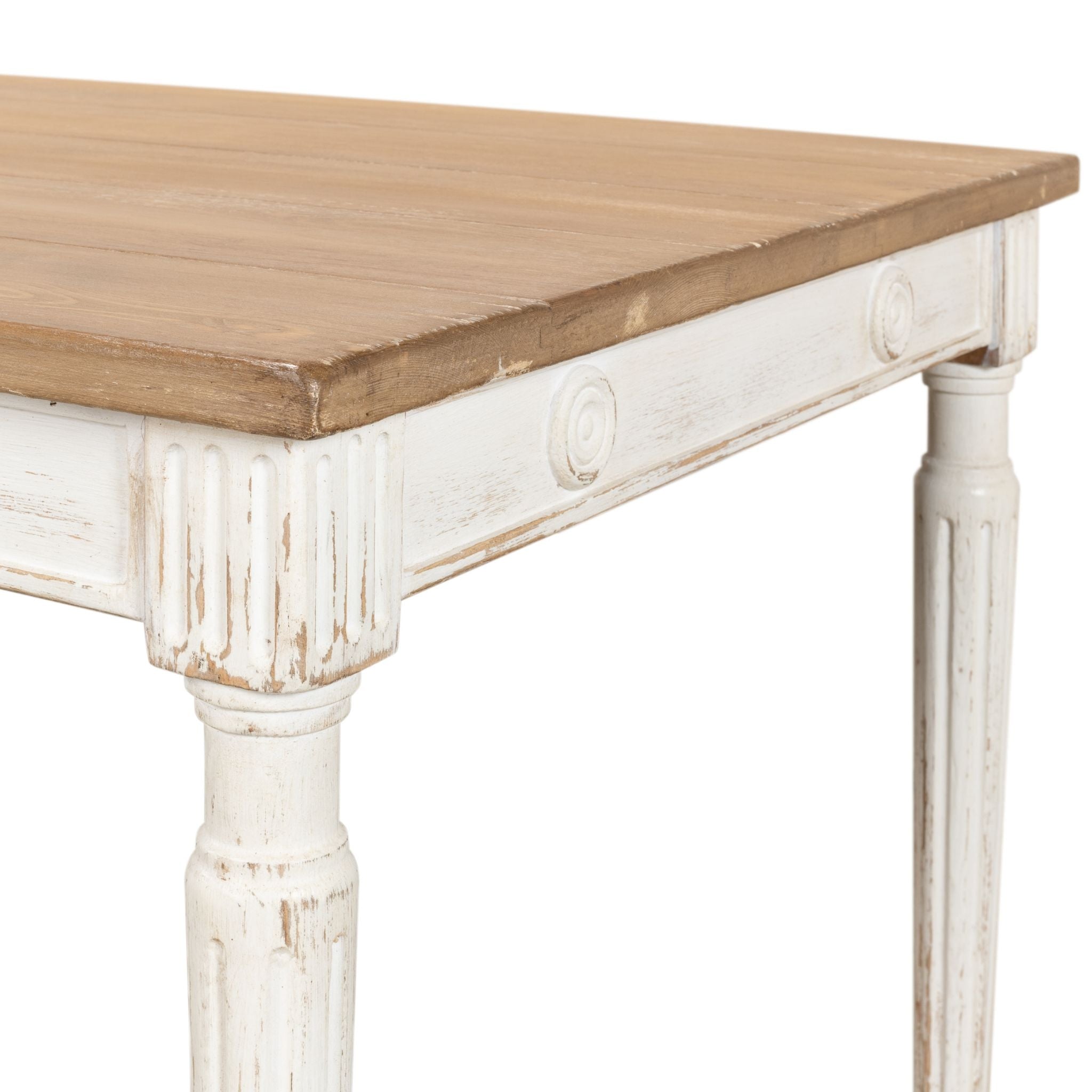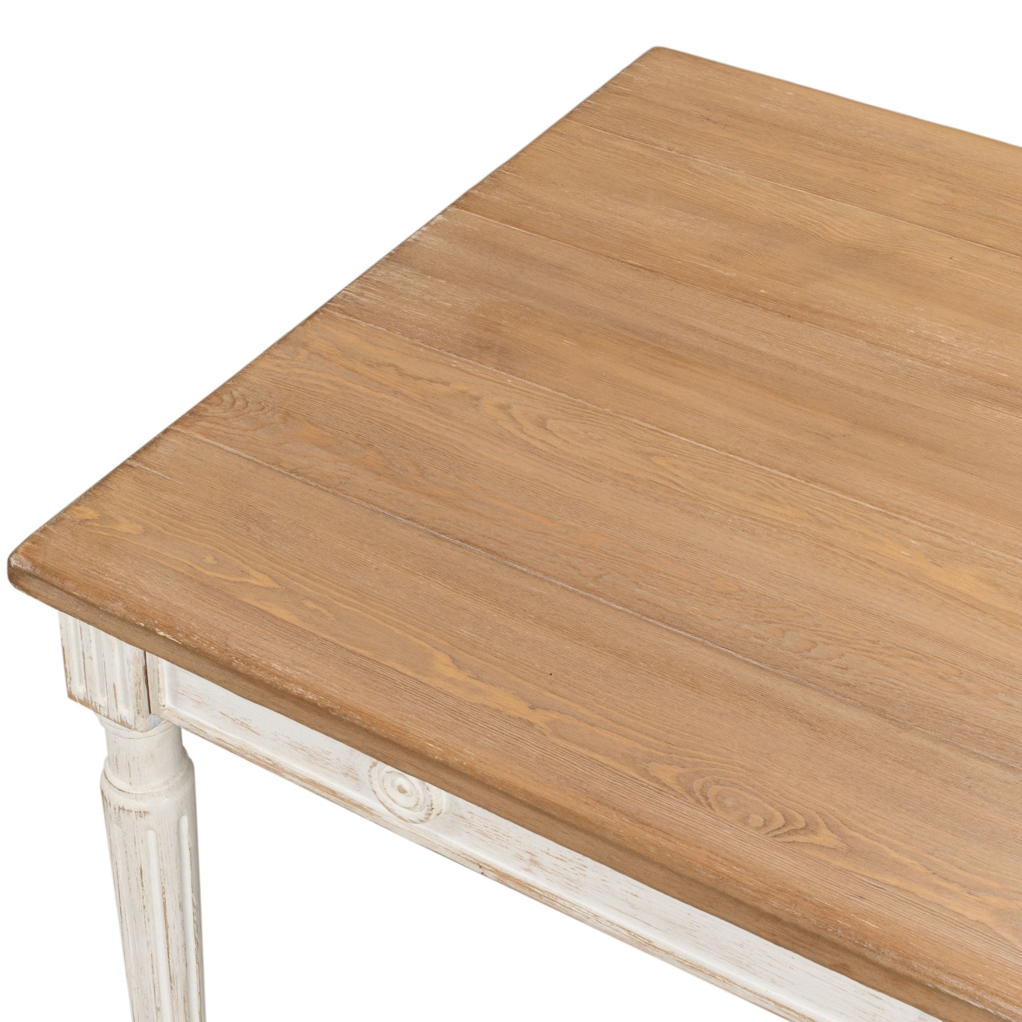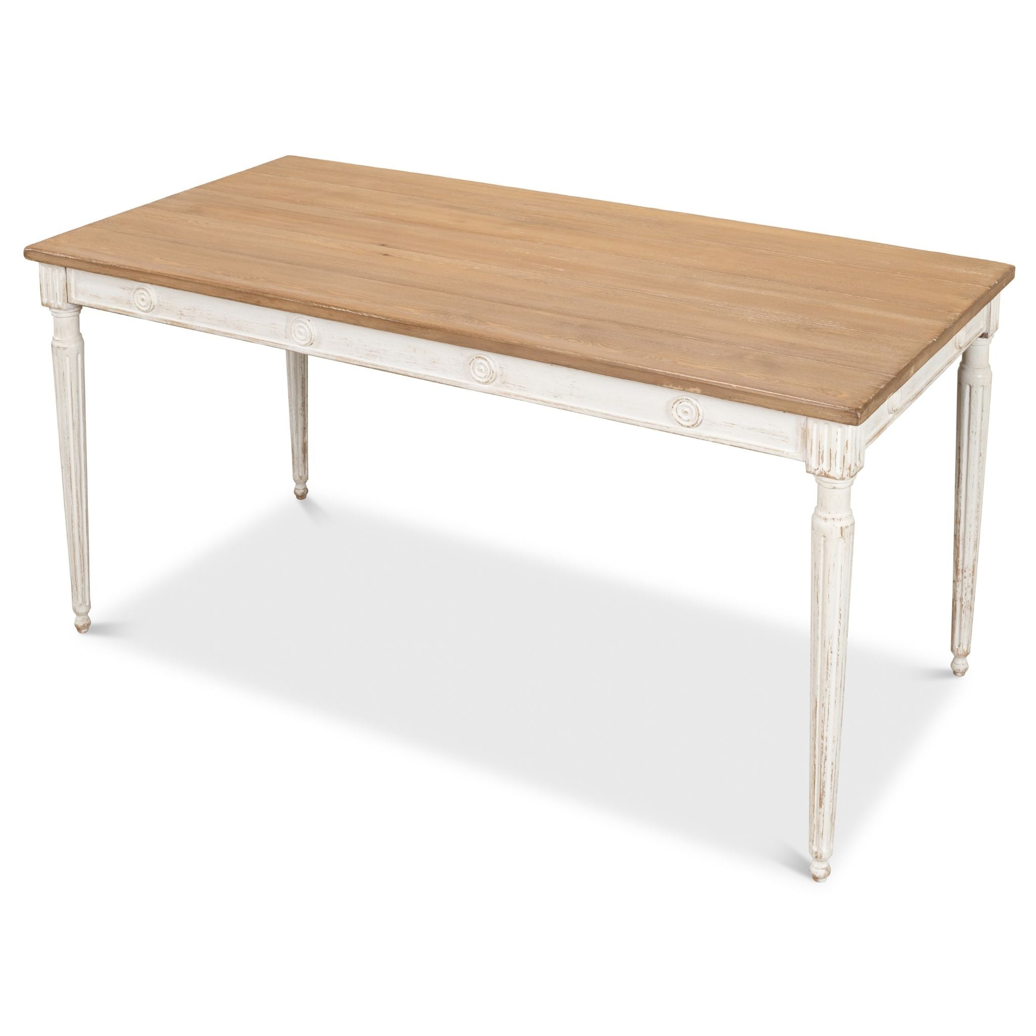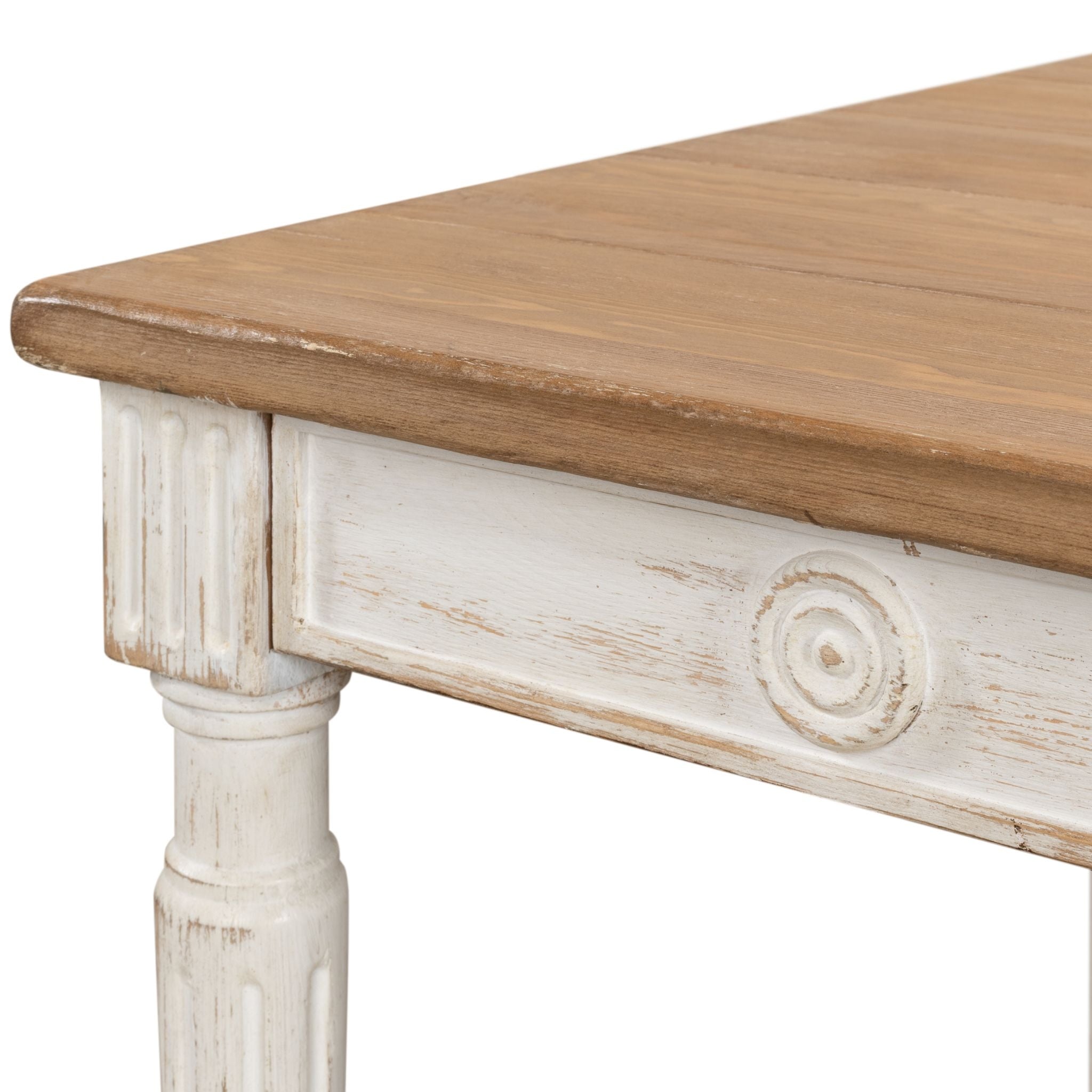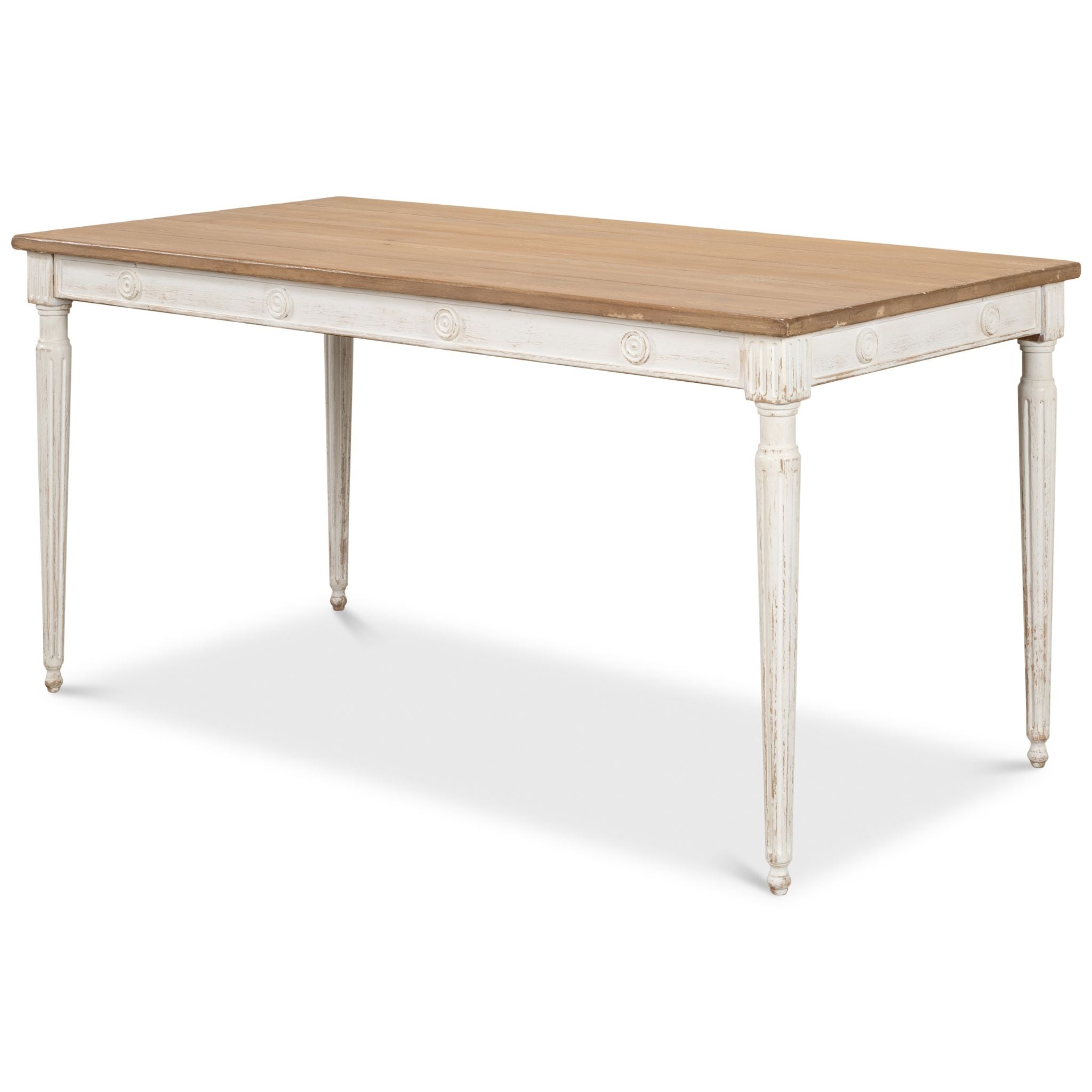 Graceful and charming, the Lady’s Dining Table features a French country silhouette crafted from pine with delicate medallion accents and reeded legs. Its practical 63-inch size makes it a perfect fit for cozy dining nooks, kitchens, or intimate entertaining spaces.