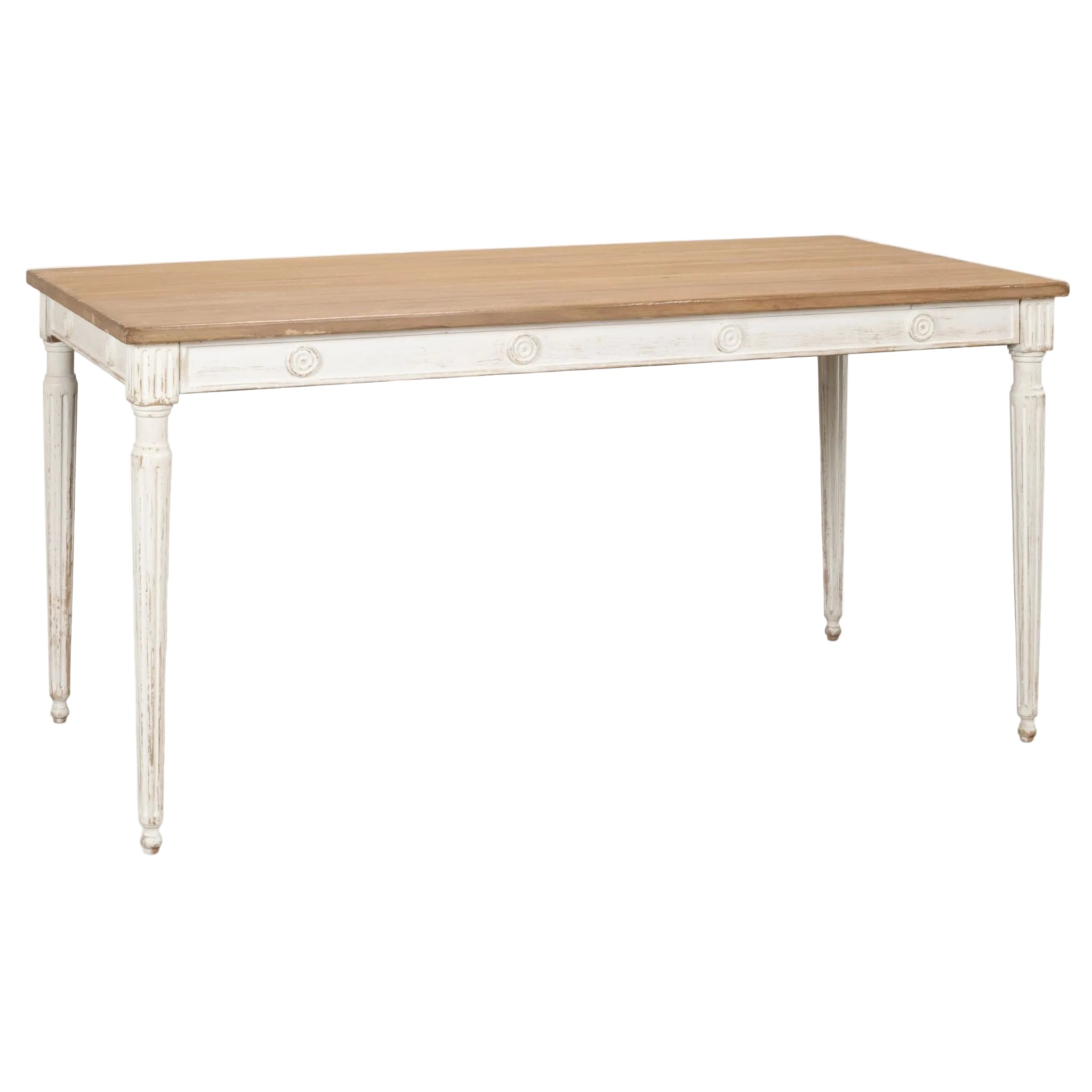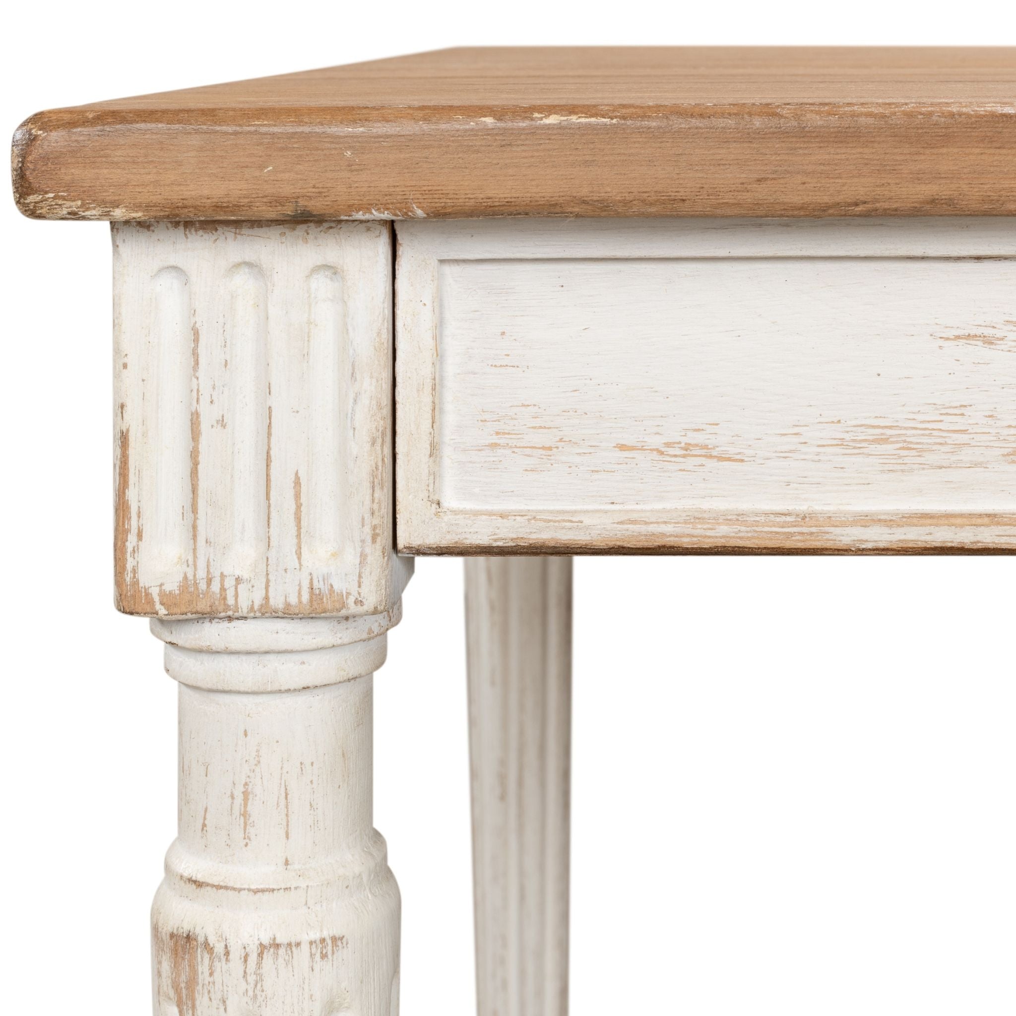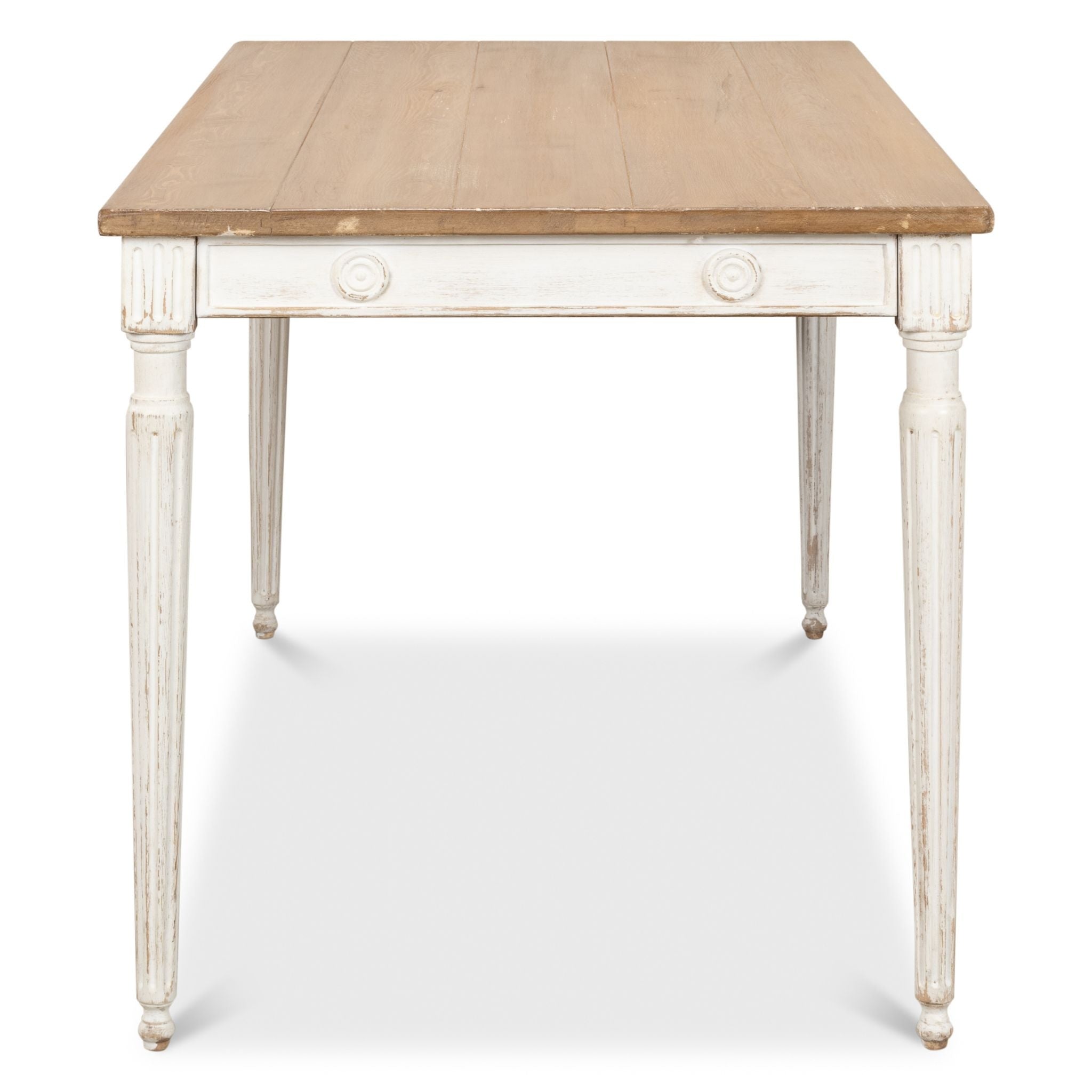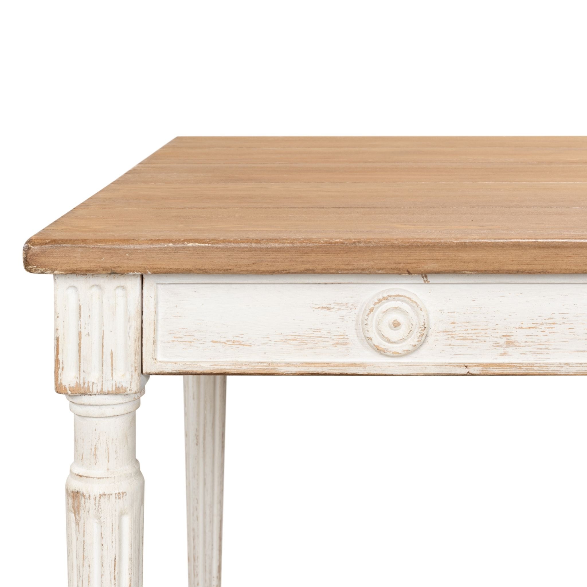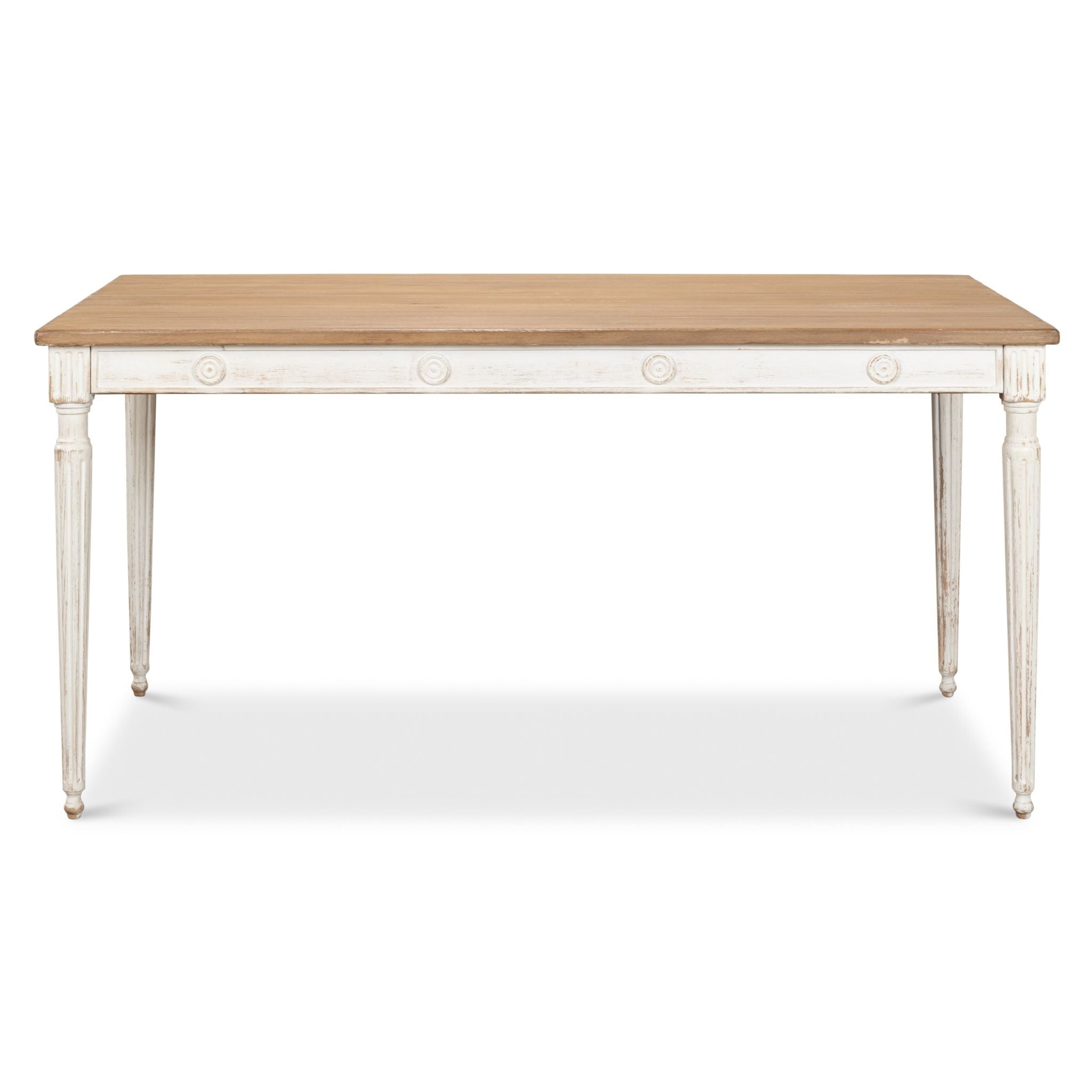 Graceful and charming, the Lady’s Dining Table features a French country silhouette crafted from pine with delicate medallion accents and reeded legs. Its practical 63-inch size makes it a perfect fit for cozy dining nooks, kitchens, or intimate entertaining spaces.