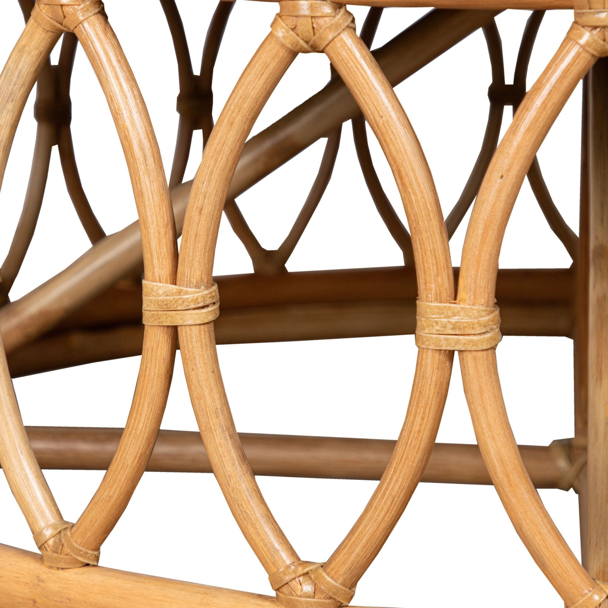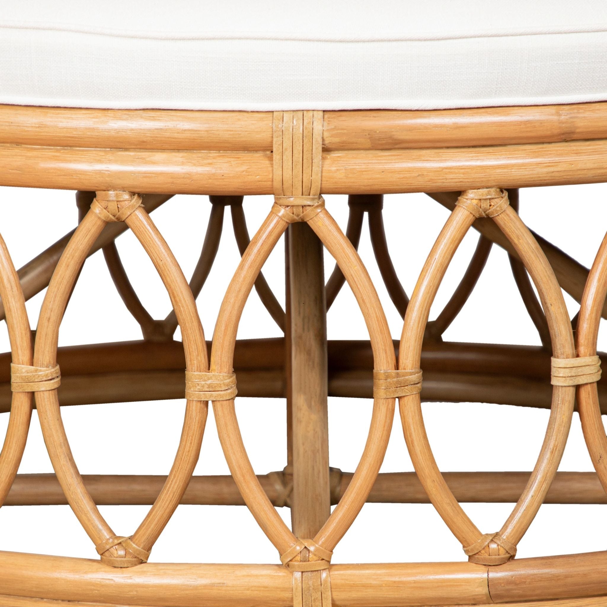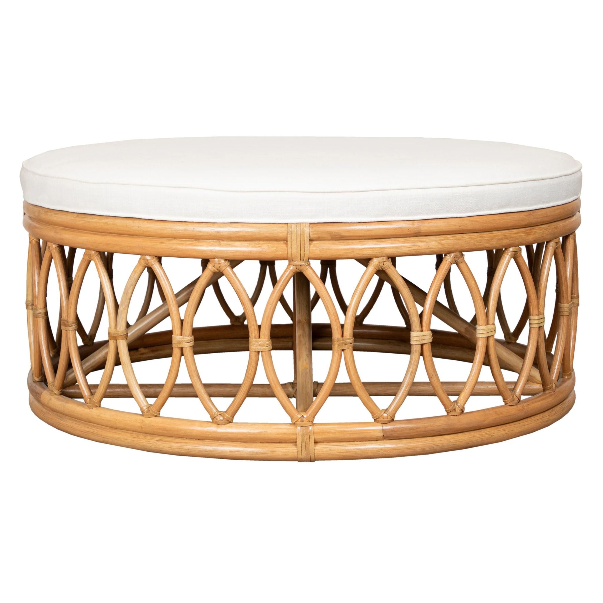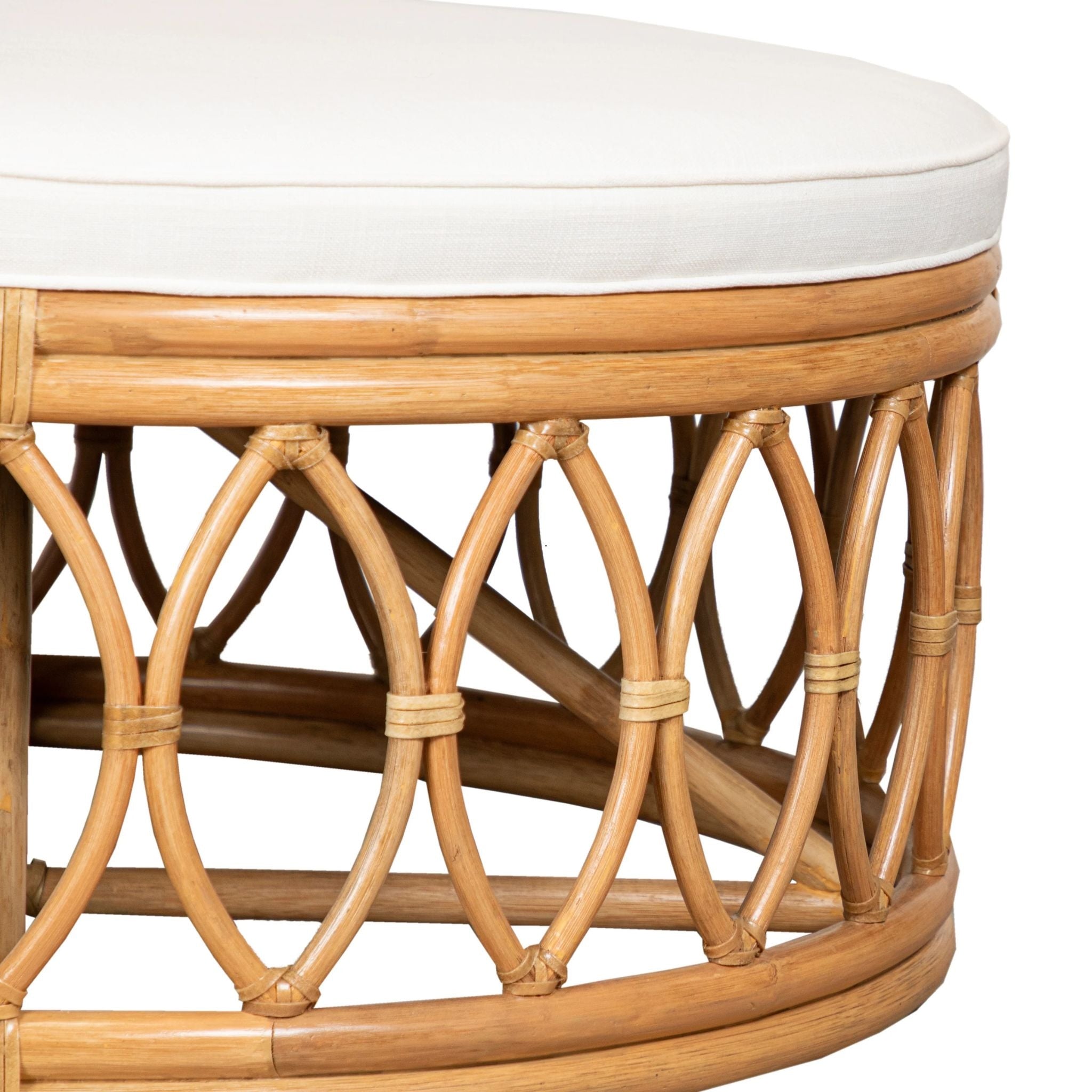 The Lillian Cocktail Ottoman blends artistry and sophistication with its handcrafted rattan frame, raw leather bindings, and customizable seat options. Designed for both elegance and comfort, it’s available in a variety of finishes and fabrics to complement any refined living space.