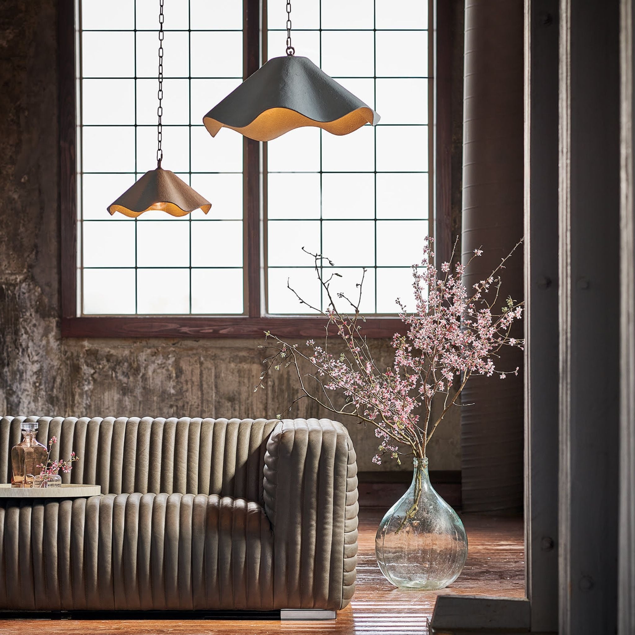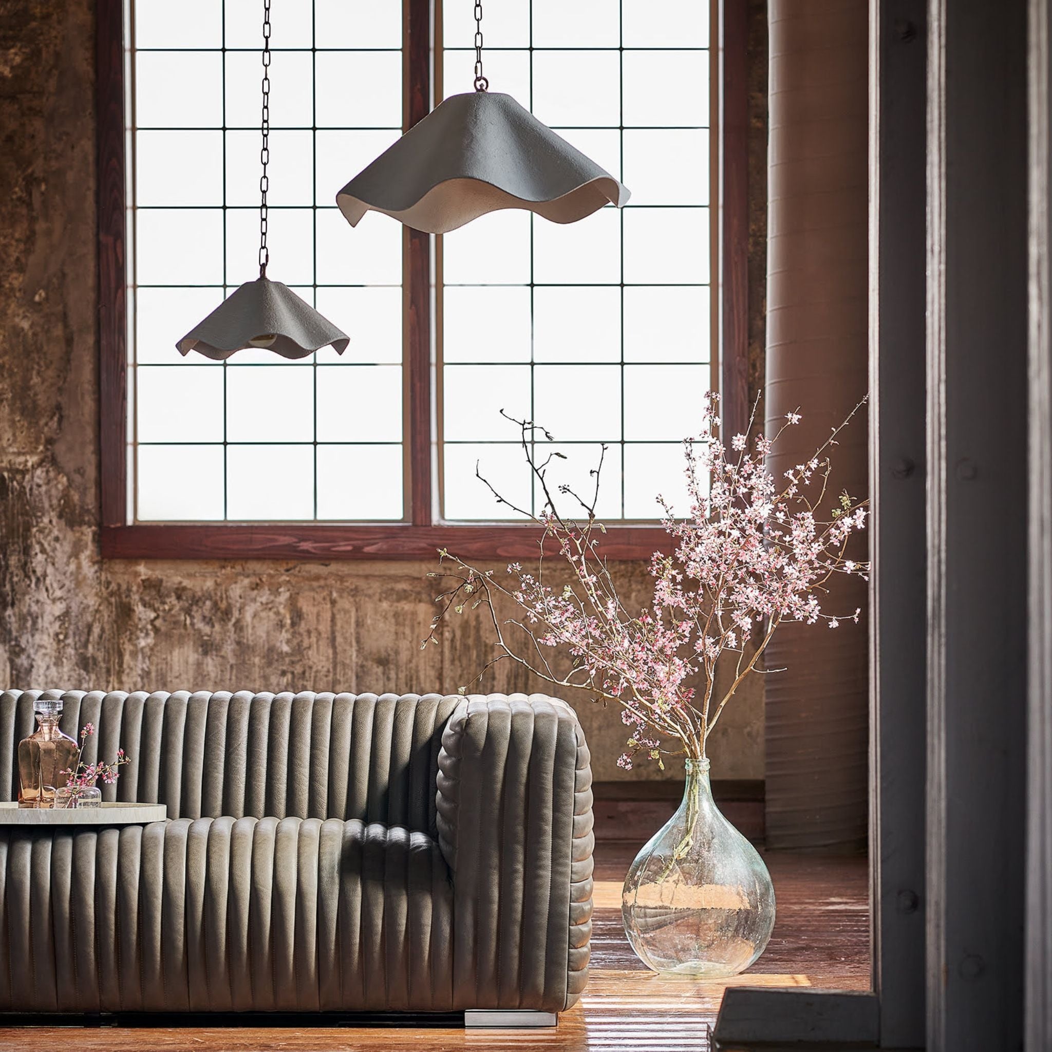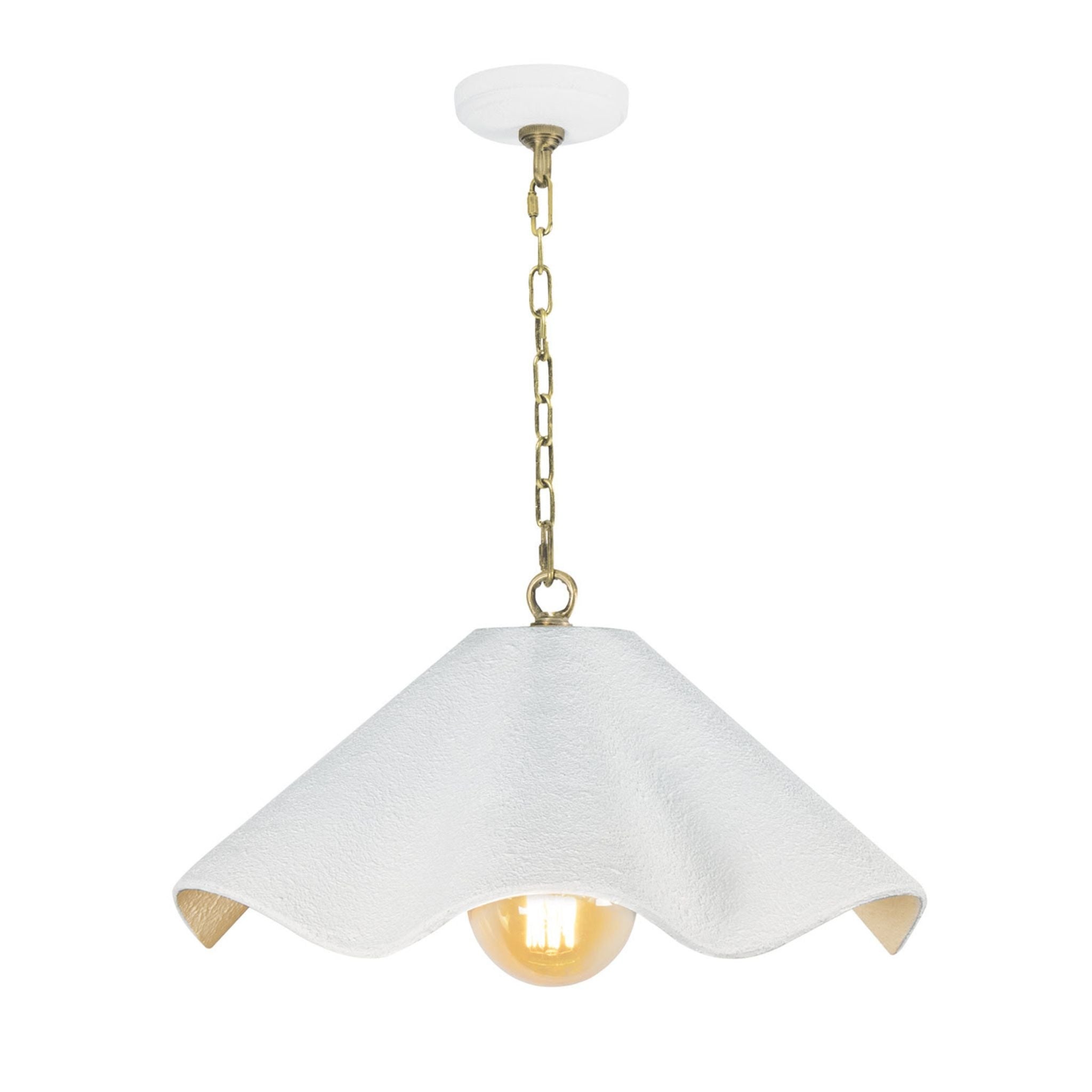 Inspired by the iconic Swiss-designed handkerchief planters but reinterpreted in a delicate feminine twirl. Our small metal Marisol Pendant, in matte white, appears to float weightlessly in mid-air. At 15 inches wide, it’s the perfect petite piece for smaller spaces or in multiples, fluttering above a kitchen island.