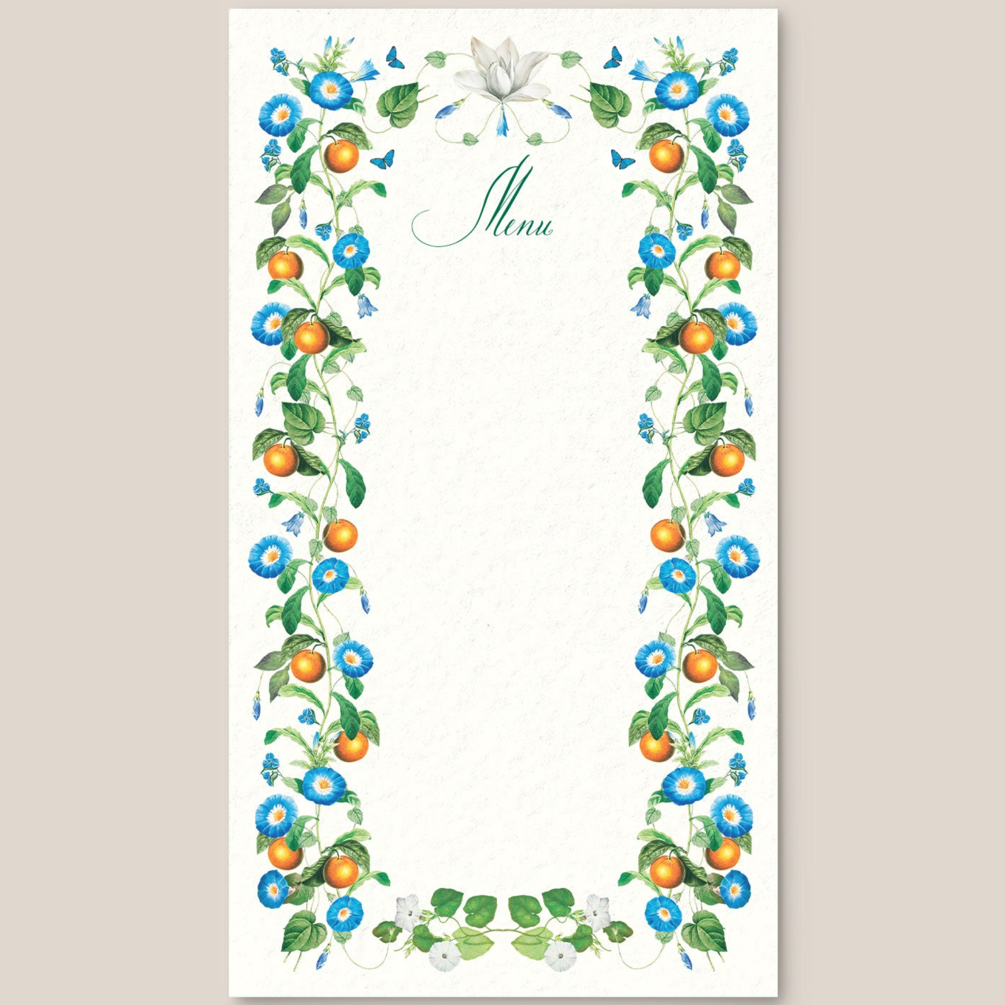 The Mediterráneo Menu Cards evoke the sun-soaked elegance of the Mediterranean with their vibrant, coastal-inspired design. Crafted on premium cardstock, they provide a luxurious backdrop for presenting your carefully curated dishes. Perfect for weddings, dinner parties, and special celebrations, these cards add a stylish, seaside charm to any table.