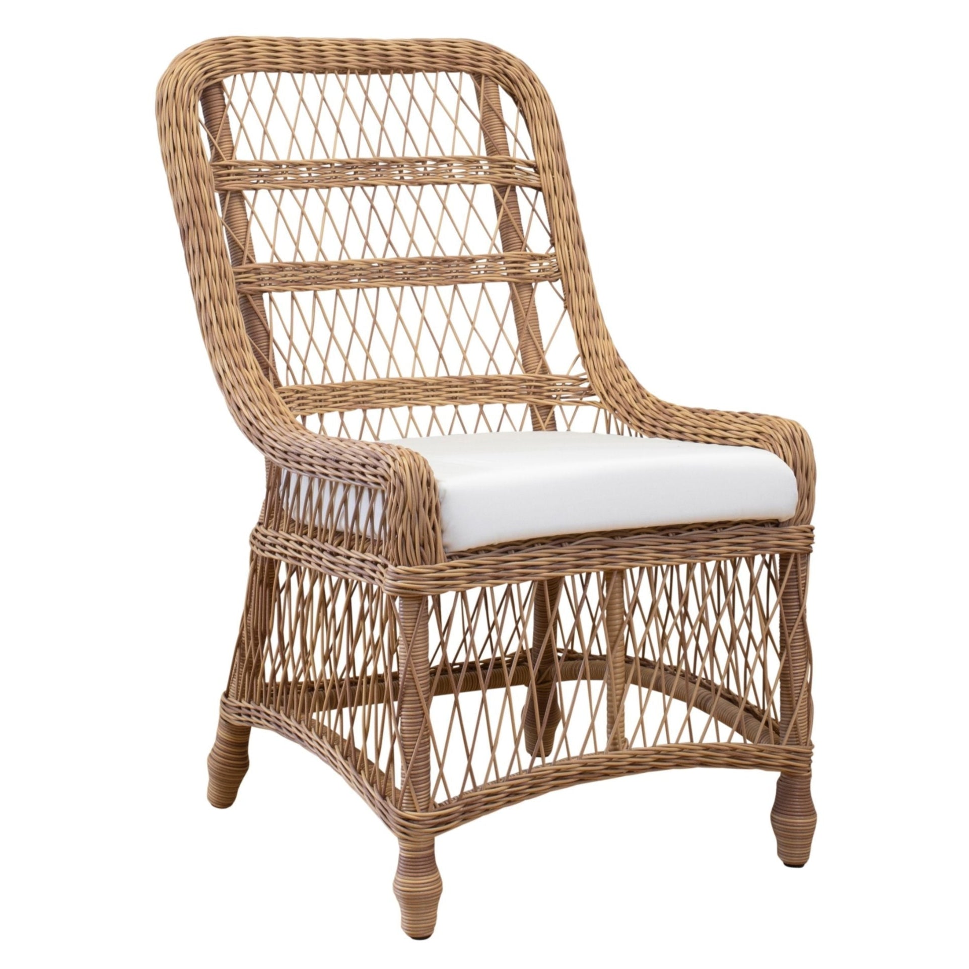 Elevate your outdoor living space with the Outdoor Lemonade Side Chair, a blend of timeless design and modern durability. Handcrafted from weather-resistant synthetic rattan, this chair features a classic open-weave lattice design that adds a touch of elegance to any patio or garden setting.