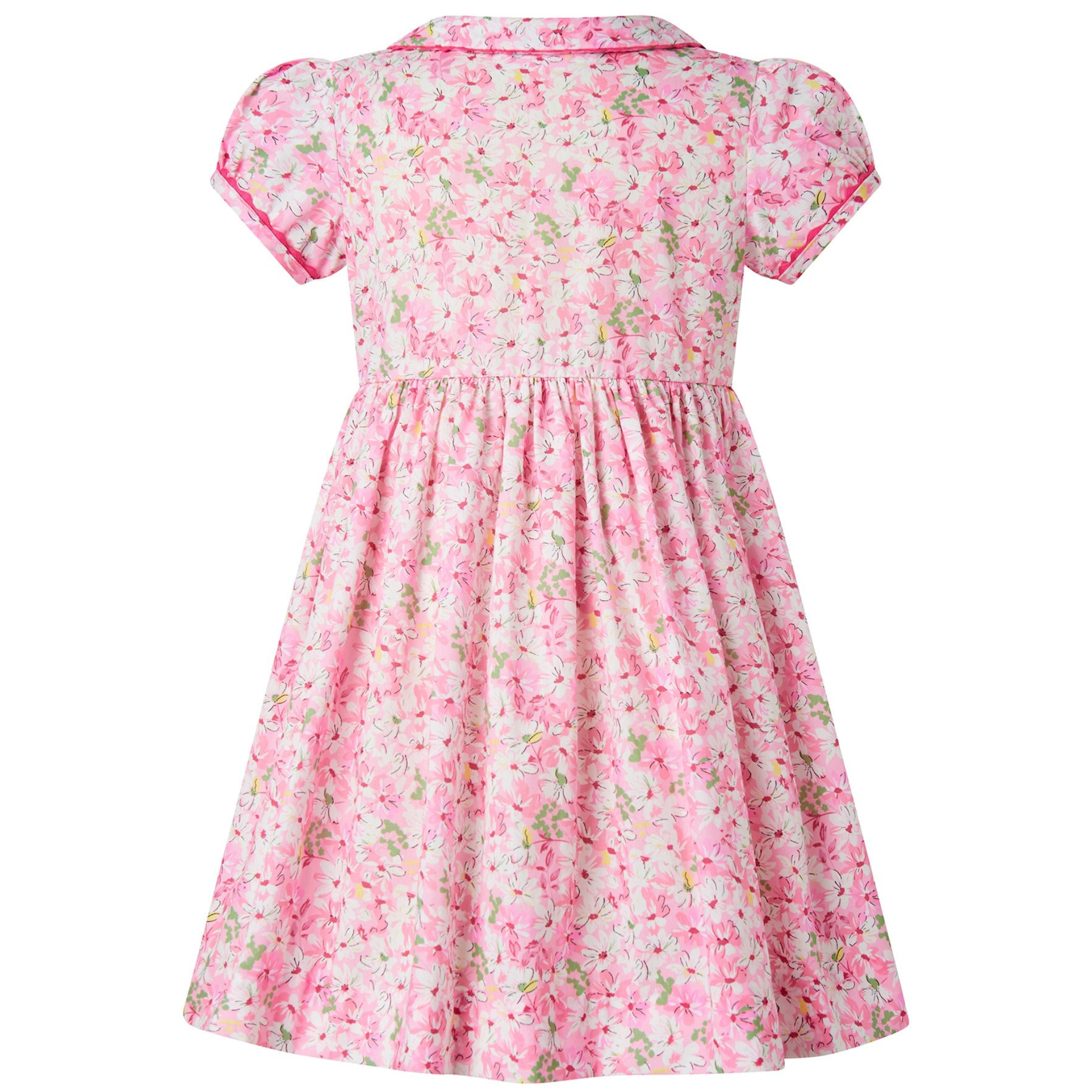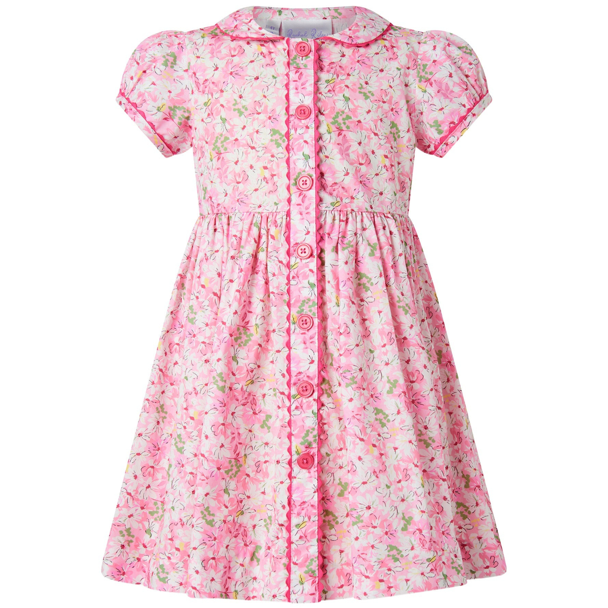Featuring a cheerful all-over daisy print on a soft pink background, this dress is as sweet as it is stylish. The button-front design adds a classic touch, while the lightweight fabric keeps it comfy for all-day wear. Perfect for sunny days, family outings, or casual playdates, this charming dress is sure to become a favorite go-to piece.