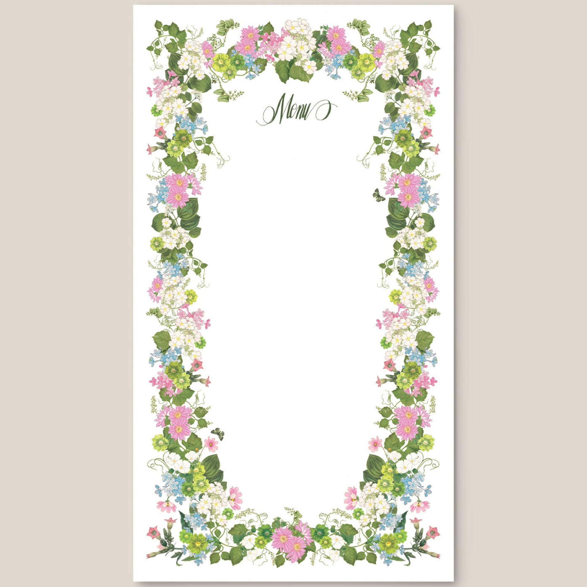 Bring the elegance of the French countryside to your table with these Provence Menu Cards. Featuring delicate floral patterns and soft, soothing colors, they add a touch of sophistication to any event. Perfect for weddings, garden parties, or intimate dinners, these cards beautifully showcase your menu with timeless charm.