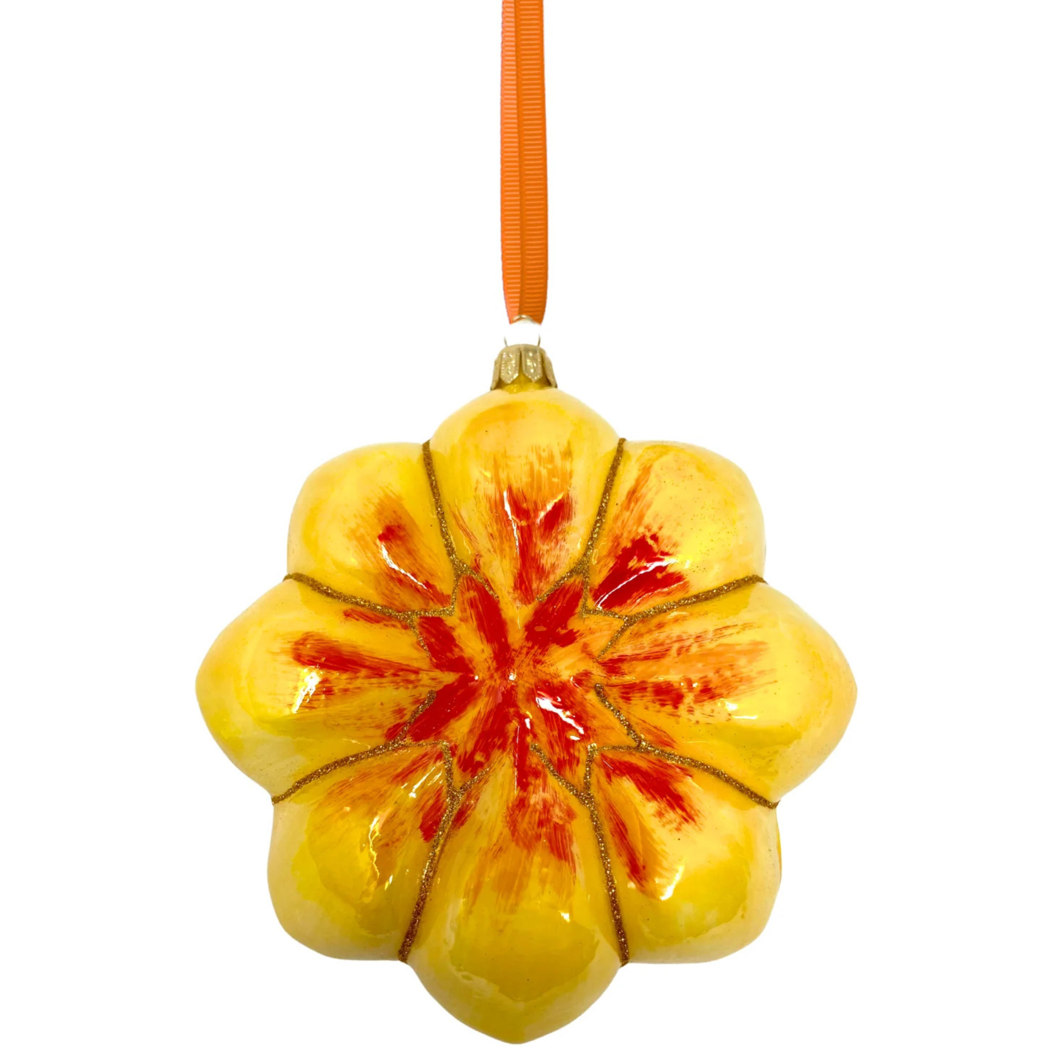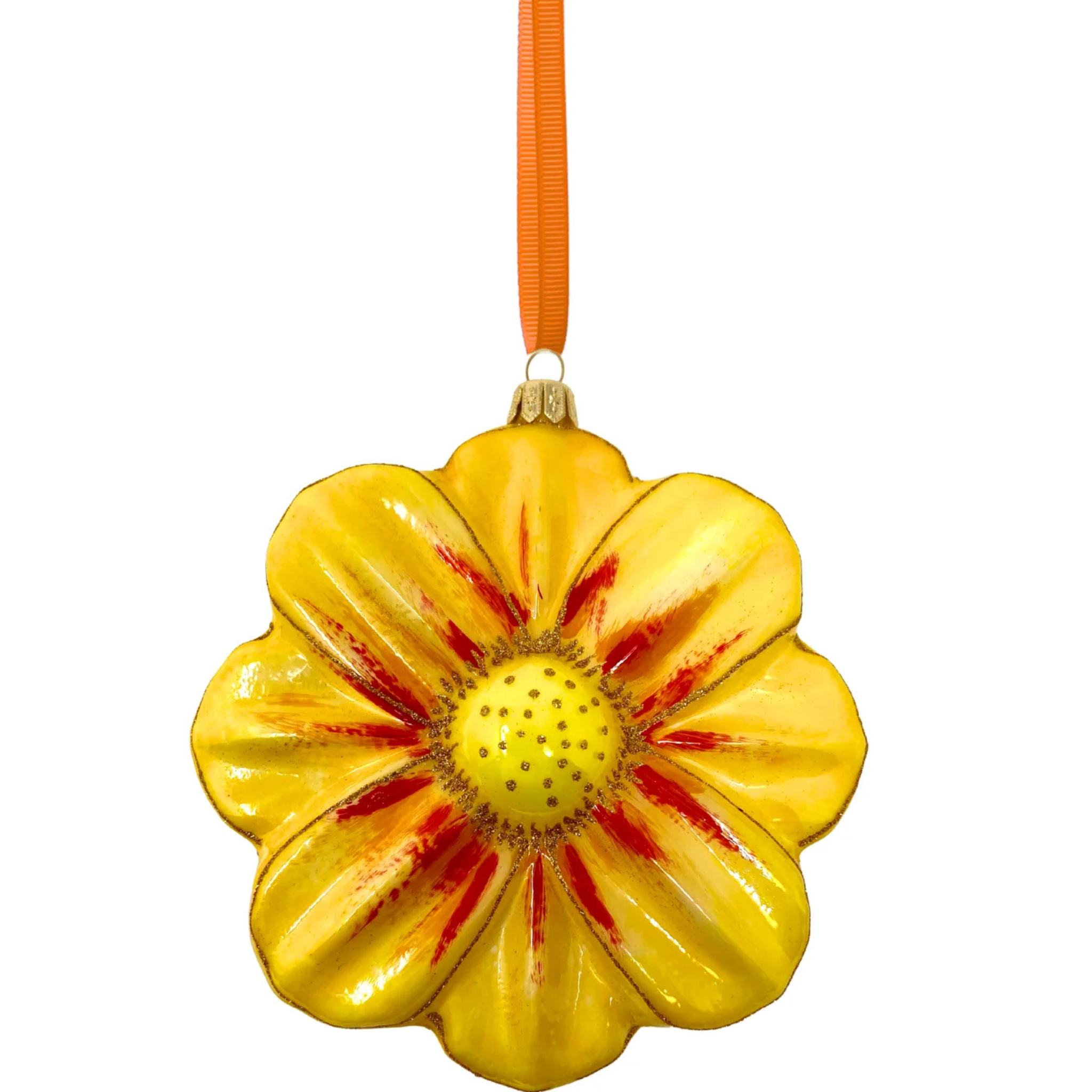 Crafted with intricate detail, this ornament features delicate petals in soft, warm yellow tones with red and gold details, mimicking the elegance of a real buttercup flower. Perfect for adding a burst of natural beauty to your Christmas tree, this ornament evokes feelings of warmth and joy, capturing the essence of blooming flowers amidst the chill of winter. A lovely addition for those who appreciate the delicate wonders of the natural world.