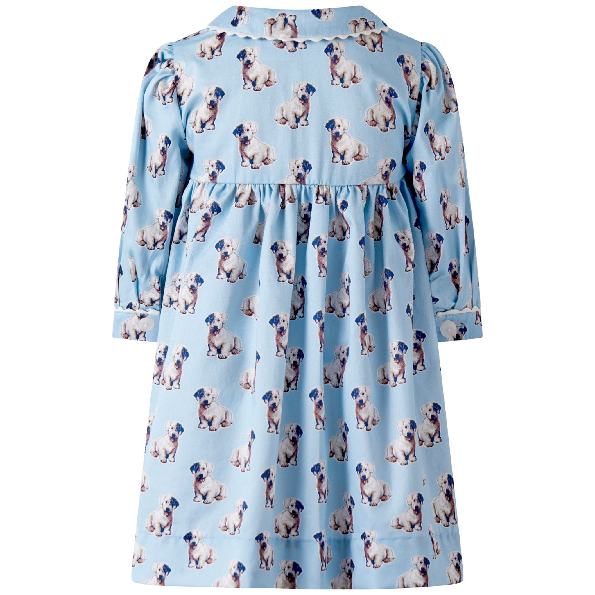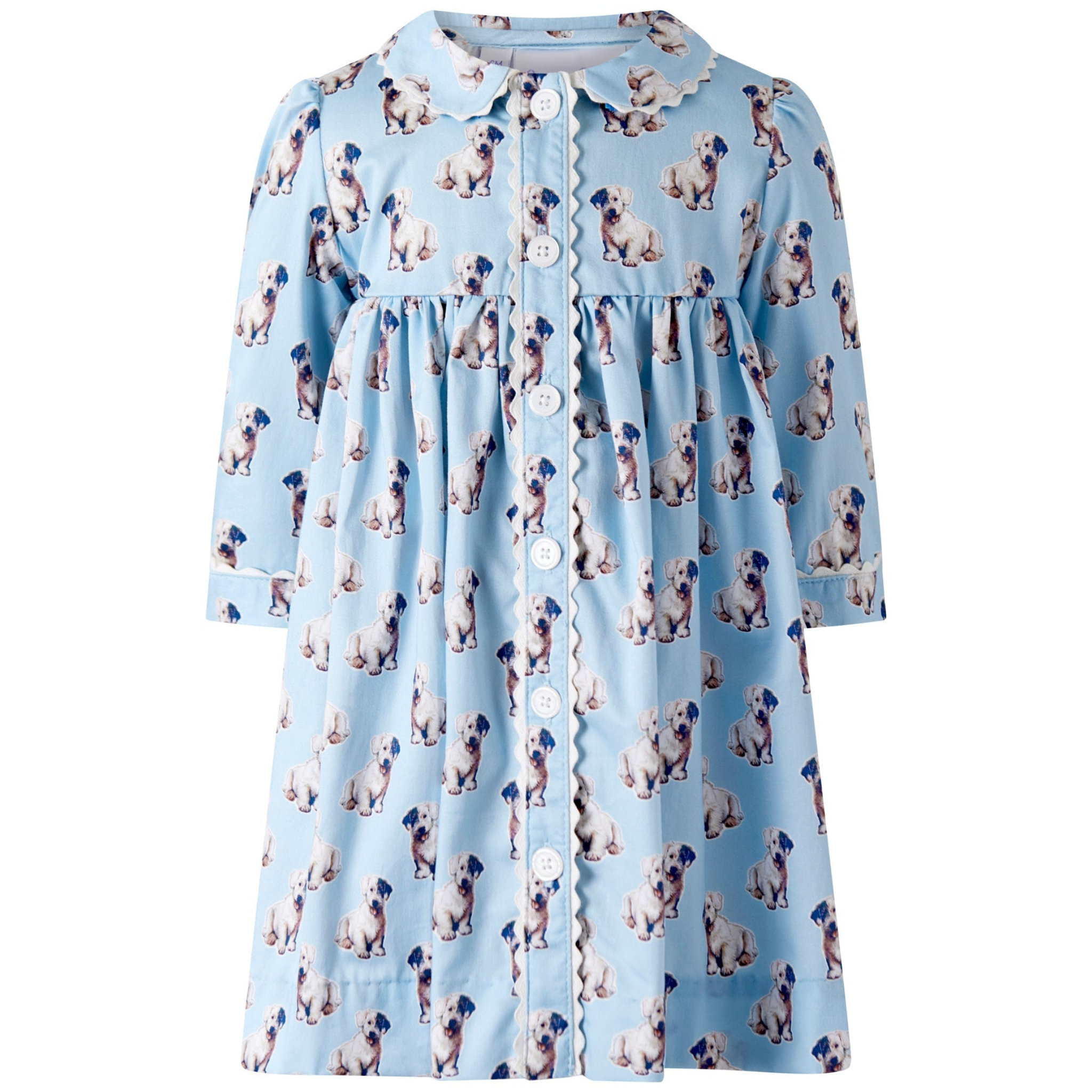 Adorable meets classic in this dress and bloomers set. Made from cotton, this charming dress features a sweet all-over puppy print that adds a playful touch to a timeless silhouette. The button-front design makes for easy dressing, while the gently gathered skirt adds a bit of bounce for twirling fun. Coordinating bloomers complete the look, offering comfort and coverage for busy little explorers.