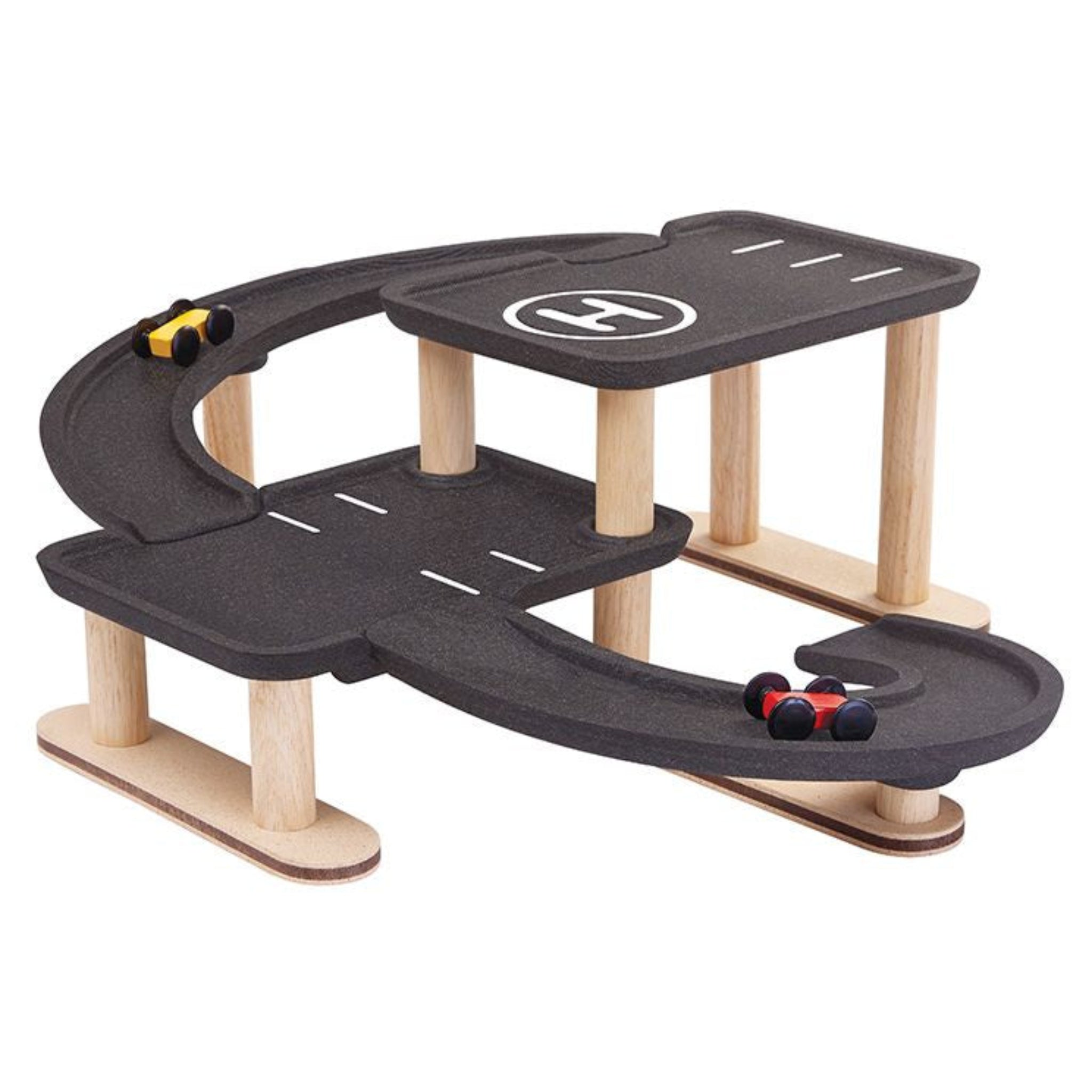 - The PlanToys Race N Play Parking Garage is hours of fun for children to park their favorite cars on multiple levels and race them down the ramp to see which is fastest