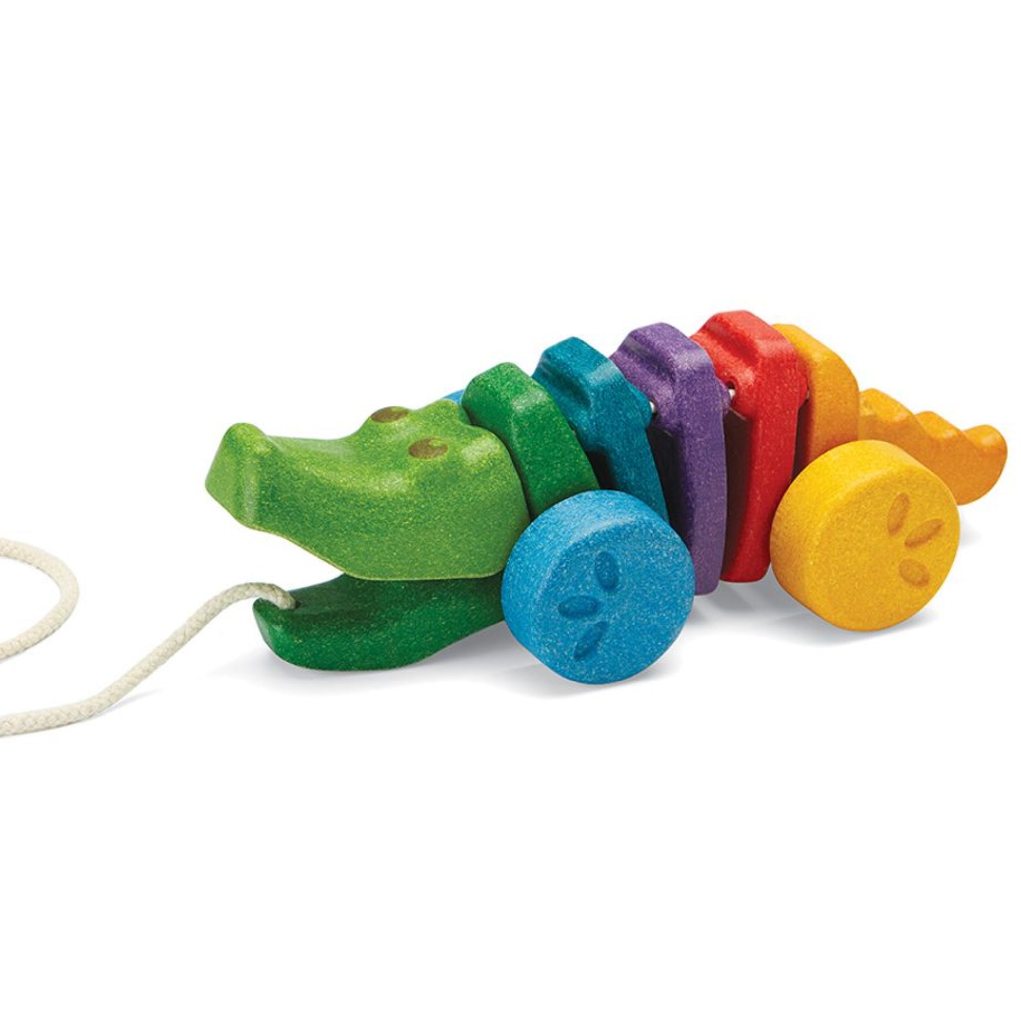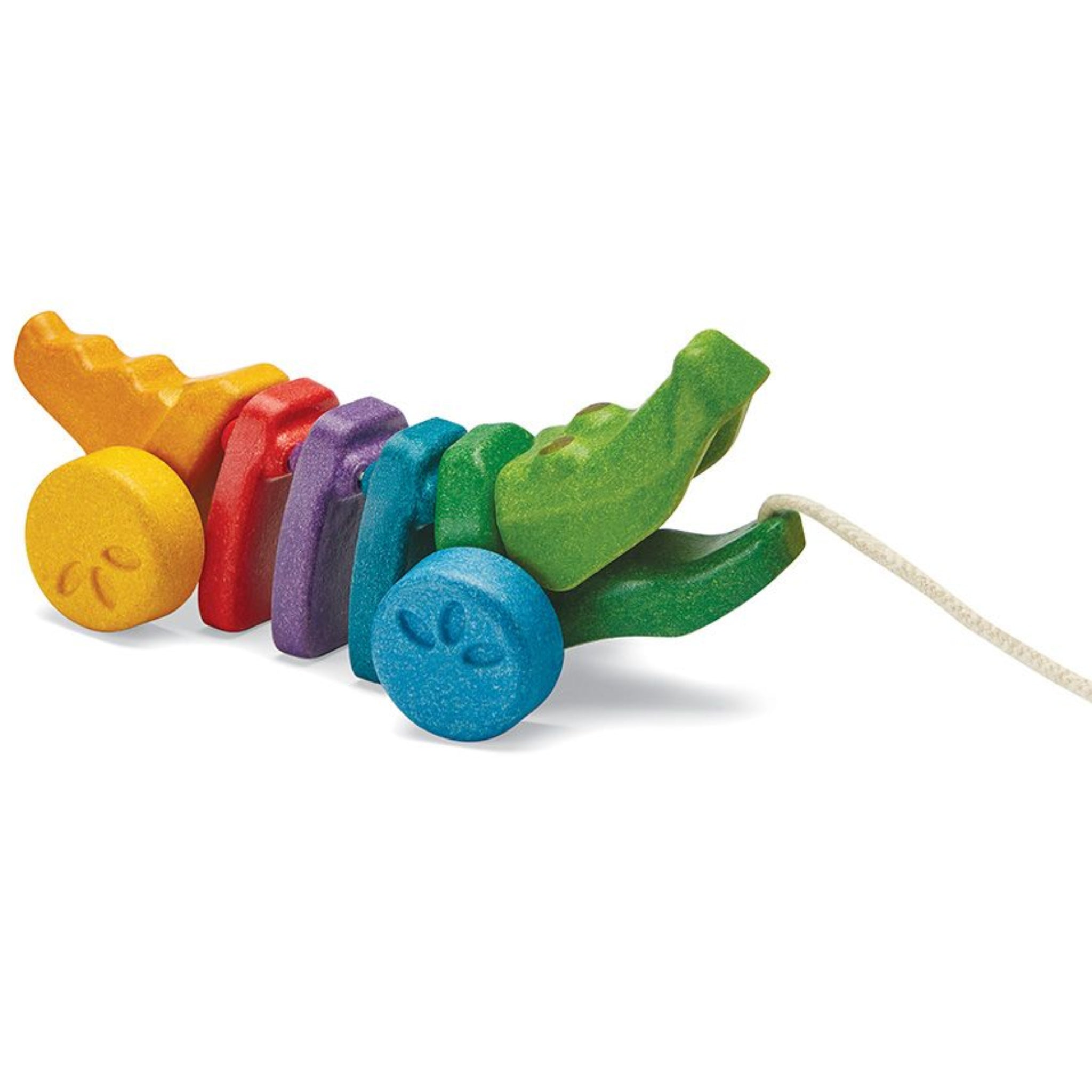 This colorful Rainbow Dancing Alligator is made from PlanWood. When children pull the Alligator, its head and tail move up and down – making a fun click-clack sound.