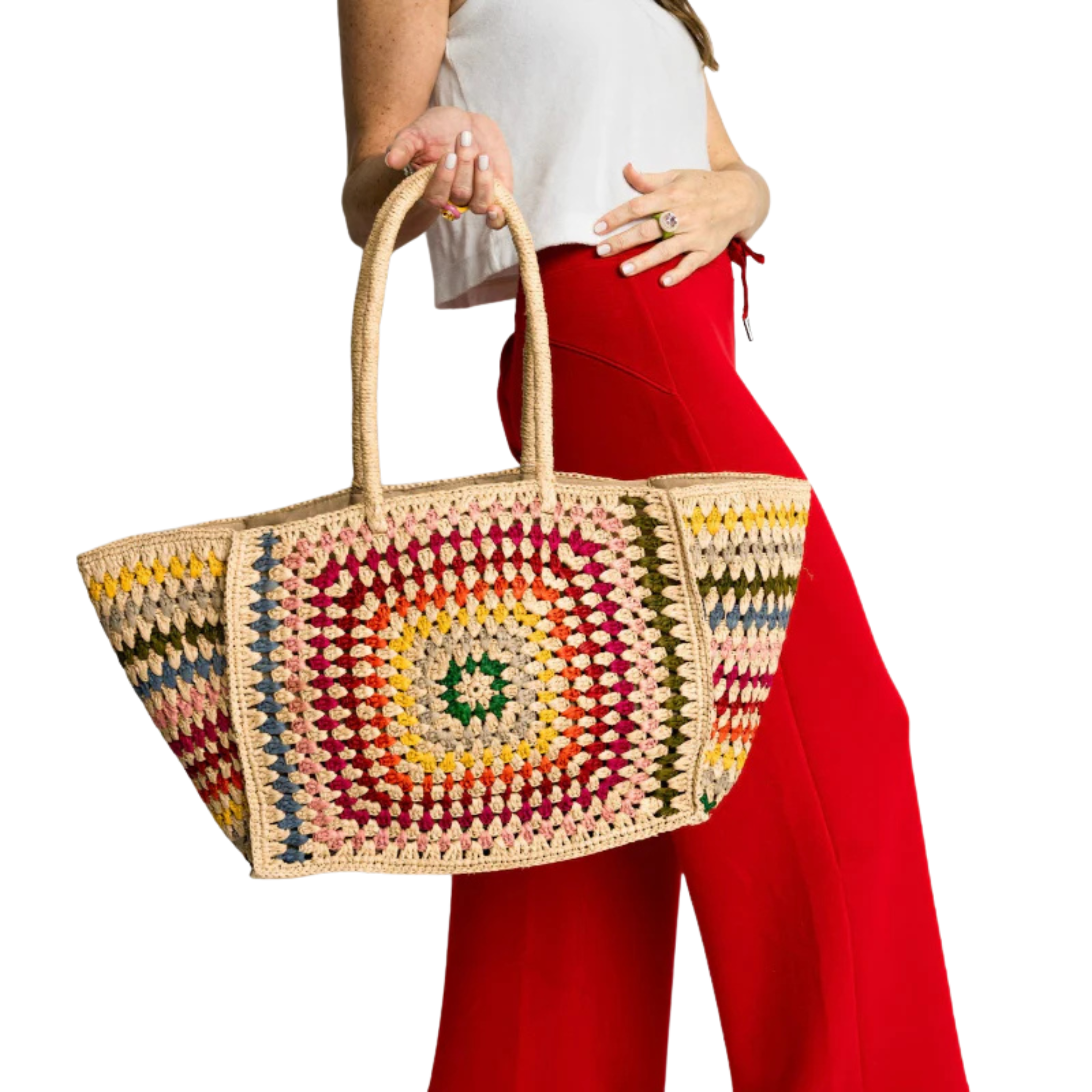 Step into spring fashion with this stylish raffia tote bag, meticulously handwoven by artisans in Madagascar. This handmade raffia handbag features a lined interior and a convenient interior pocket for effortless organization.