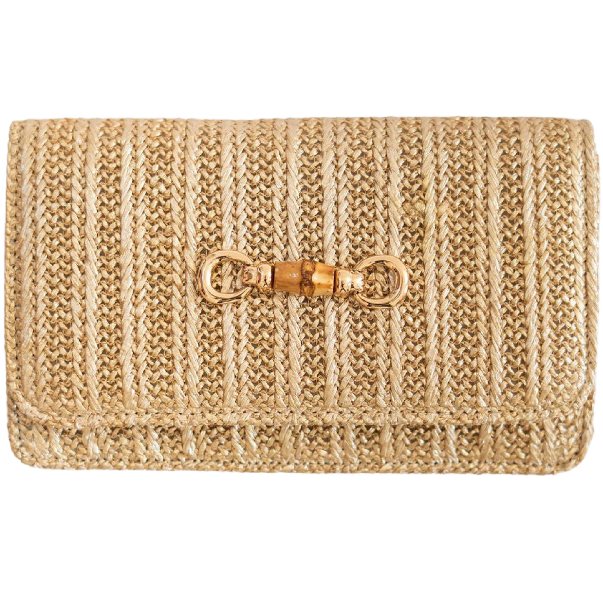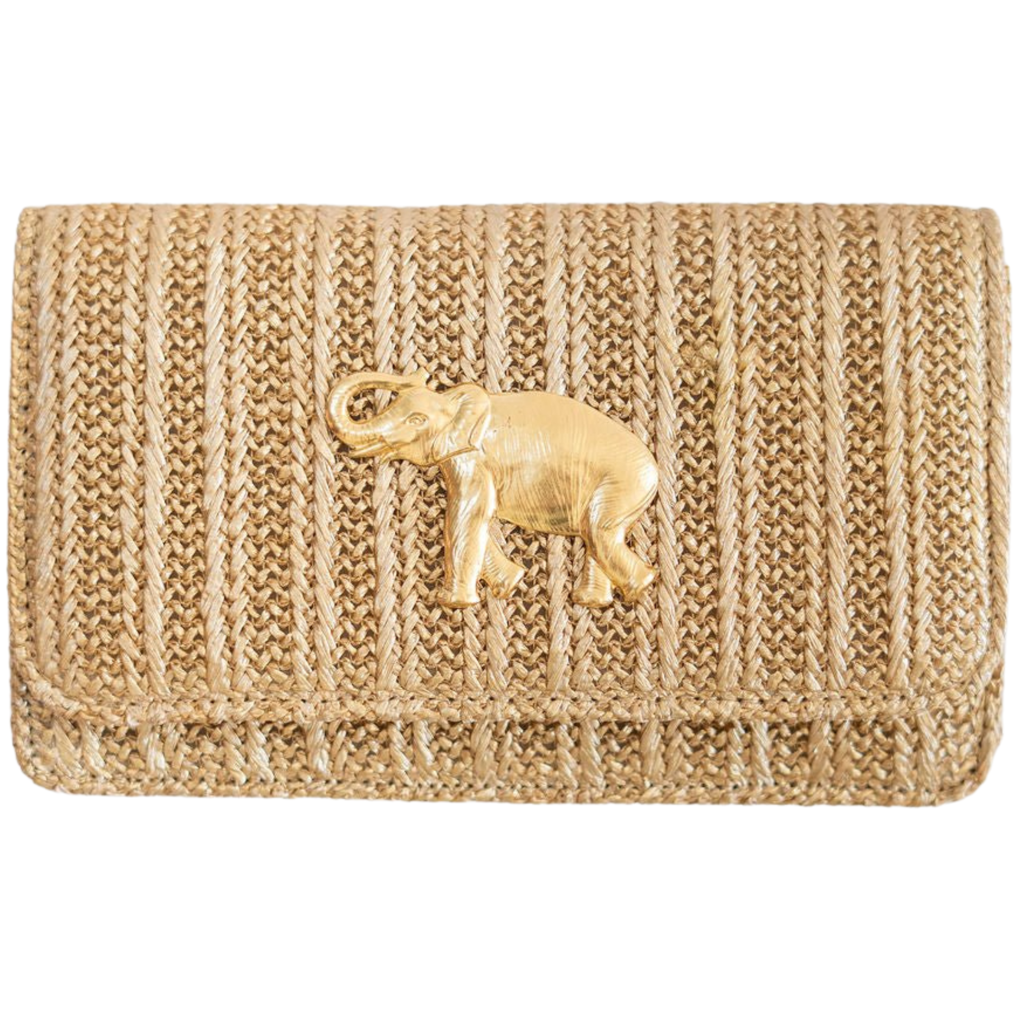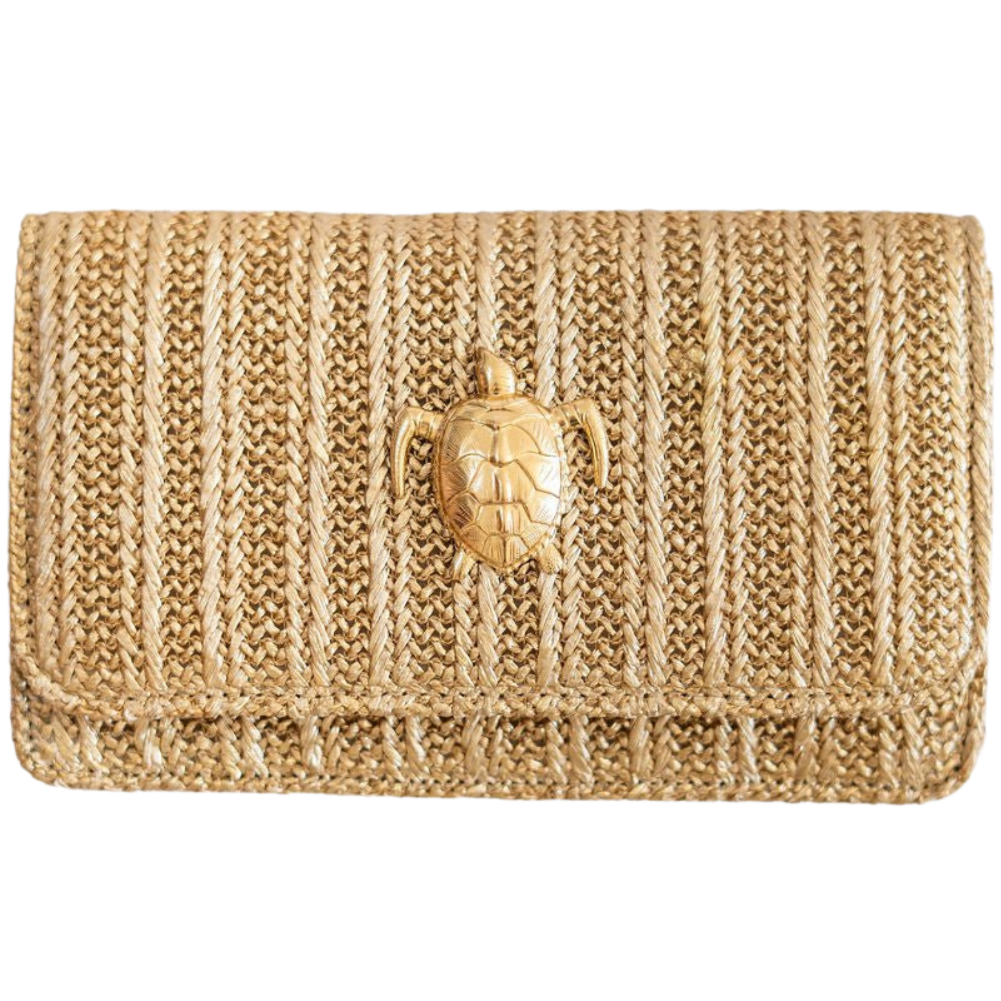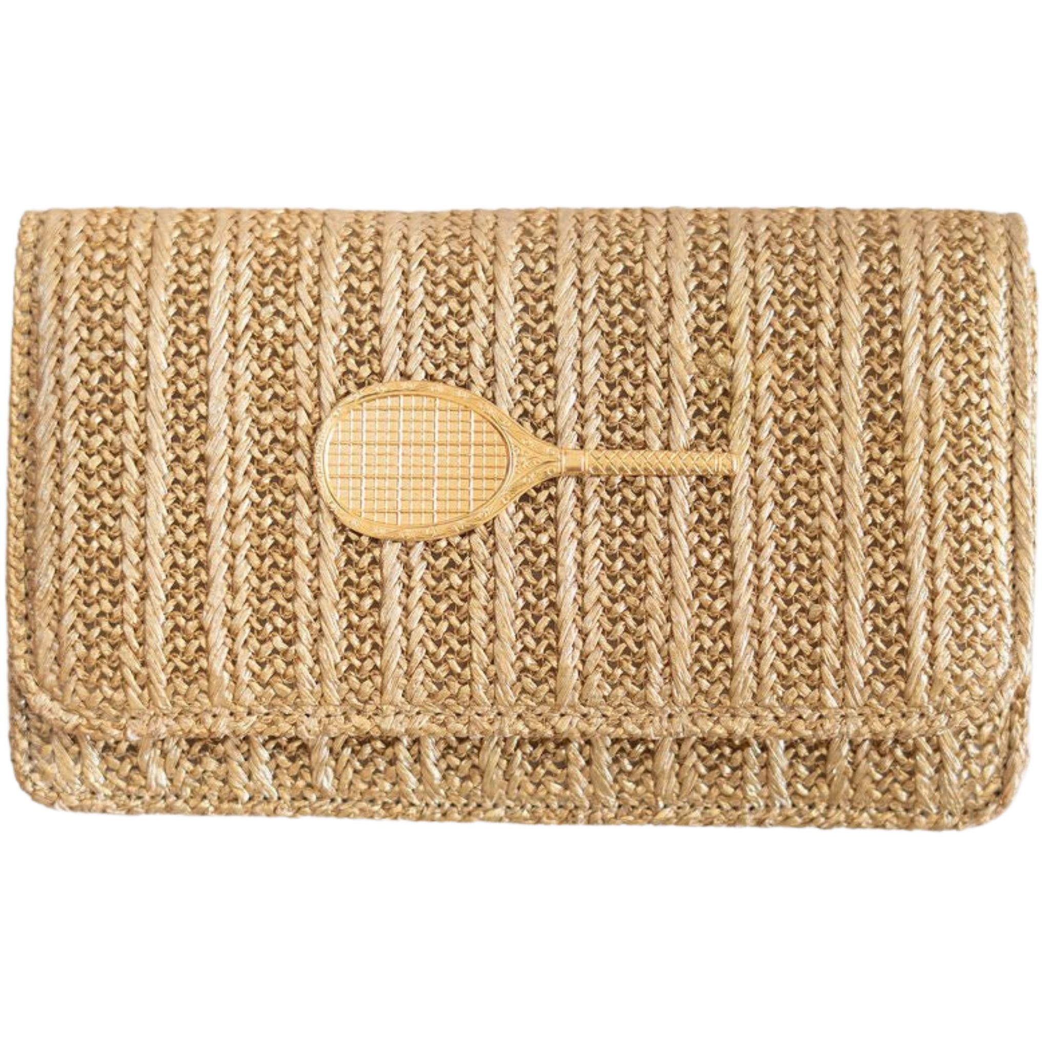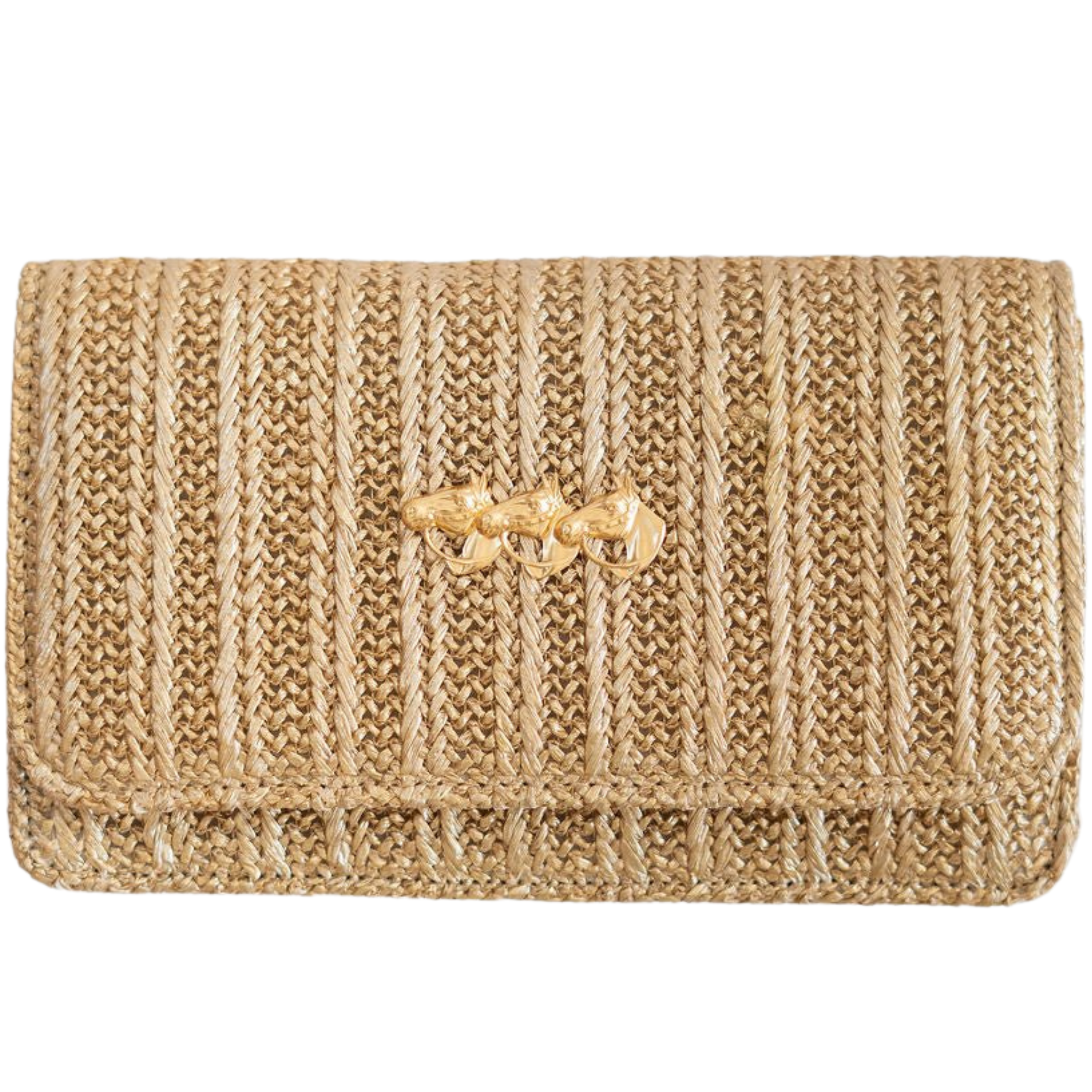 Turn heads with timeless sparkle. This clutch exudes understated glamour, crafted from shimmering metallic fabric that catches the light with every move. Sleek and refined, its minimalist silhouette is elevated by a custom charm - adding a touch of personality and flair to your evening ensemble.