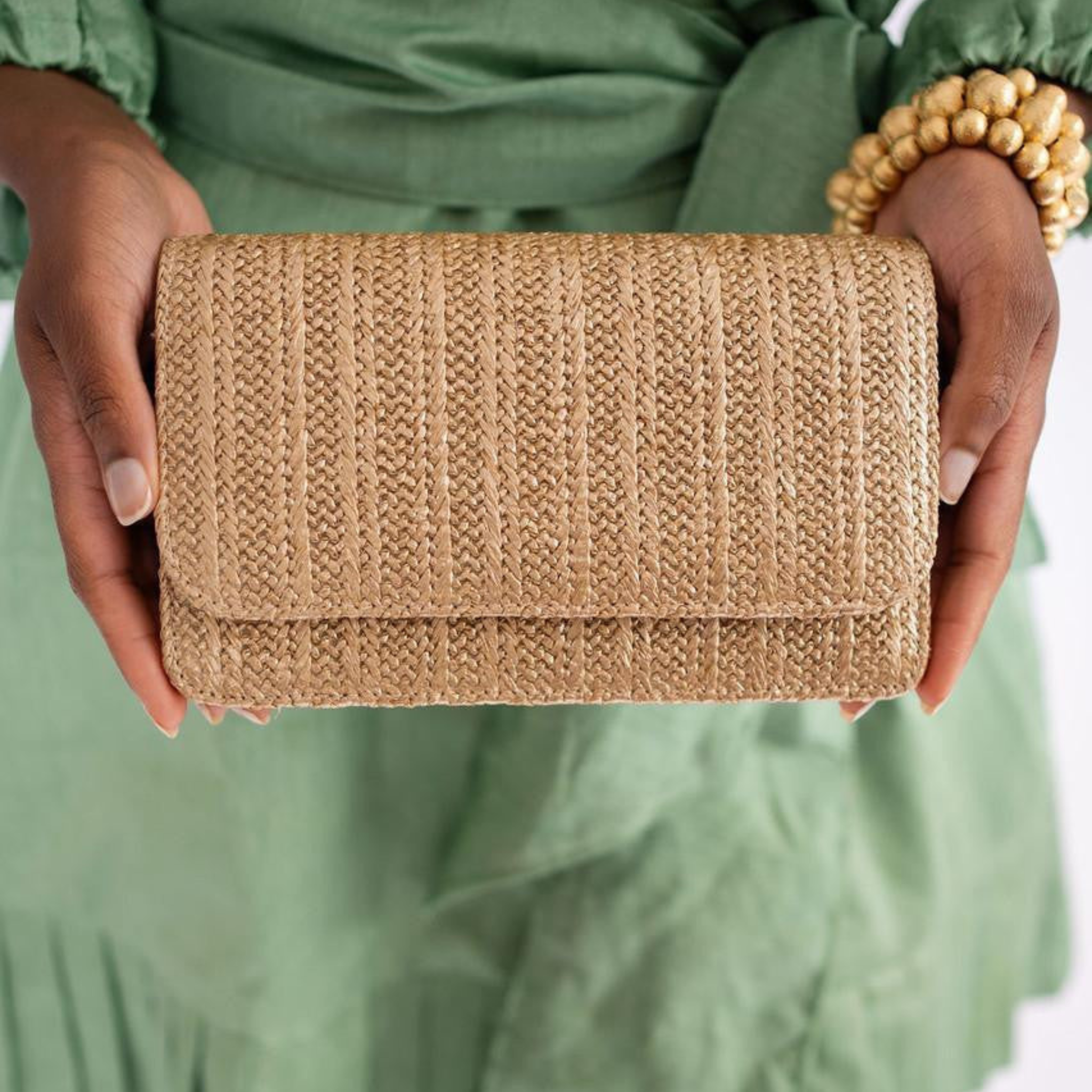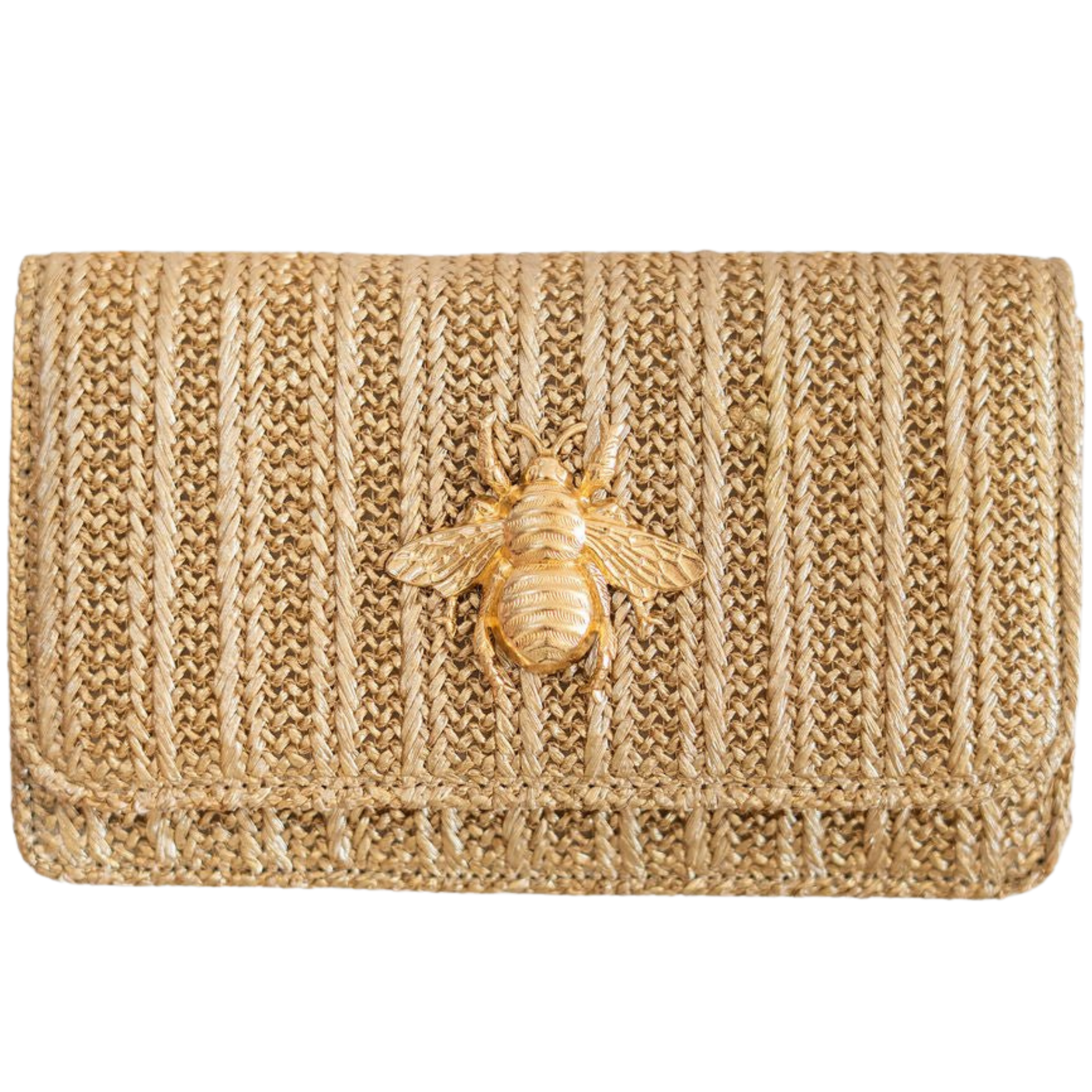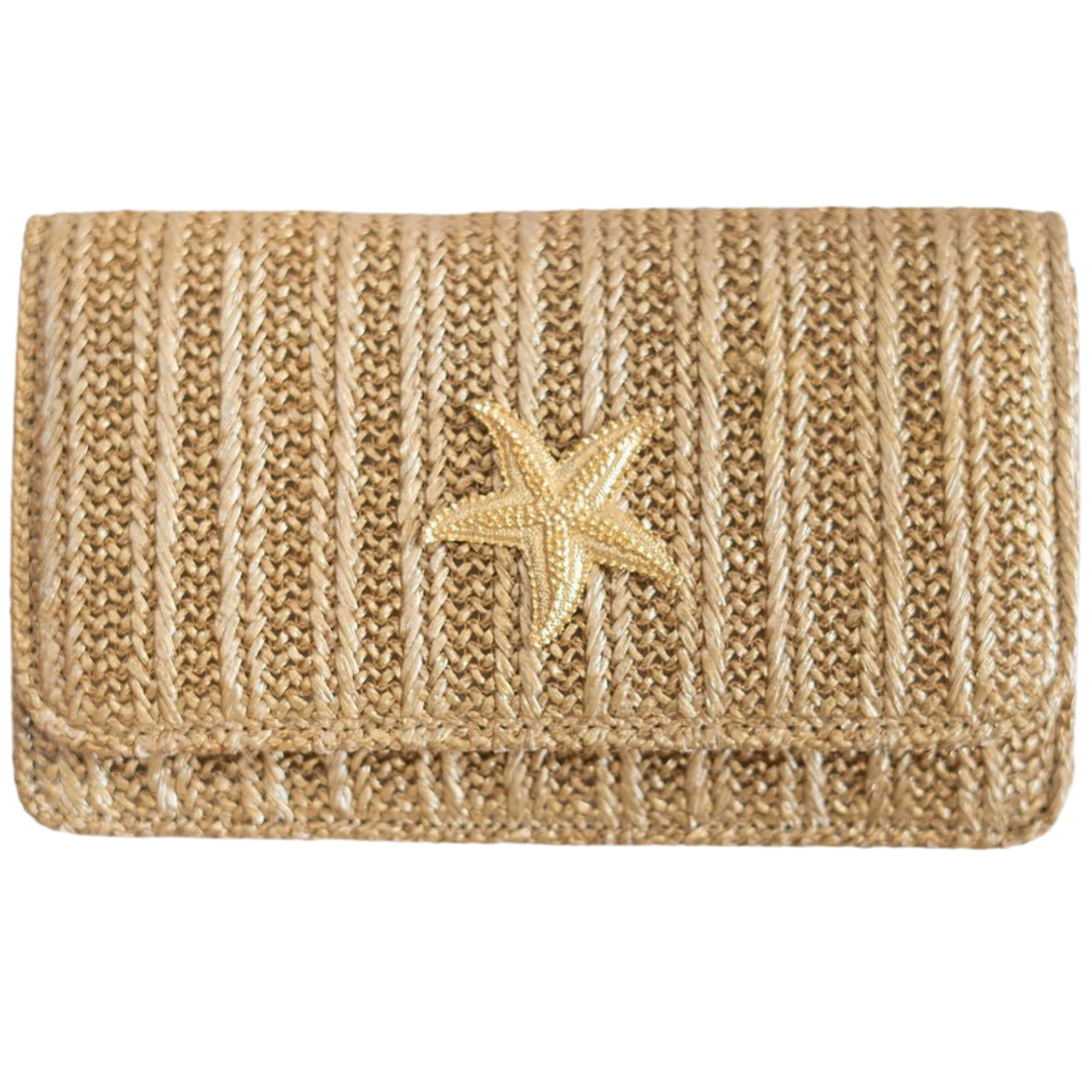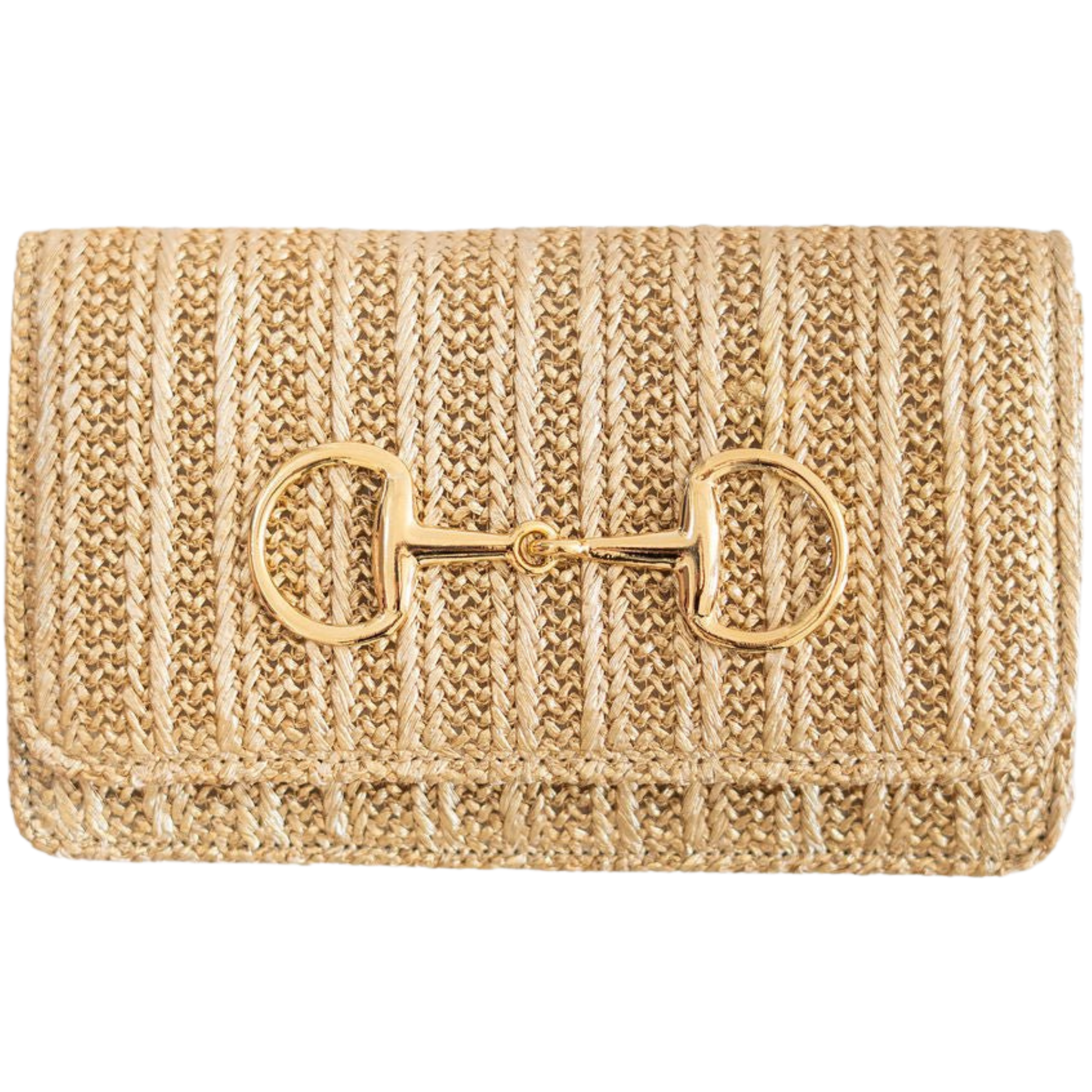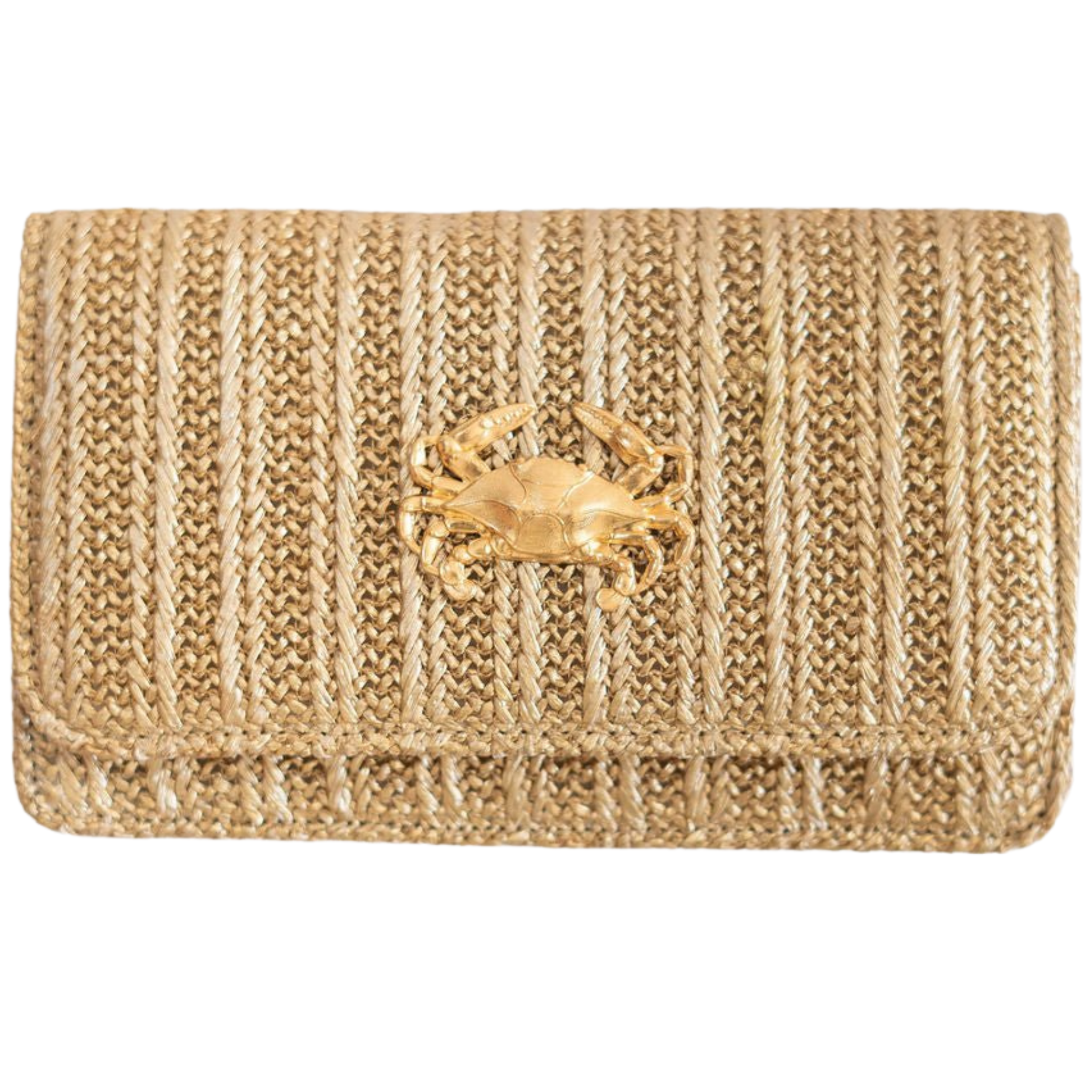 Turn heads with timeless sparkle. This clutch exudes understated glamour, crafted from shimmering metallic fabric that catches the light with every move. Sleek and refined, its minimalist silhouette is elevated by a custom charm - adding a touch of personality and flair to your evening ensemble.