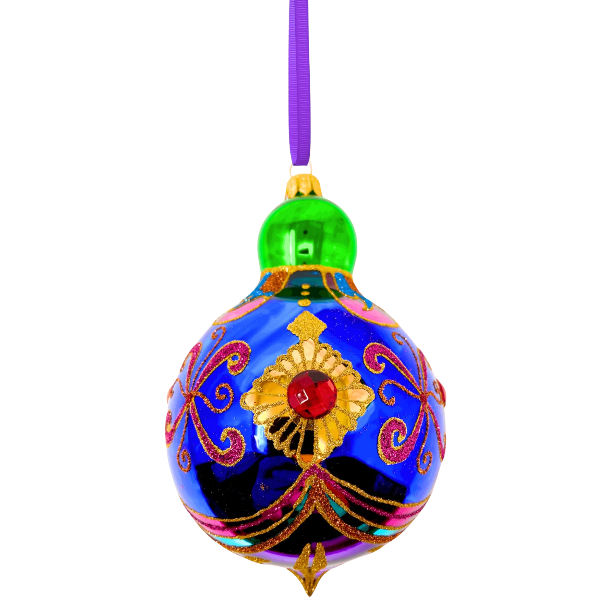 Sapphire Sparkling Gem Glass Christmas Bauble