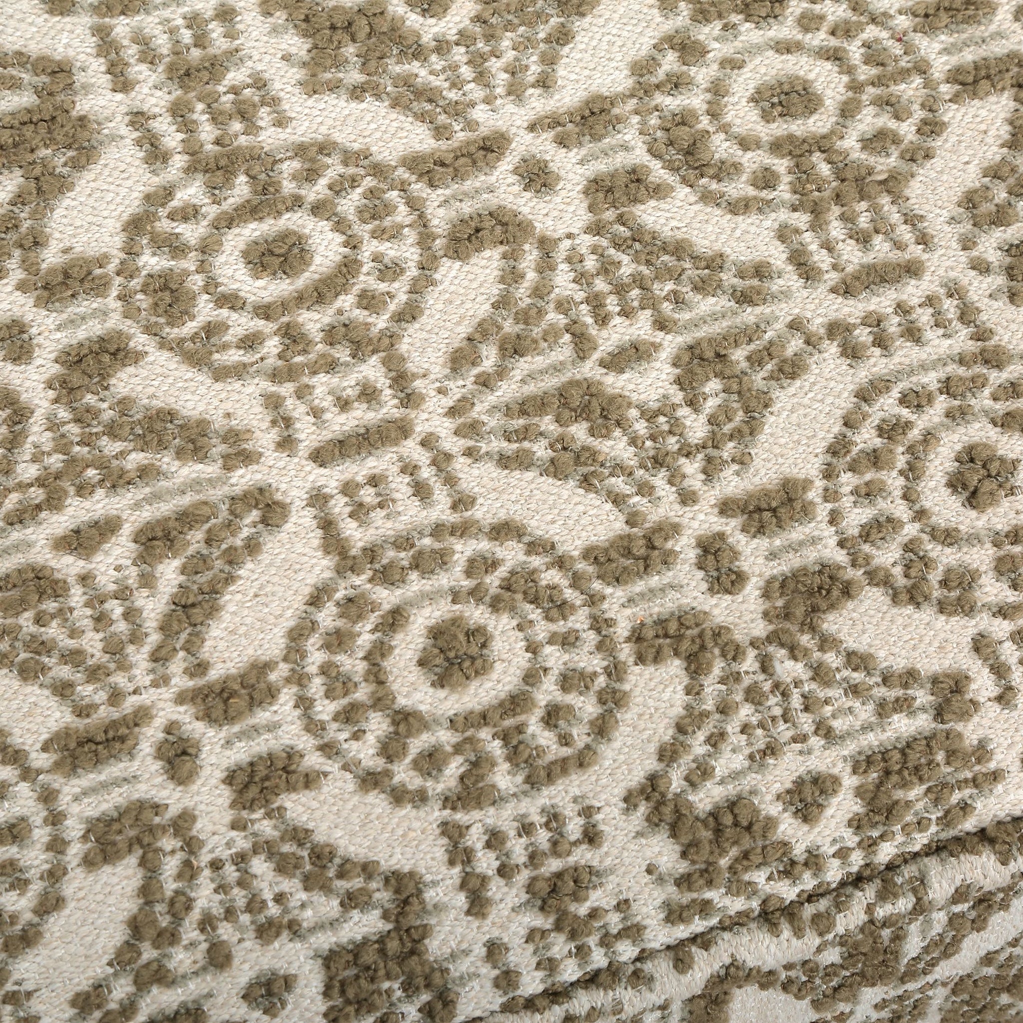 Compact yet stylish, the Satoria Small Bench adds a refined accent with its rich bouclé upholstery and olive green medallion lattice pattern. Perfect for extra seating or as a decorative piece, it brings texture and character to any room.