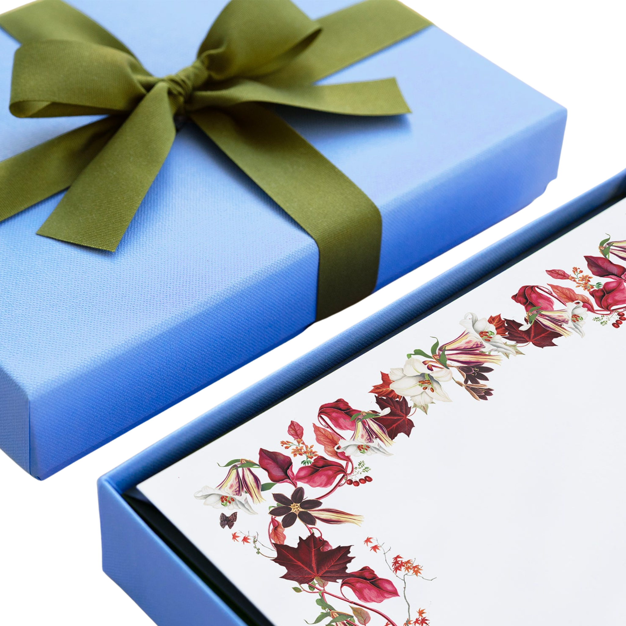 - Each set is packaged in the signature box and tied with a moss green ribbon