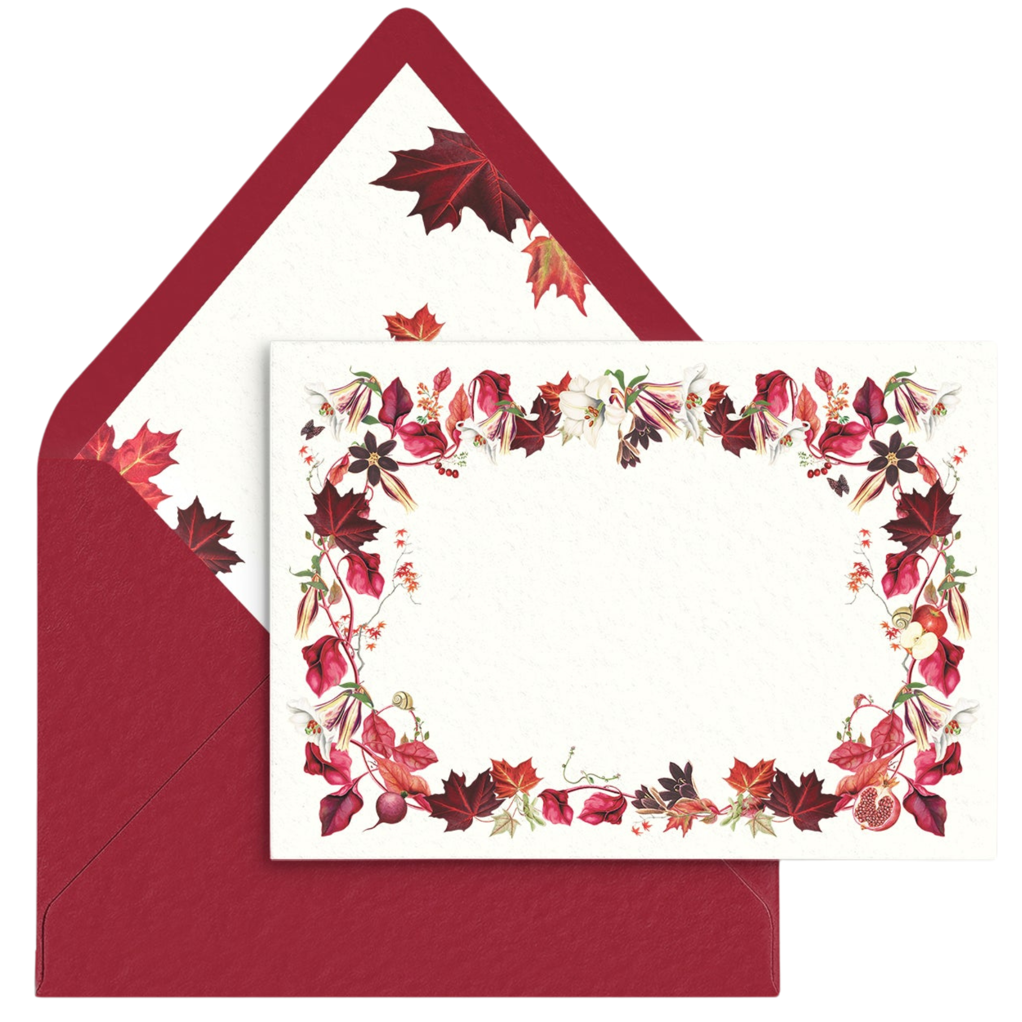 Bring the warmth of autumn to your messages with Scarlet Maple Stationery. Featuring an elegant maple leaf design in rich scarlet tones, this premium paper set adds seasonal beauty and sophistication to letters, notes, and invitations. With its timeless design and sophisticated palette, Scarlet Maple Stationery adds a distinctive, memorable flourish to every word you send.