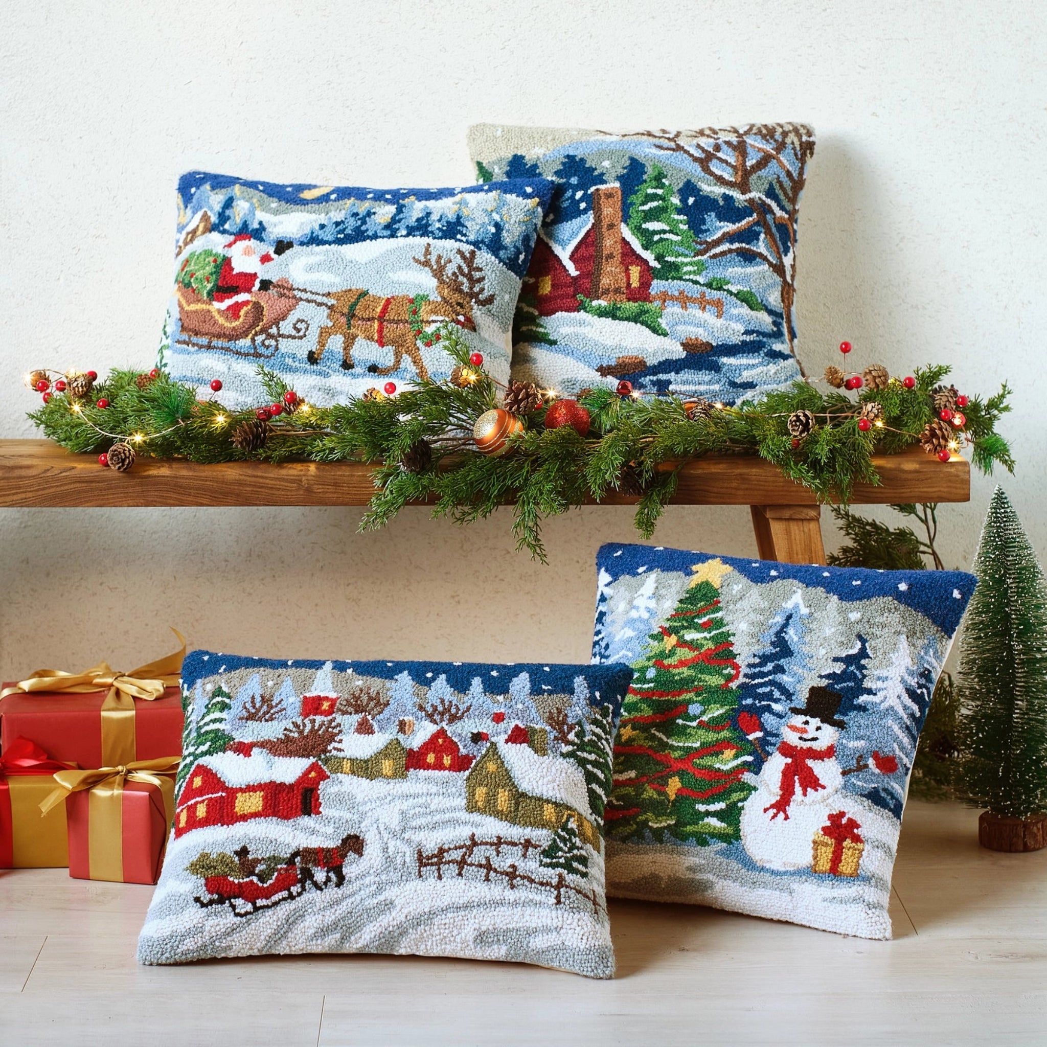 Handcrafted with charming hooked detailing, this pillow captures the serene beauty of a peaceful snowy evening. Soft textures and intricate craftsmanship bring warmth and comfort to your home, while the wintry design adds a touch of seasonal magic to any sofa, chair, or bed. Made from high-quality materials for durability and lasting style, it’s the perfect accent to elevate your holiday décor or add cozy charm all winter long.