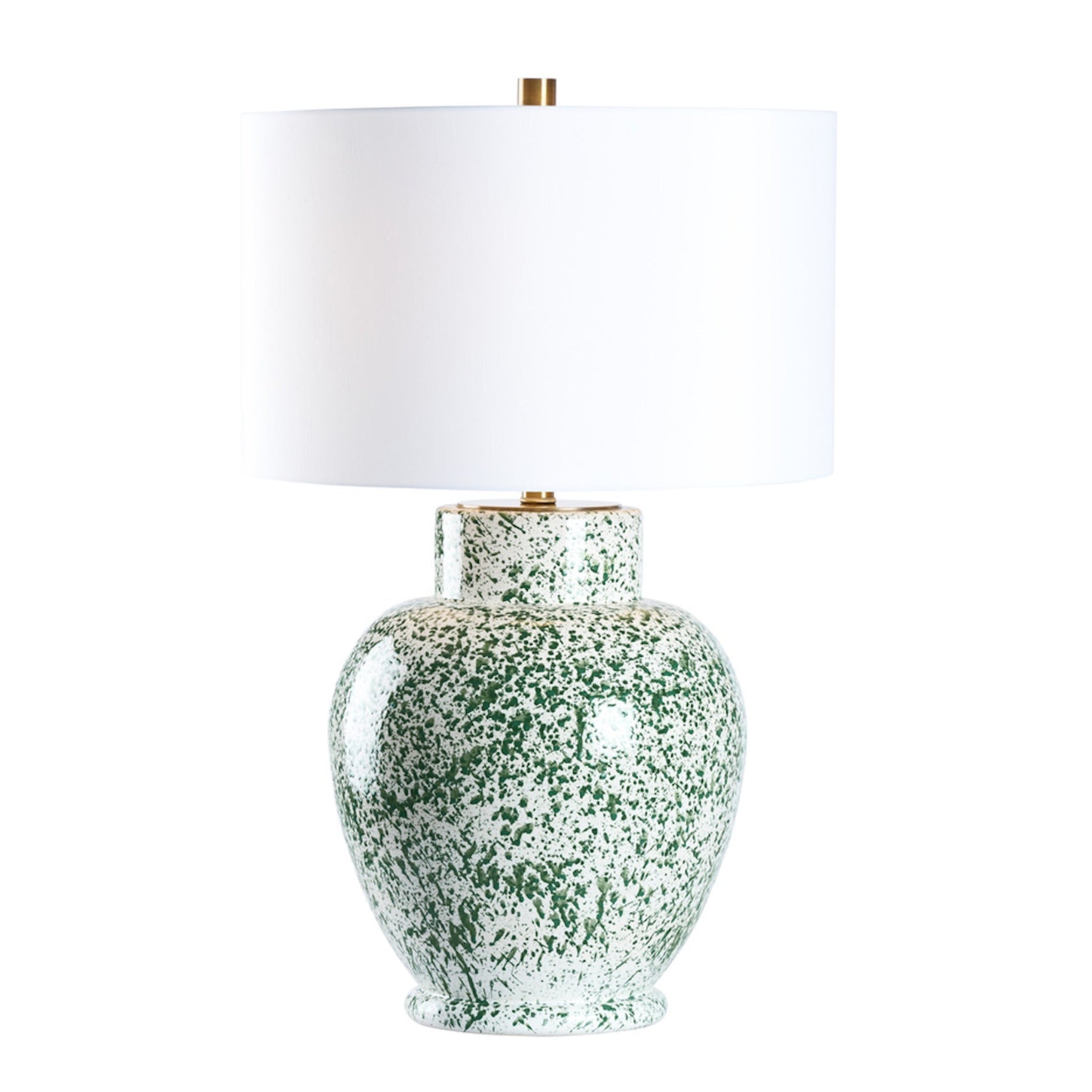 The Spatter Lamp in Green features a smooth ceramic form decorated with a vibrant spatter green pattern for artistic, eye-catching flair. Its lively design brings a fresh, organic feel that effortlessly brightens up any room.