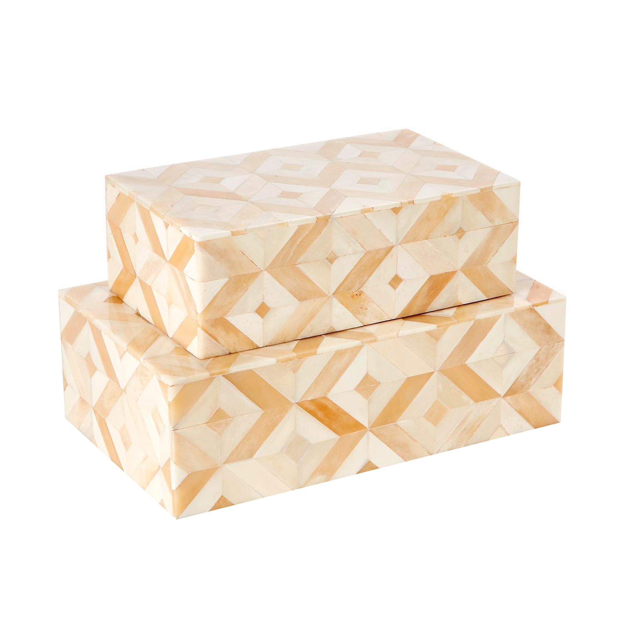 The St Mark Covered Box set includes two elegantly crafted lidded storage boxes, each designed with clean lines and a subtle raised pattern inspired by the St Mark motif. Finished in soft metallic tones, they offer both decorative charm and practical storage—ideal for stylishly organizing accessories or keepsakes.