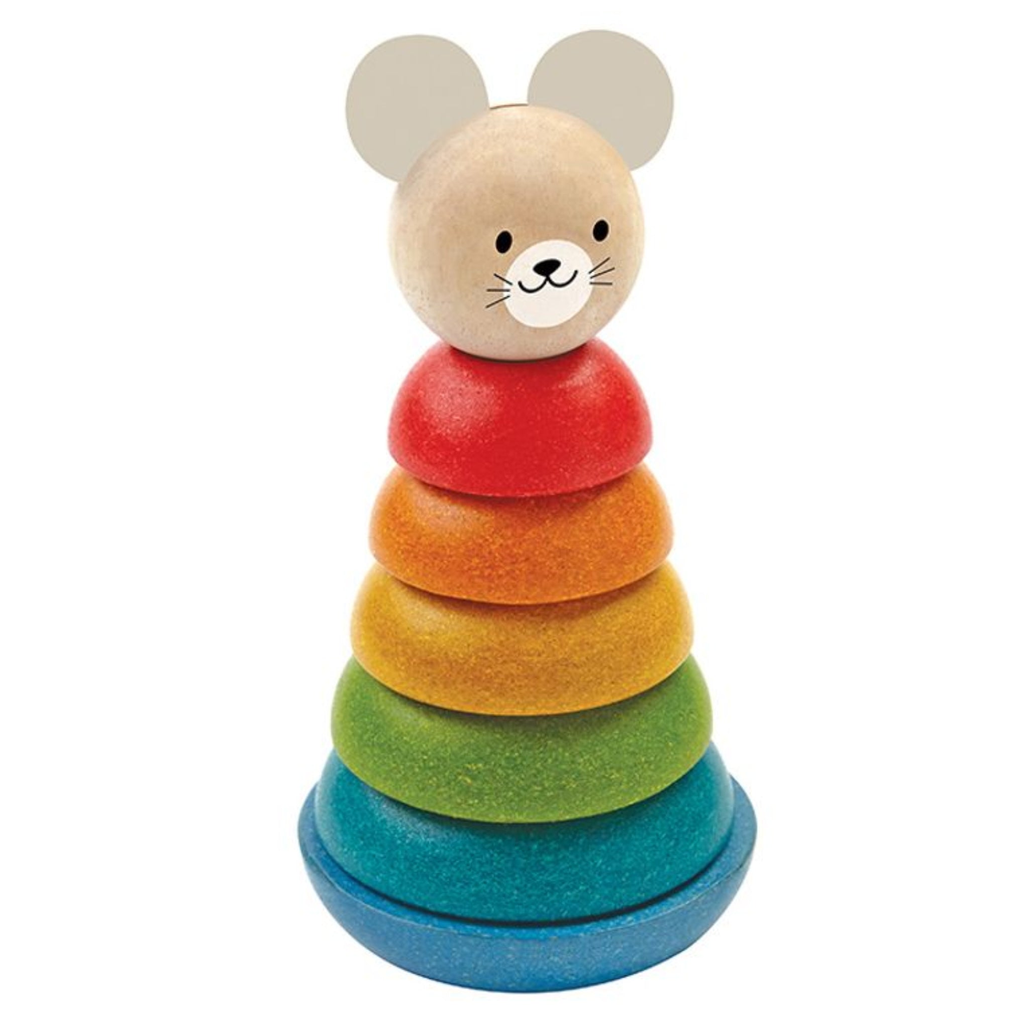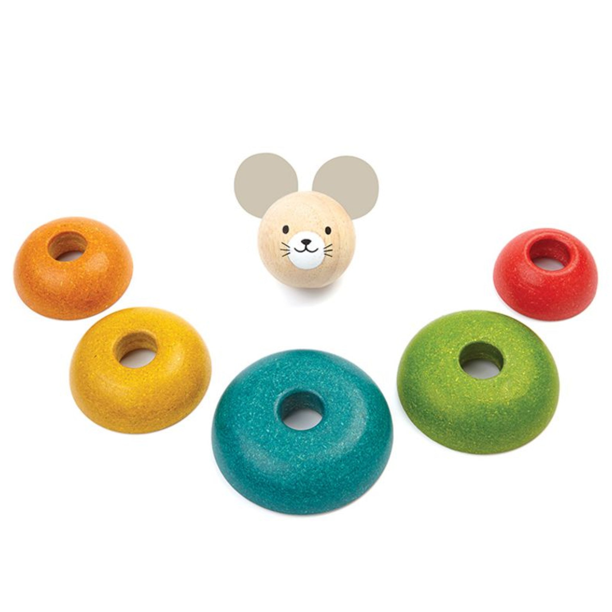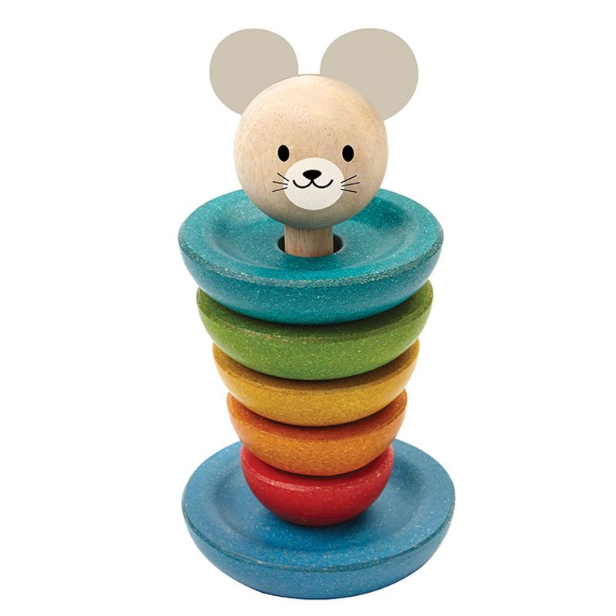 Stack this colorful Stacking Mouse to its optimal height! Play with sizes, colors and flip upside down to create variety of patterns. Helps teach children learn about order. Rod is bendable at base for added safety.