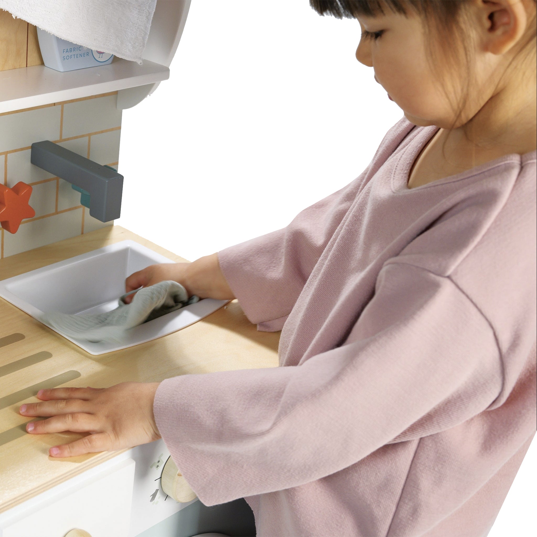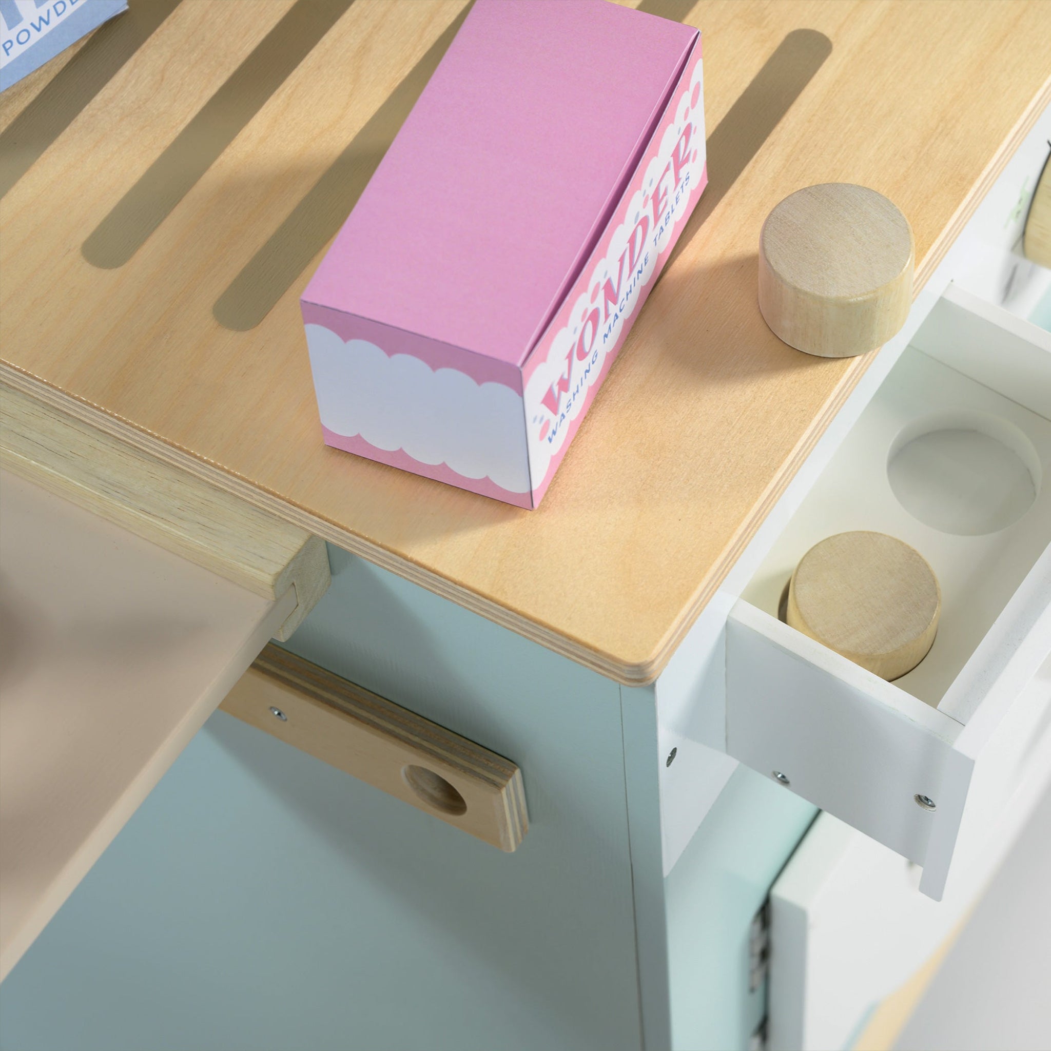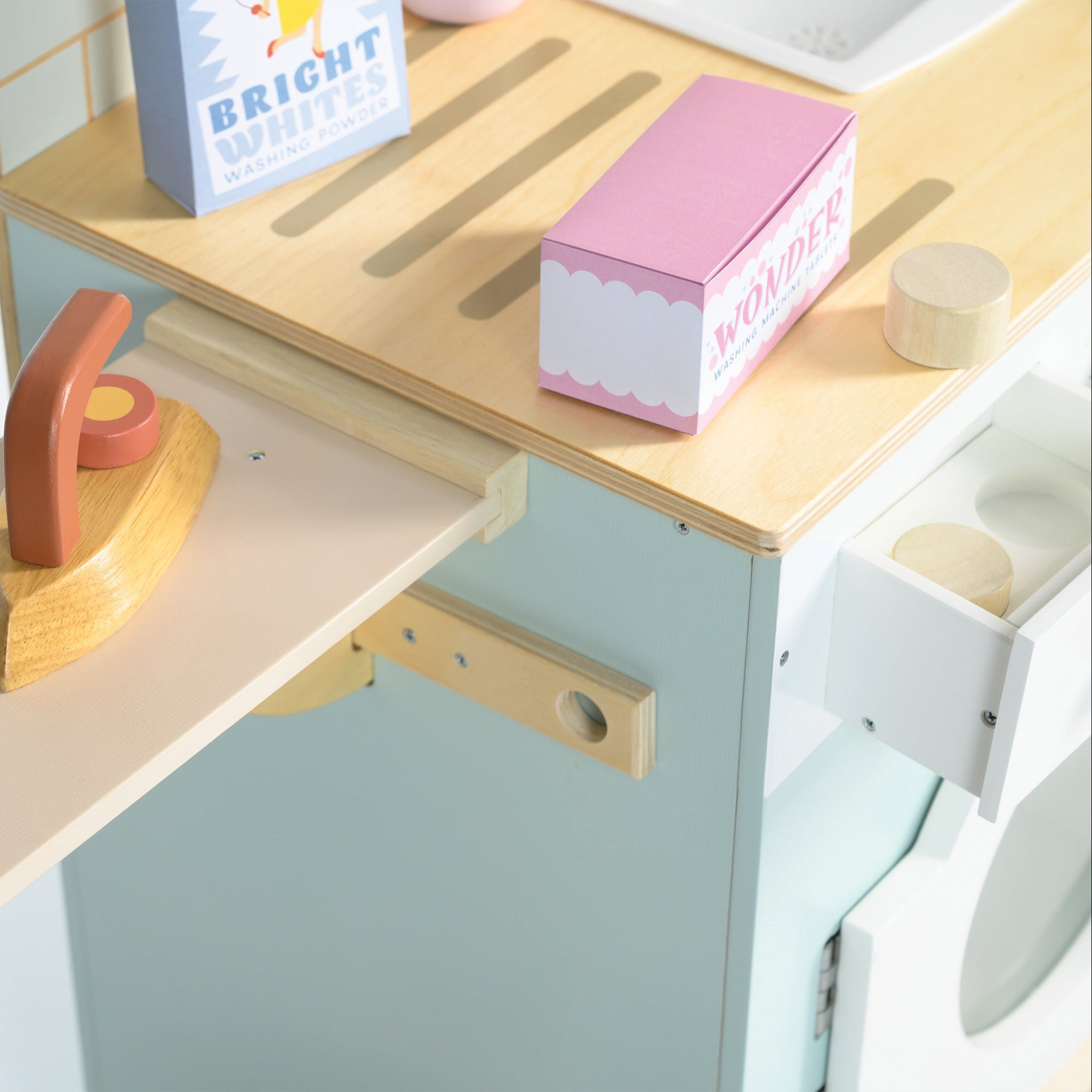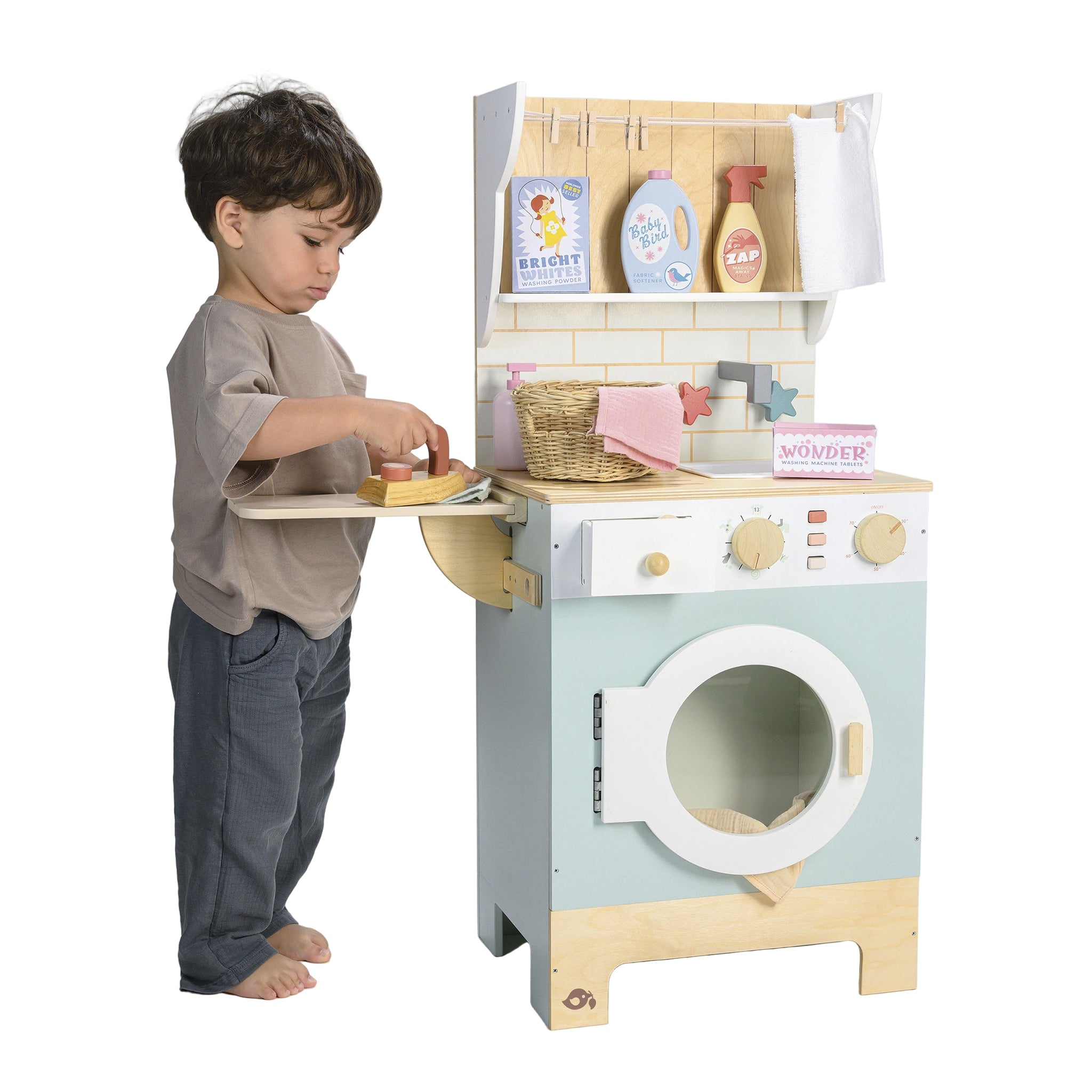 The Tenderleaf Laundrette is a charming wooden playset that brings laundry day to life. Featuring a washer, ironing board, clothesline, and peg accessories, it encourages imaginative role play and fine motor skills. Beautifully crafted from sustainable wood with soft, pastel details for endless fun.
