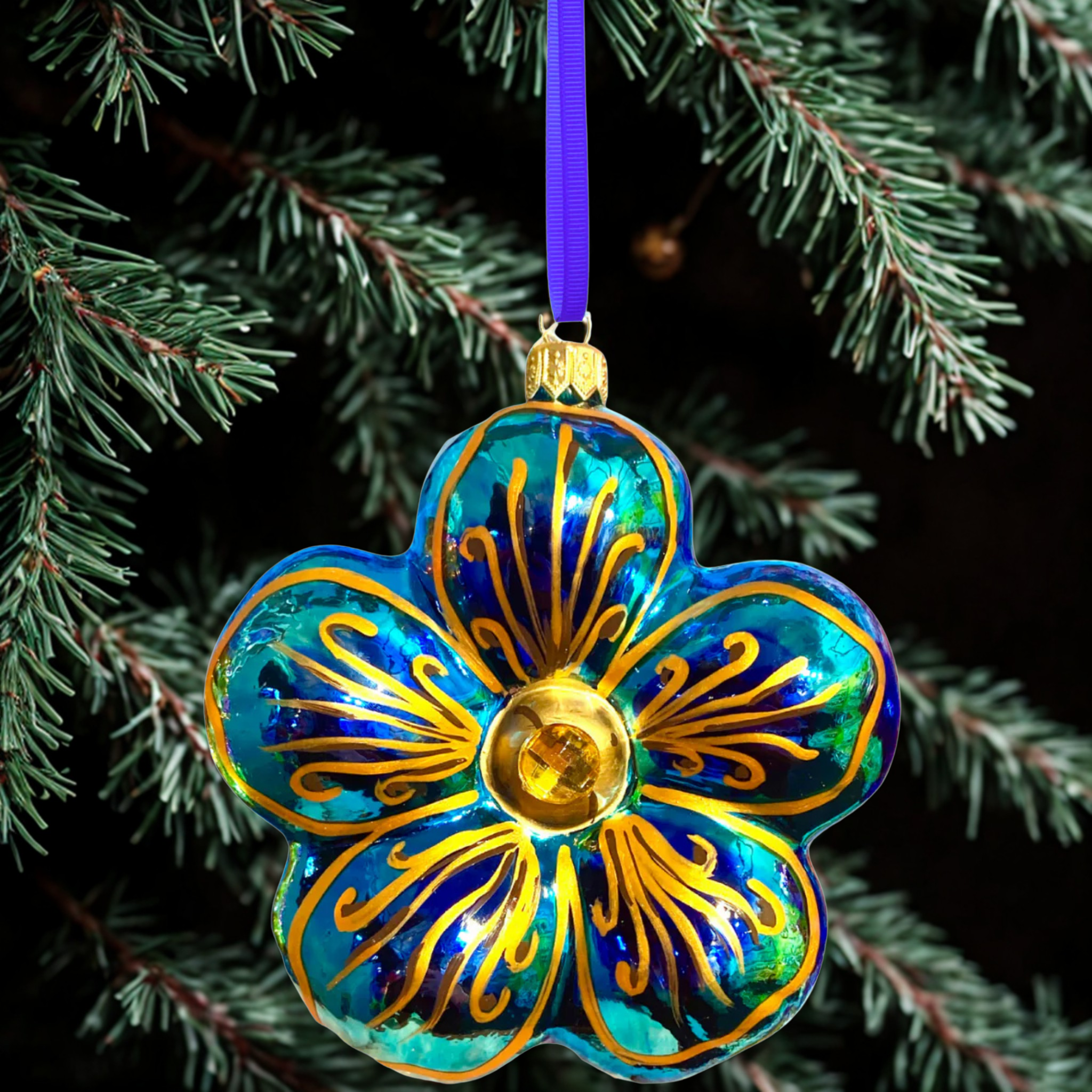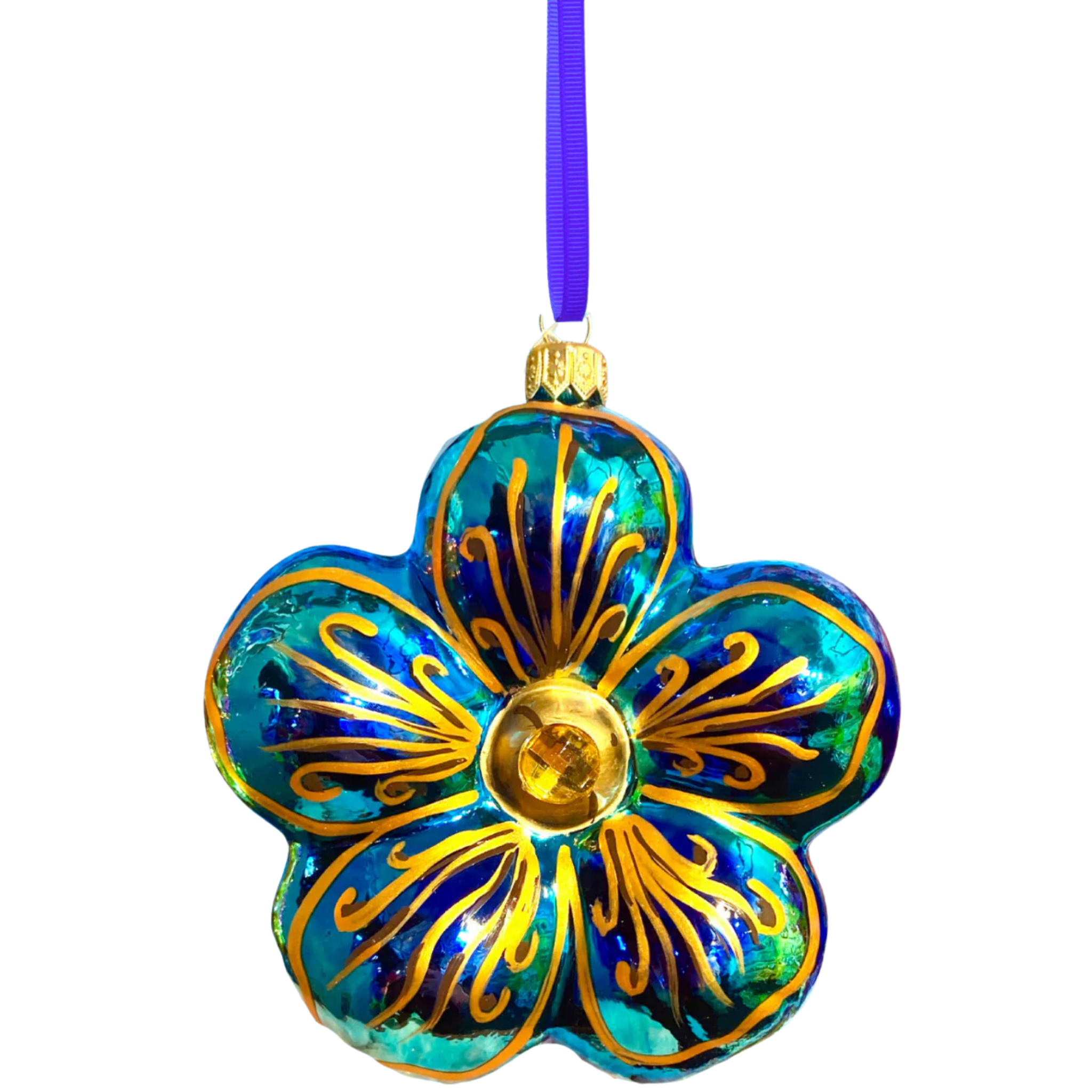This beautiful ornament captures the exotic beauty of the tropics in radiant detail. Expertly handcrafted, this delicate ornament features petals in warm topaz hues with delicate golden veins weave. A stunning fusion of artistry and nature, perfect for adding an elegant, floral touch to your holiday décor.