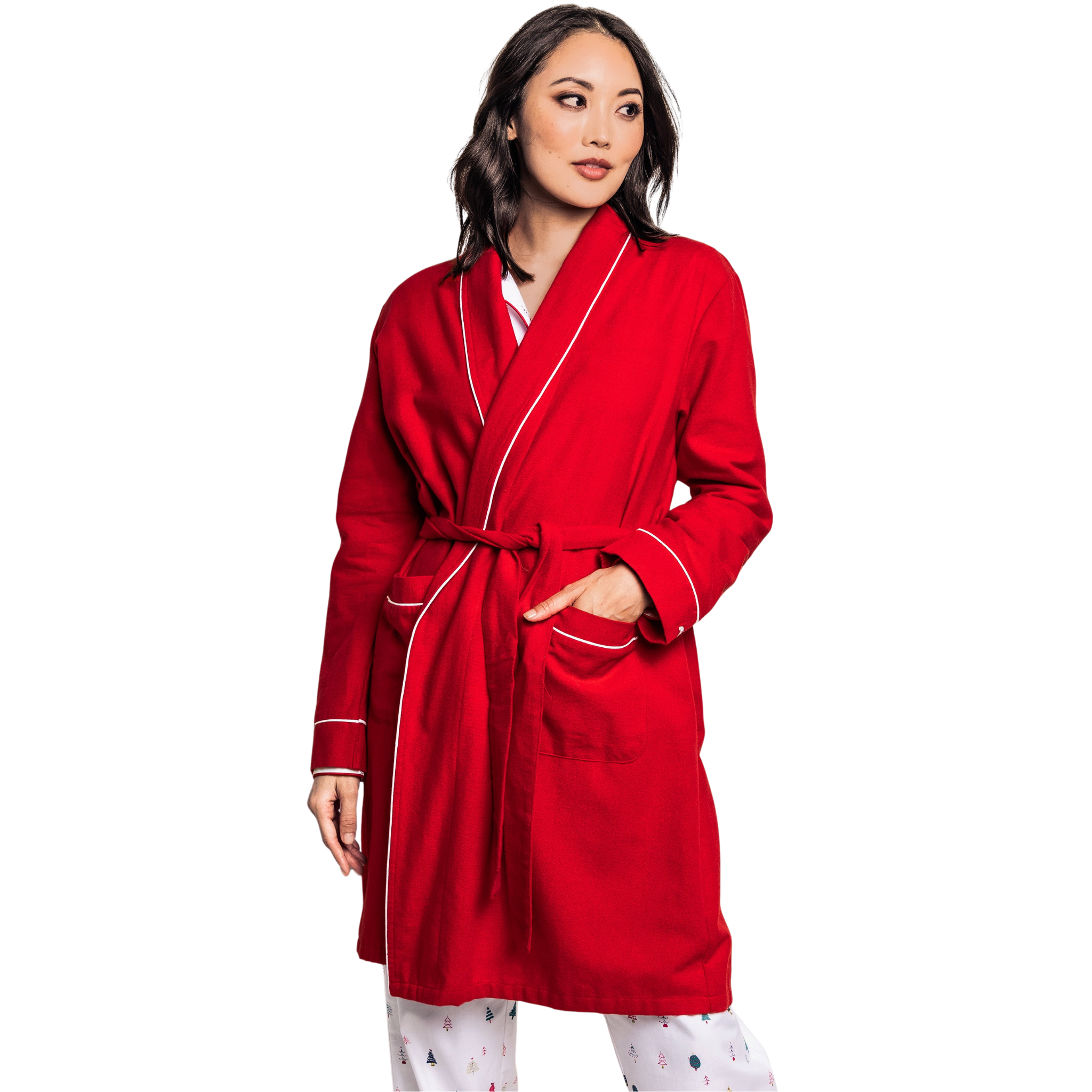 This elegant robe is the perfect addition to our collection. The soft, brushed flannel robe can be monogrammed to create a truly memorable gift. This robe is a lightweight, very soft flannel. The fabric is made from 100% of the finest quality cotton. It is yarn-dyed to prevent fade and brushed for added softness making the sleepwear feel absolutely luxurious, getting cozier after each wash.