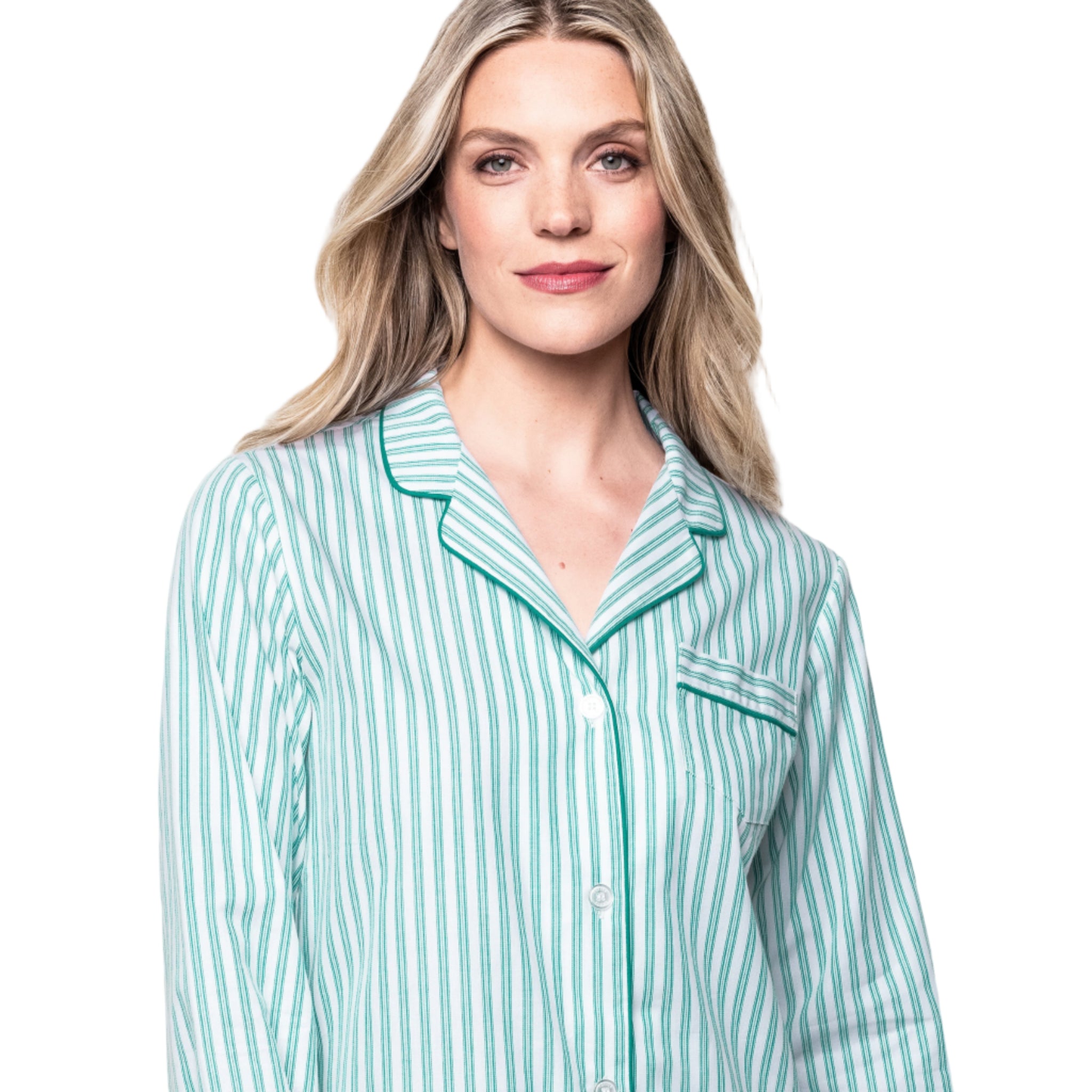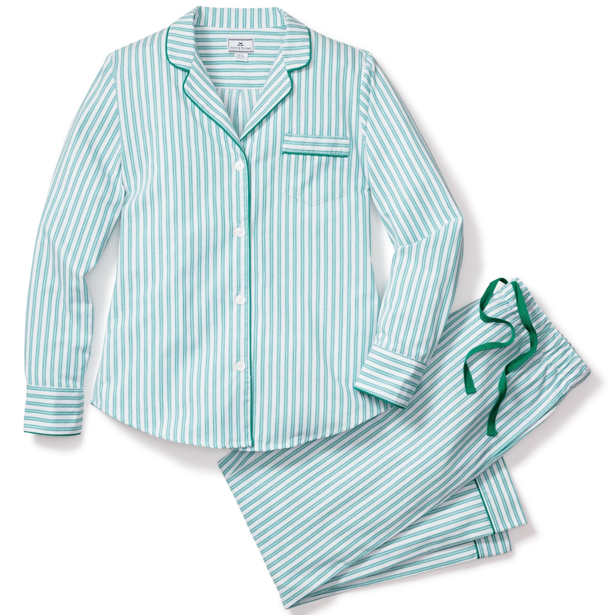 Women's Twill Pajama Set in Emerald Ticking