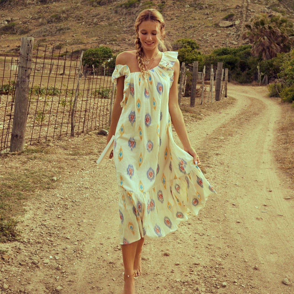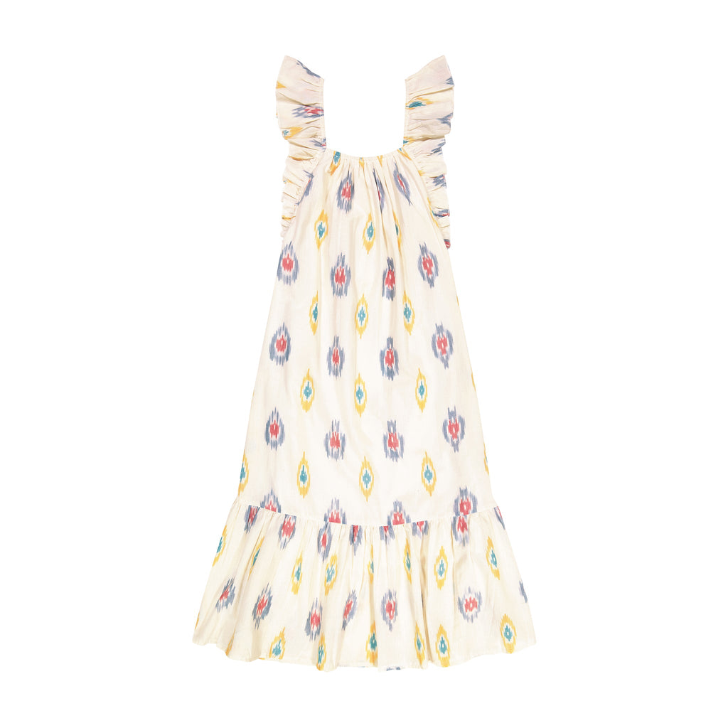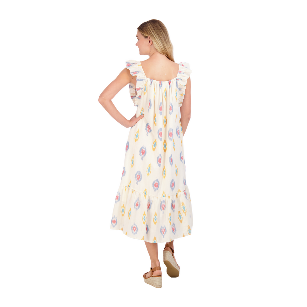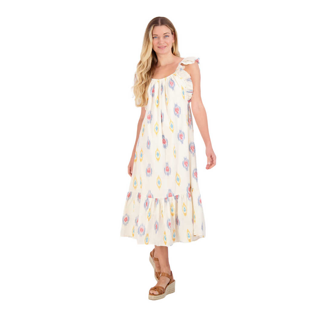 Eva Women's Ruffle Sundress Gold Blue Ikat
