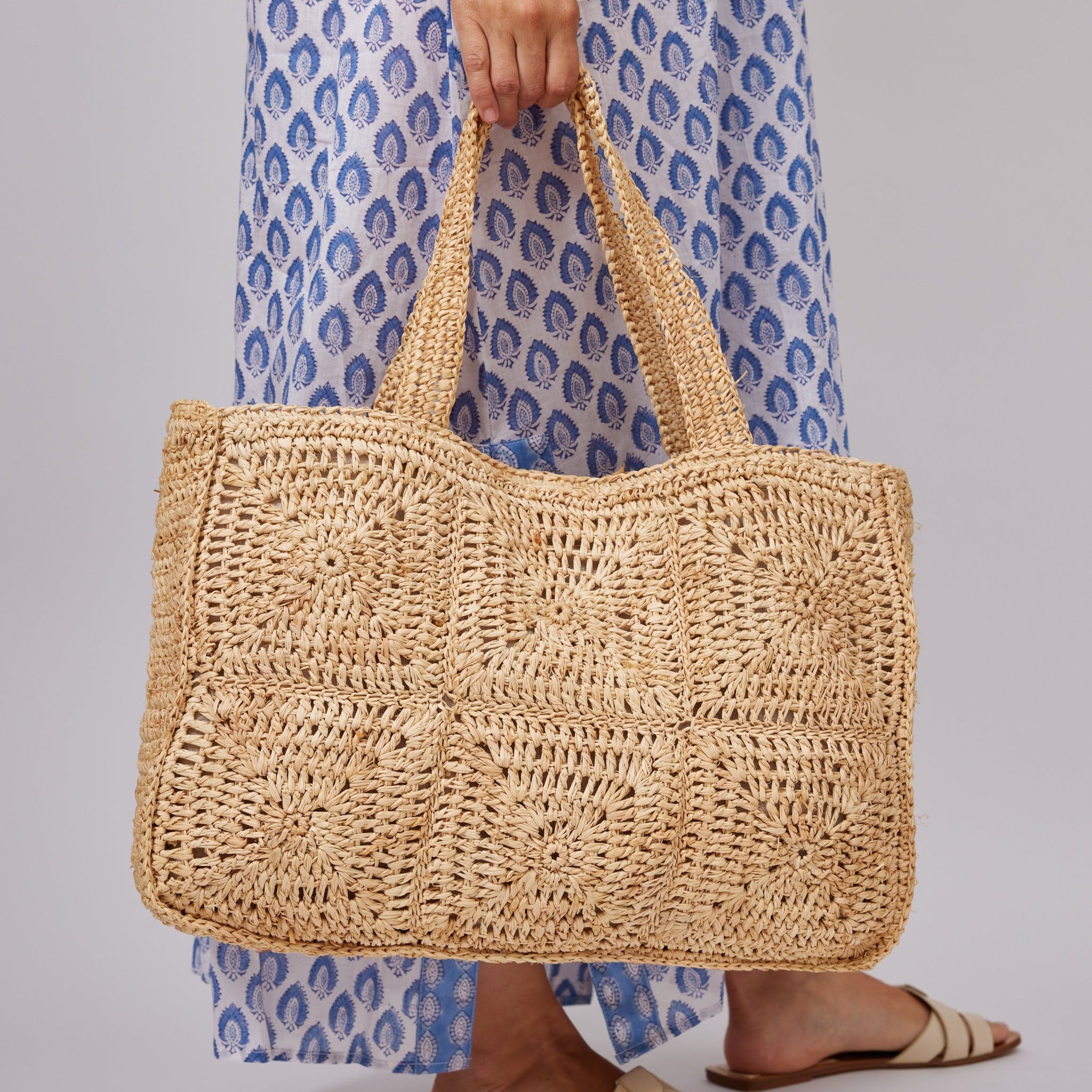A timeless and chic tote that you can wear from spring to summer! Beautifully designed and detailed to be a great accessory for running to the market and days in the sun. Optional leather loop included to hold your favorite brimmed hat.