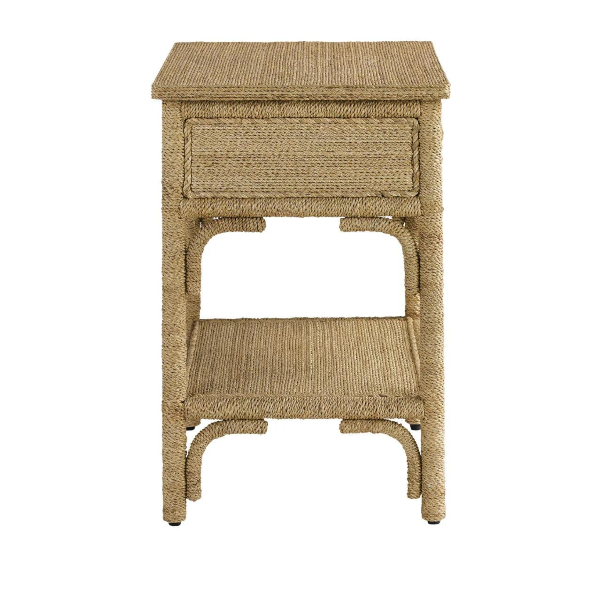 With the earthy feel of rattan and wicker, the Olisa Rope Nightstand is covered in braided Abaca rope to bring a natural elegance to a room. The dexterity required to wrap a piece of furniture so skillfully makes this tan nightstand special.