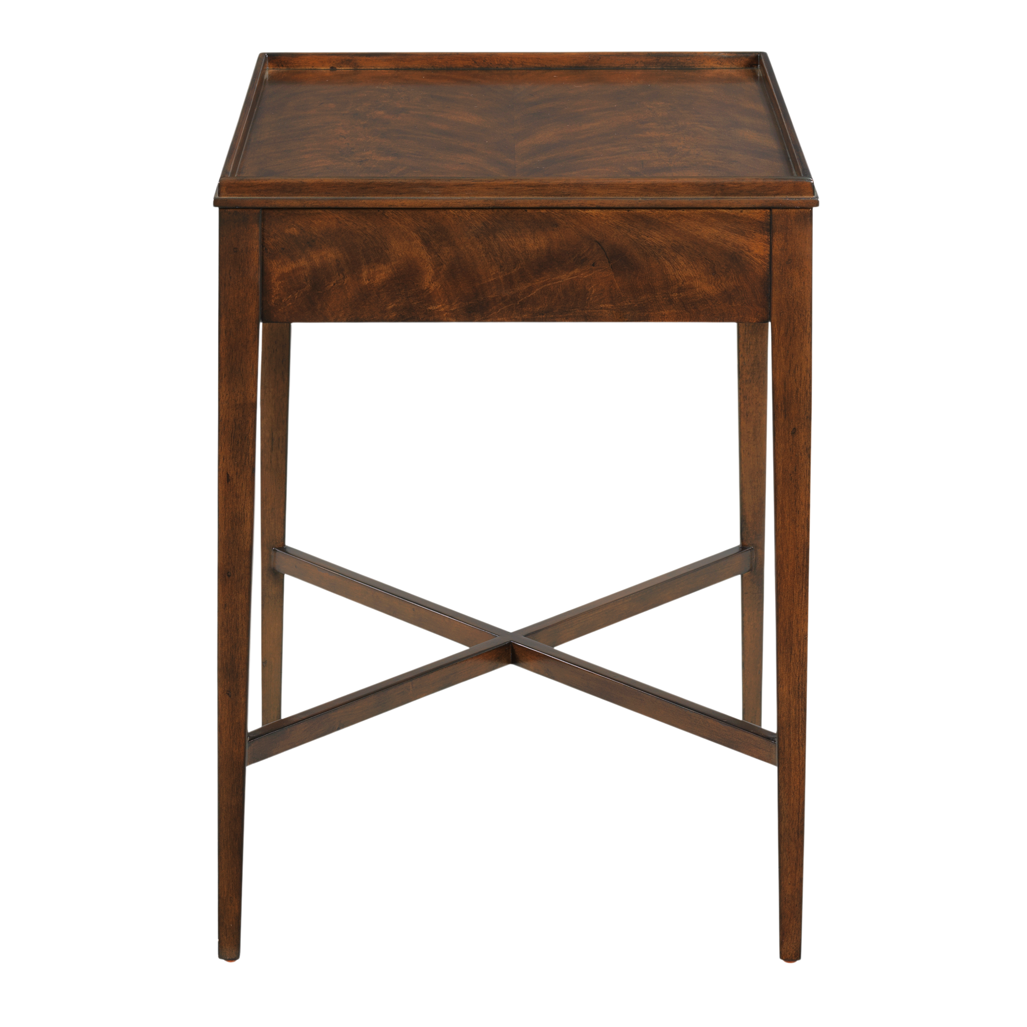 An elegant table with a galleried rectangular top over an apron rail drawer raised on graceful tapering legs joined by a low "X" stretcher. Click images for greater detail.