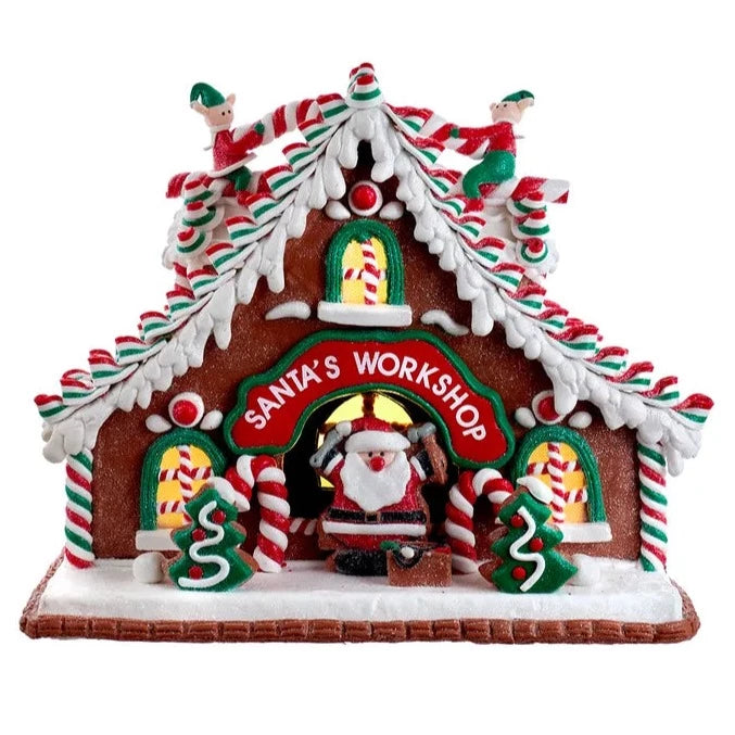 10.5" Battery Operated Light Up Santa's Workshop Claydough Gingerbread House