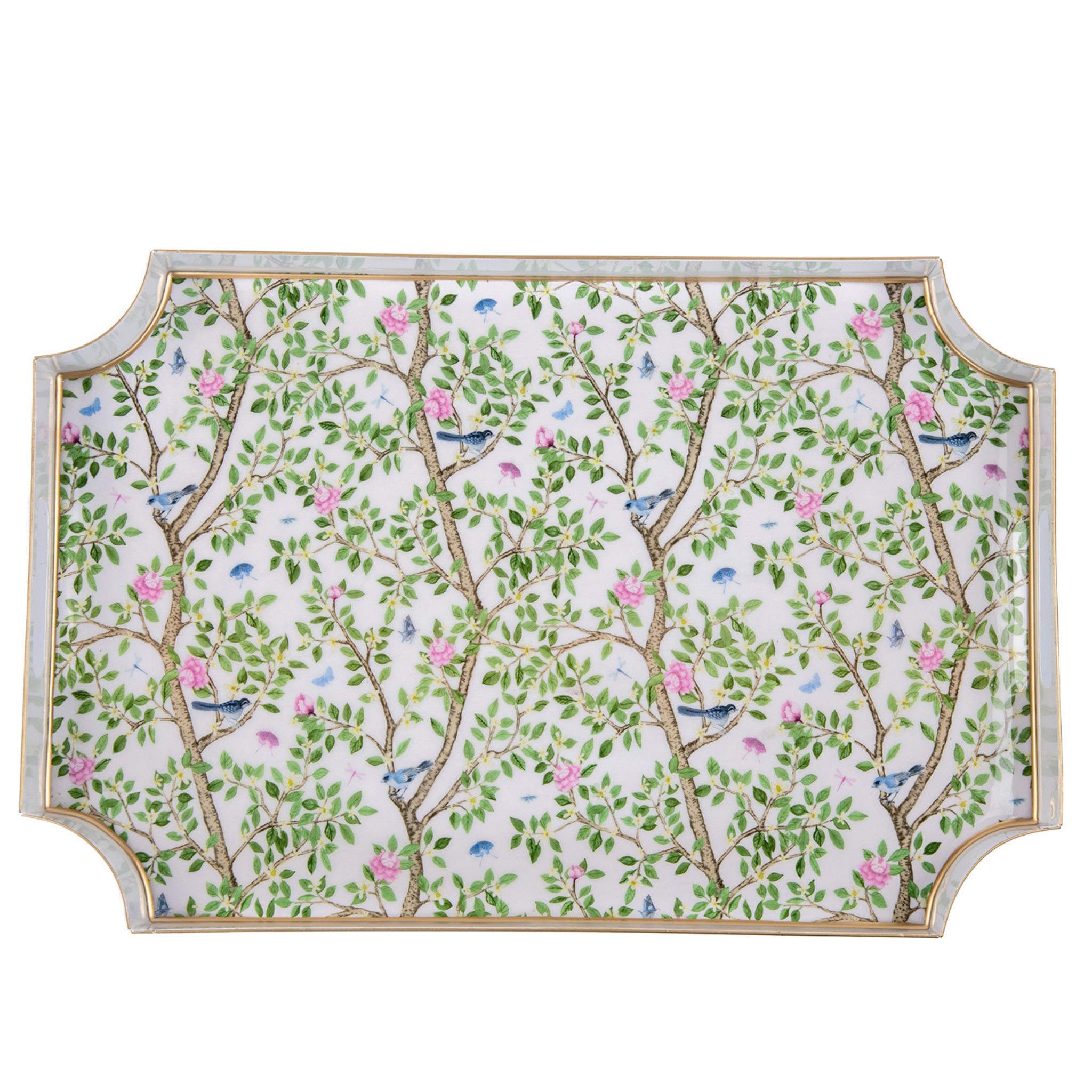 Garden Motif Blue and Pink Enameled Jaye Tray