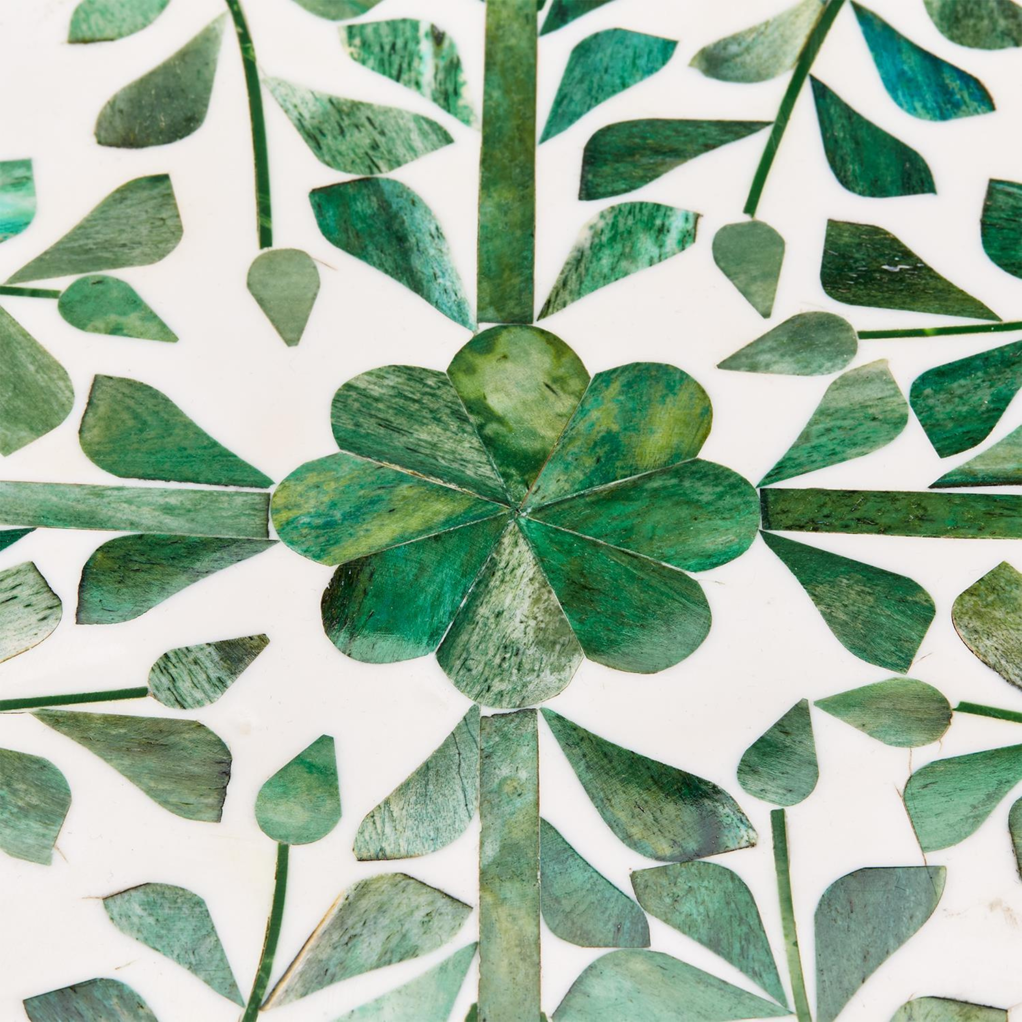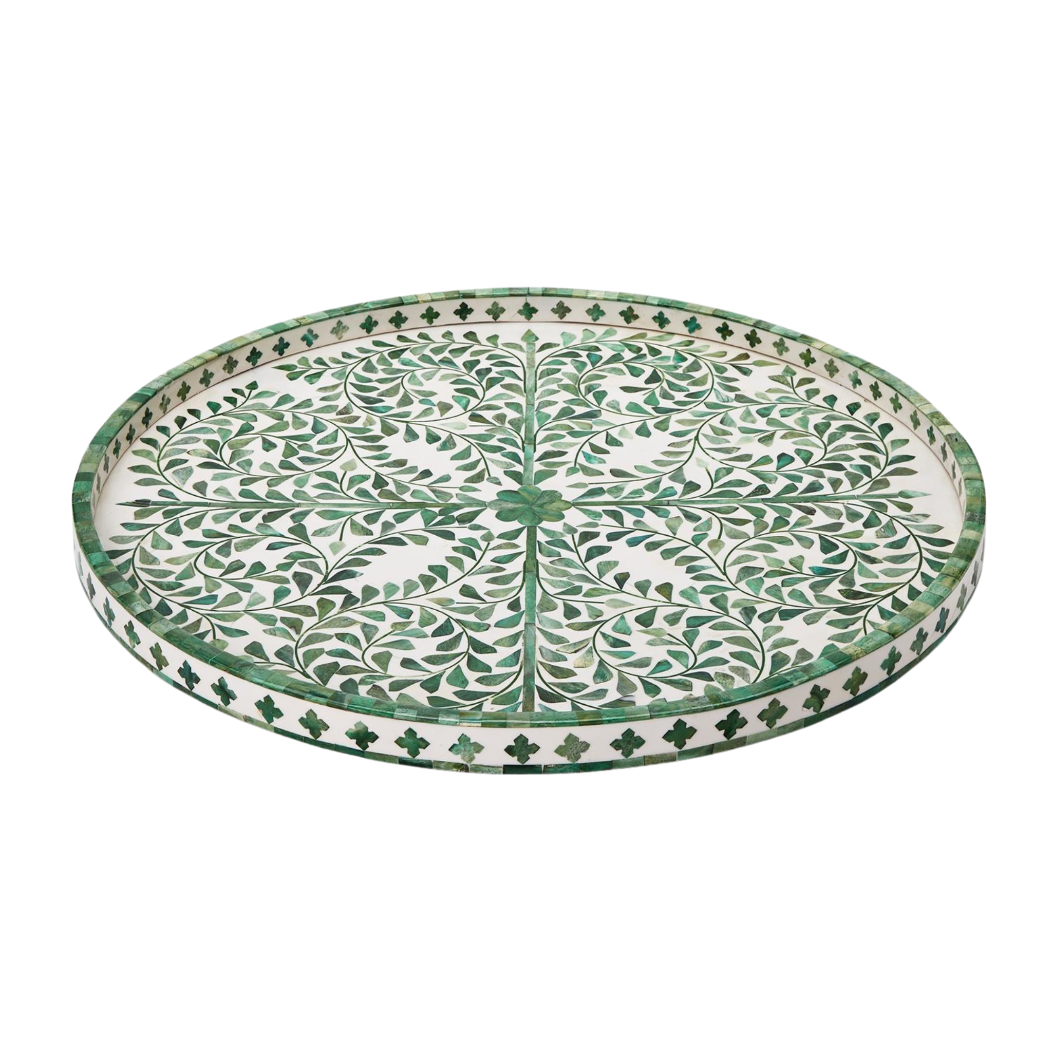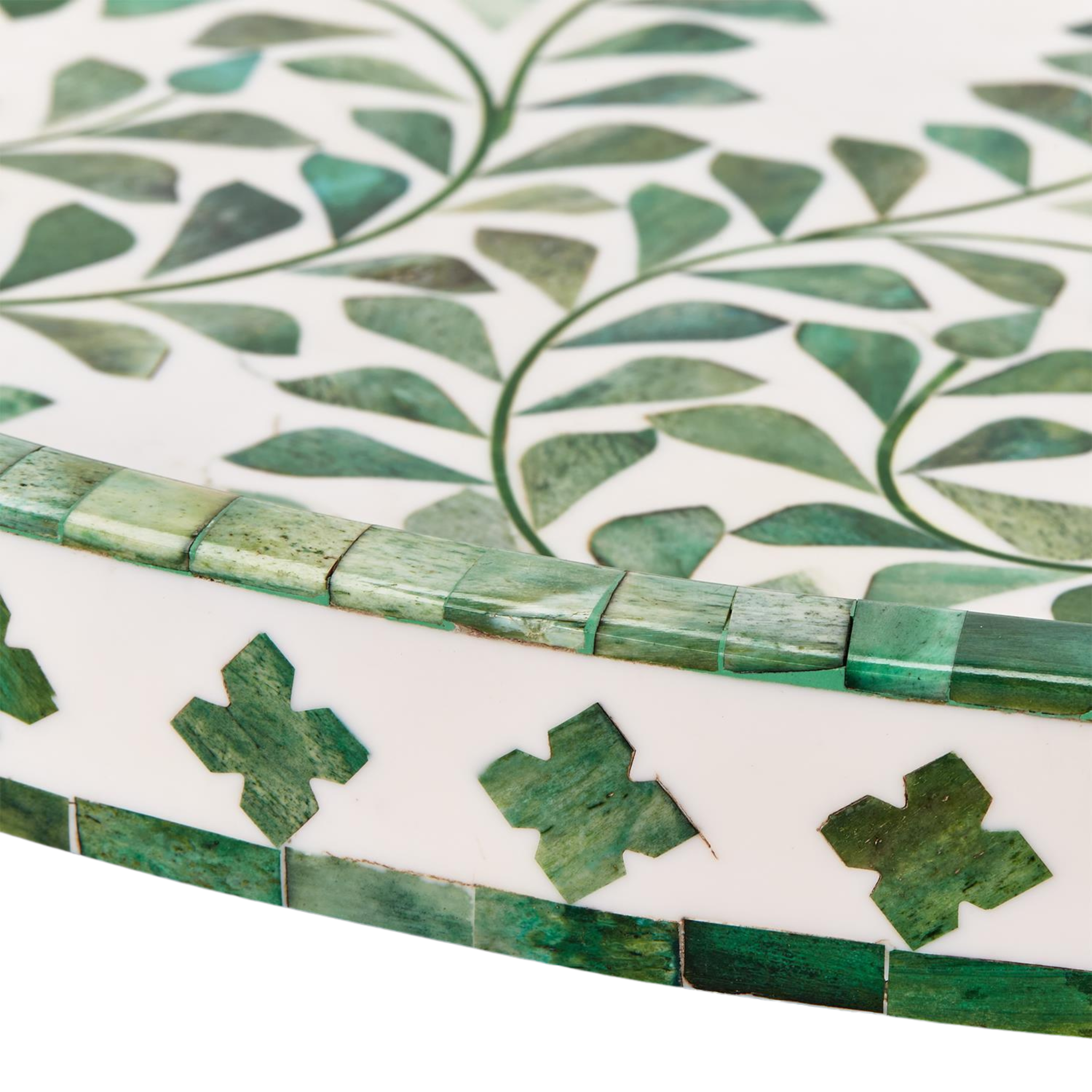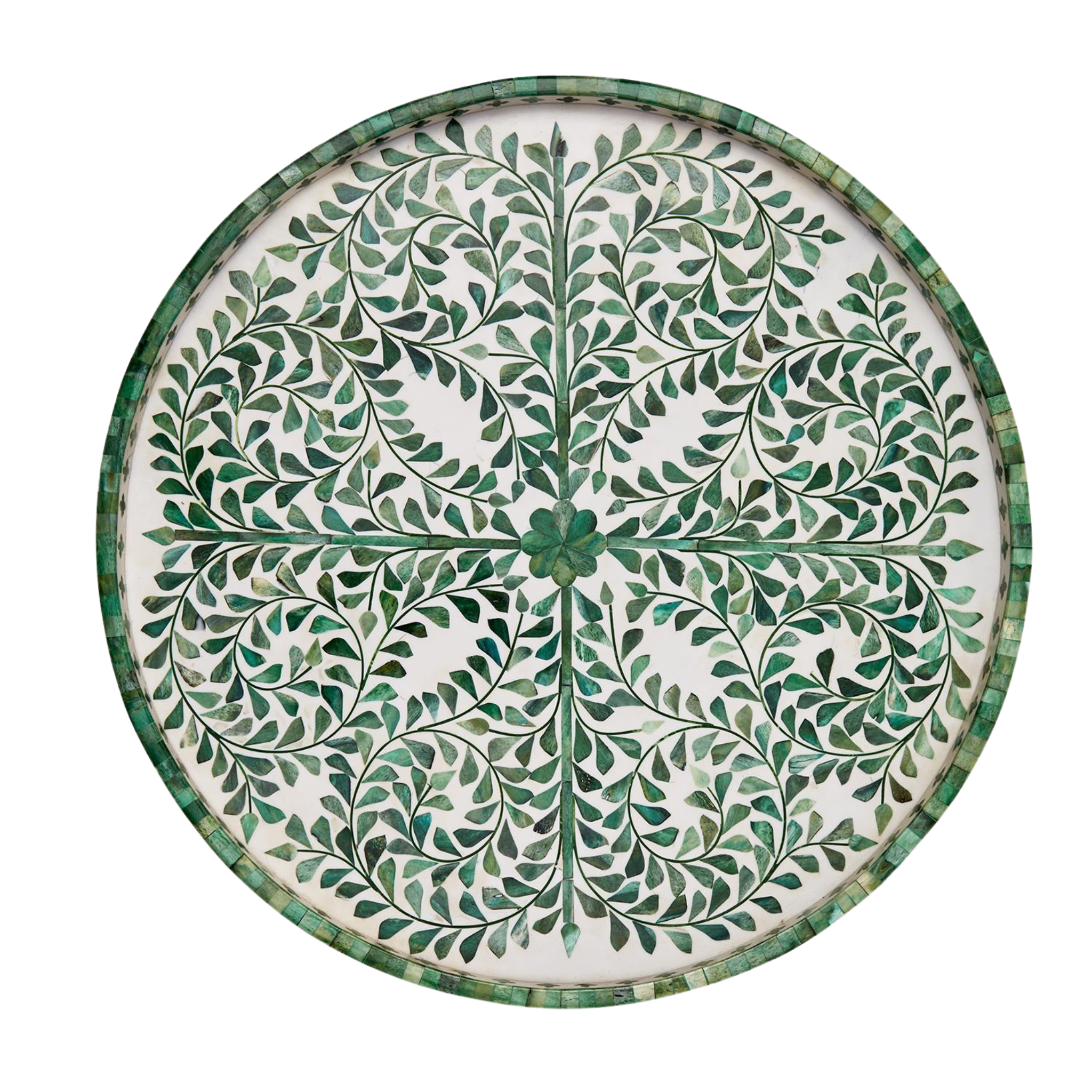 Jaipur Palace Green & White Inlaid Round Serving Tray
