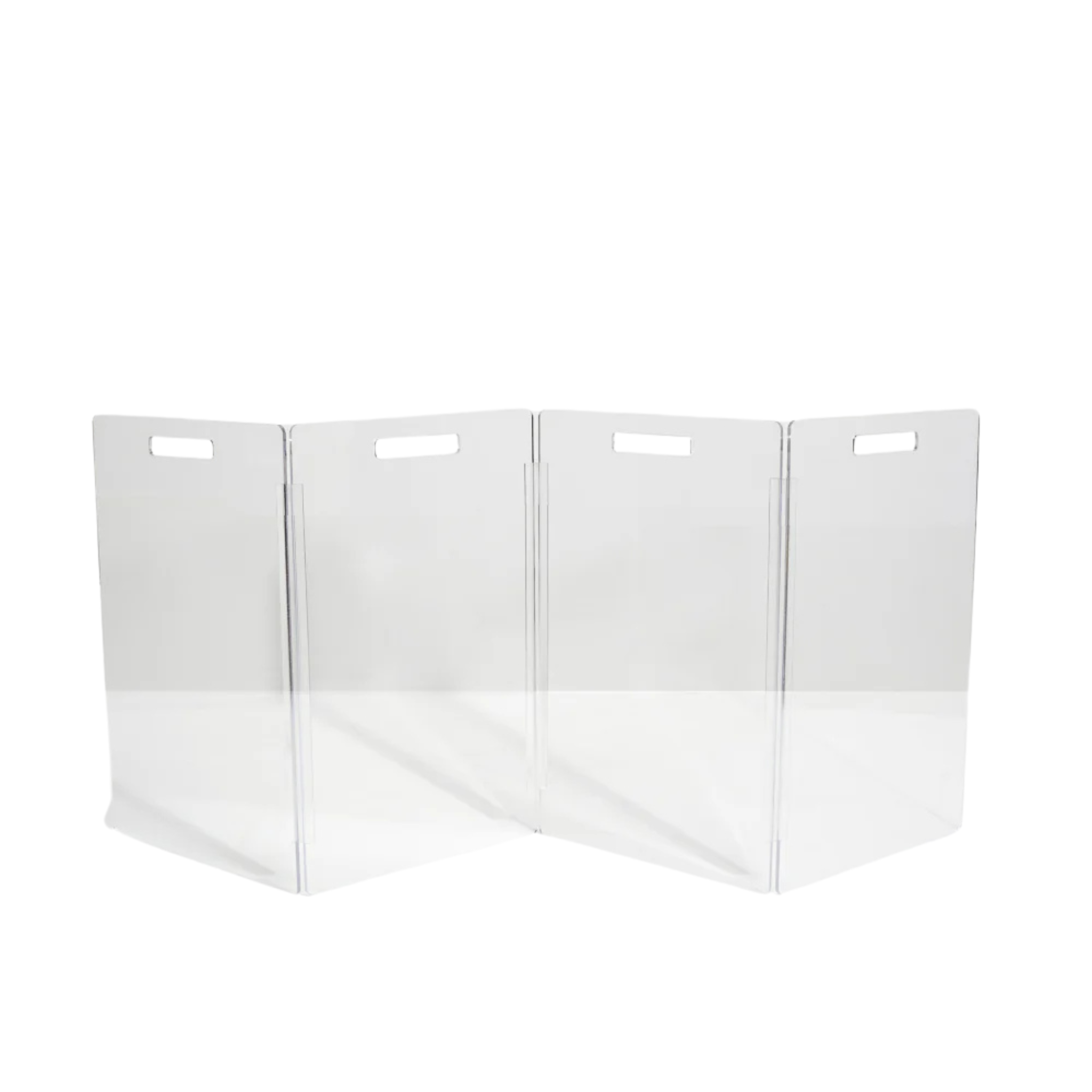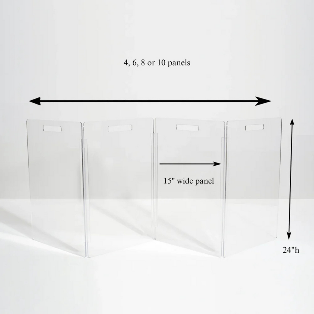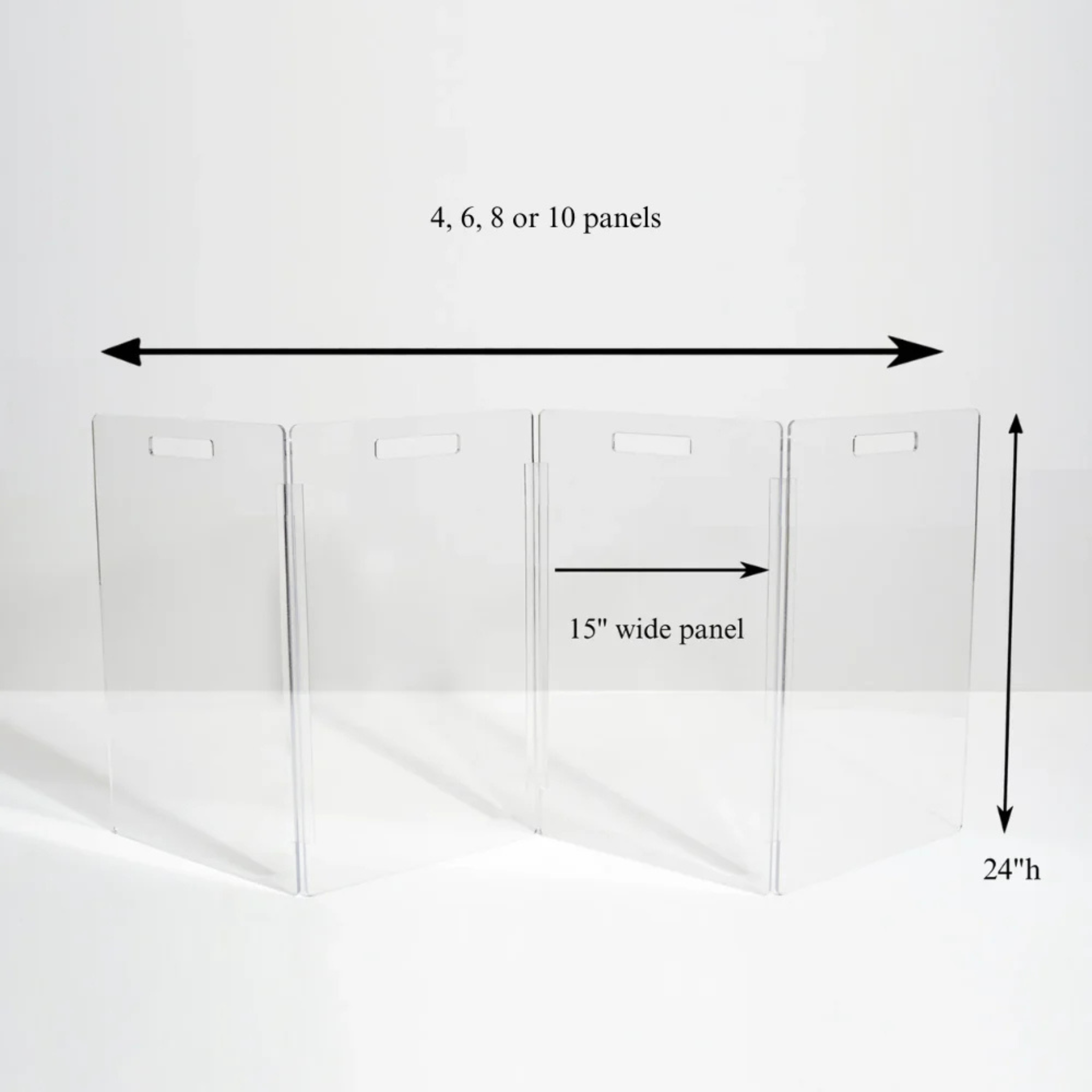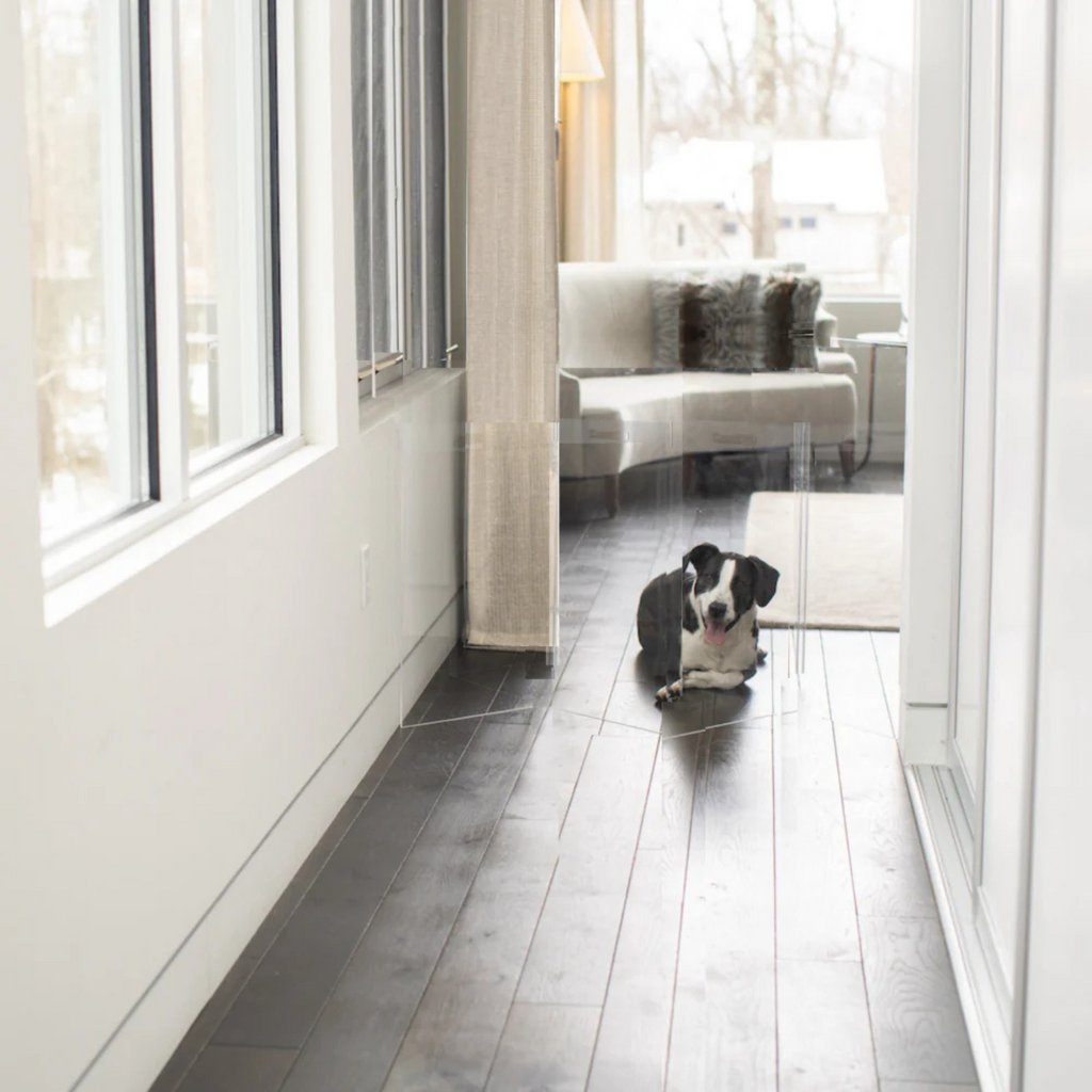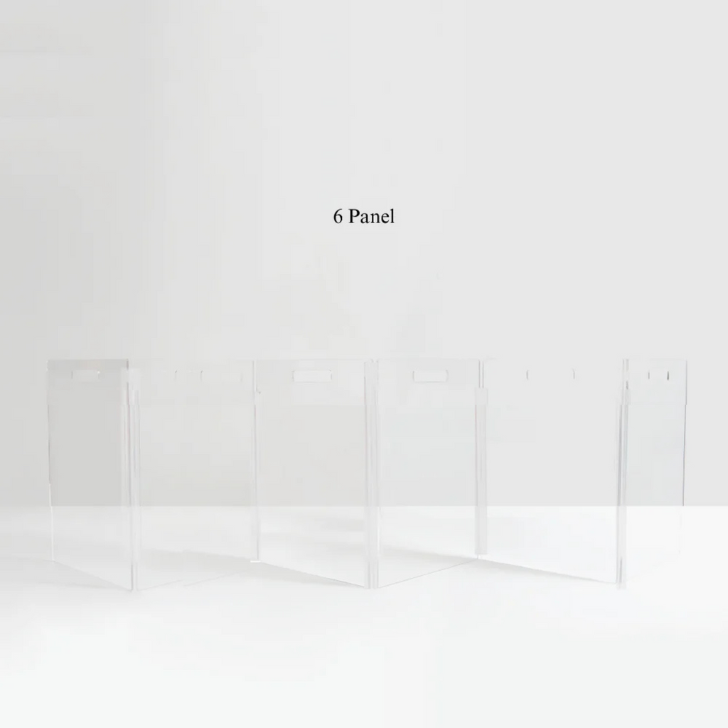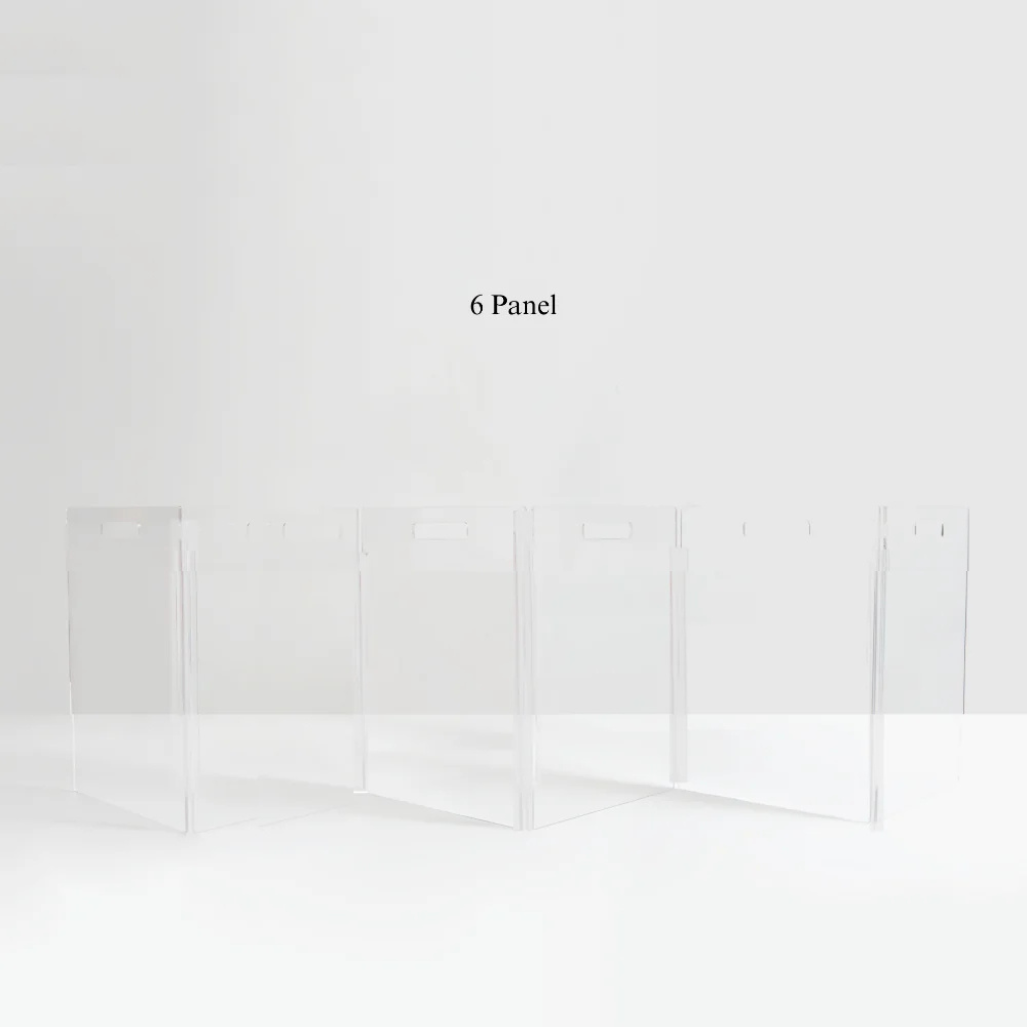 Hiddin's Low Freestanding Zig Zag Pet Gate is your alternative to the unattractive wood or metal pet gates that are unsightly and cumbersome. Our 24" high, adjustable pet gate is designed to confine your pet safely in areas with larger openings and is perfect for home or travel. Lightweight and easy to move, this sturdy, lucite pet gate can withstand a dog's nudge. Simply position the clear folding gate in your doorway, with the end panels resting against the pet's side of the threshold.